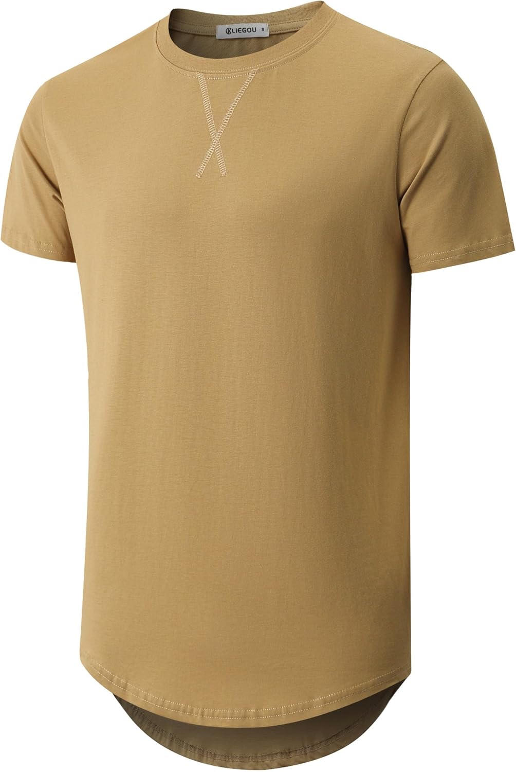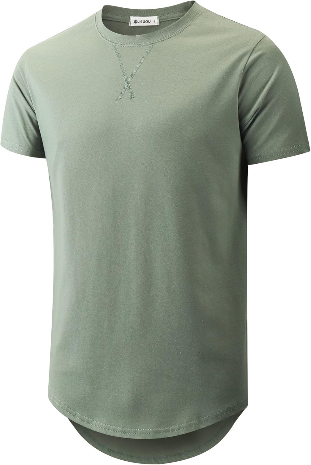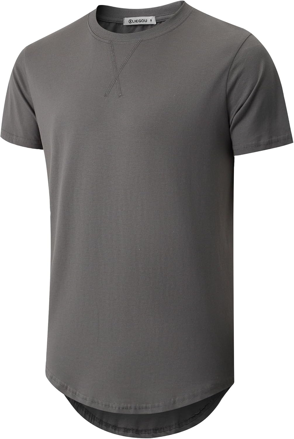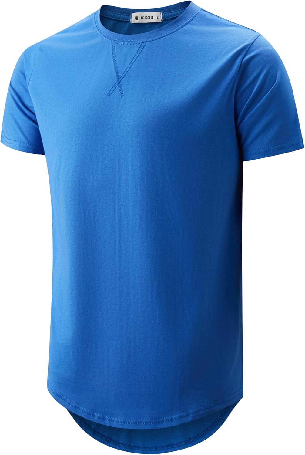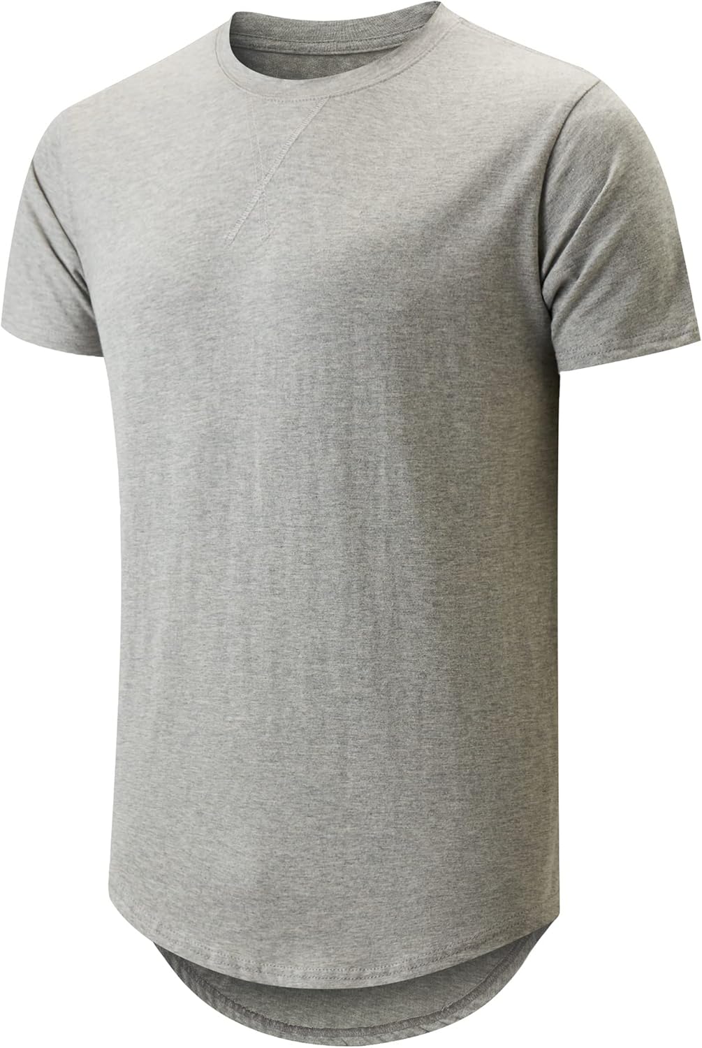 KLIEGOU Mens 100 Cotton Hipster Hip Hop Longline Crewneck T-Shirt Pre – Shrunk S-4XL
