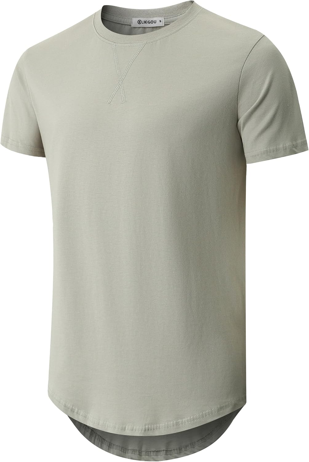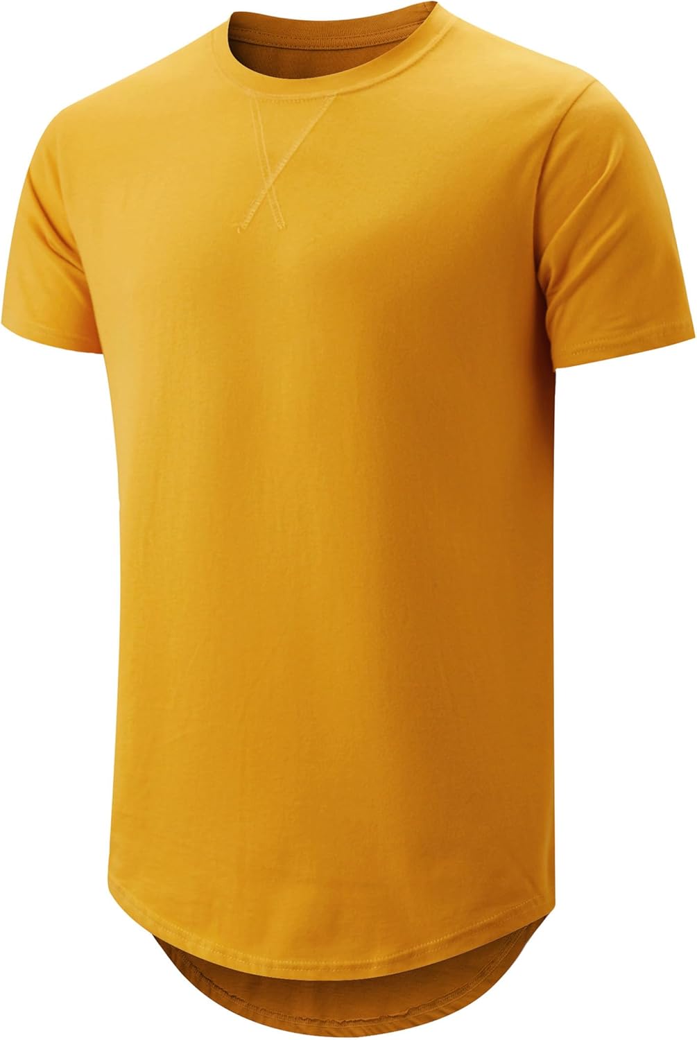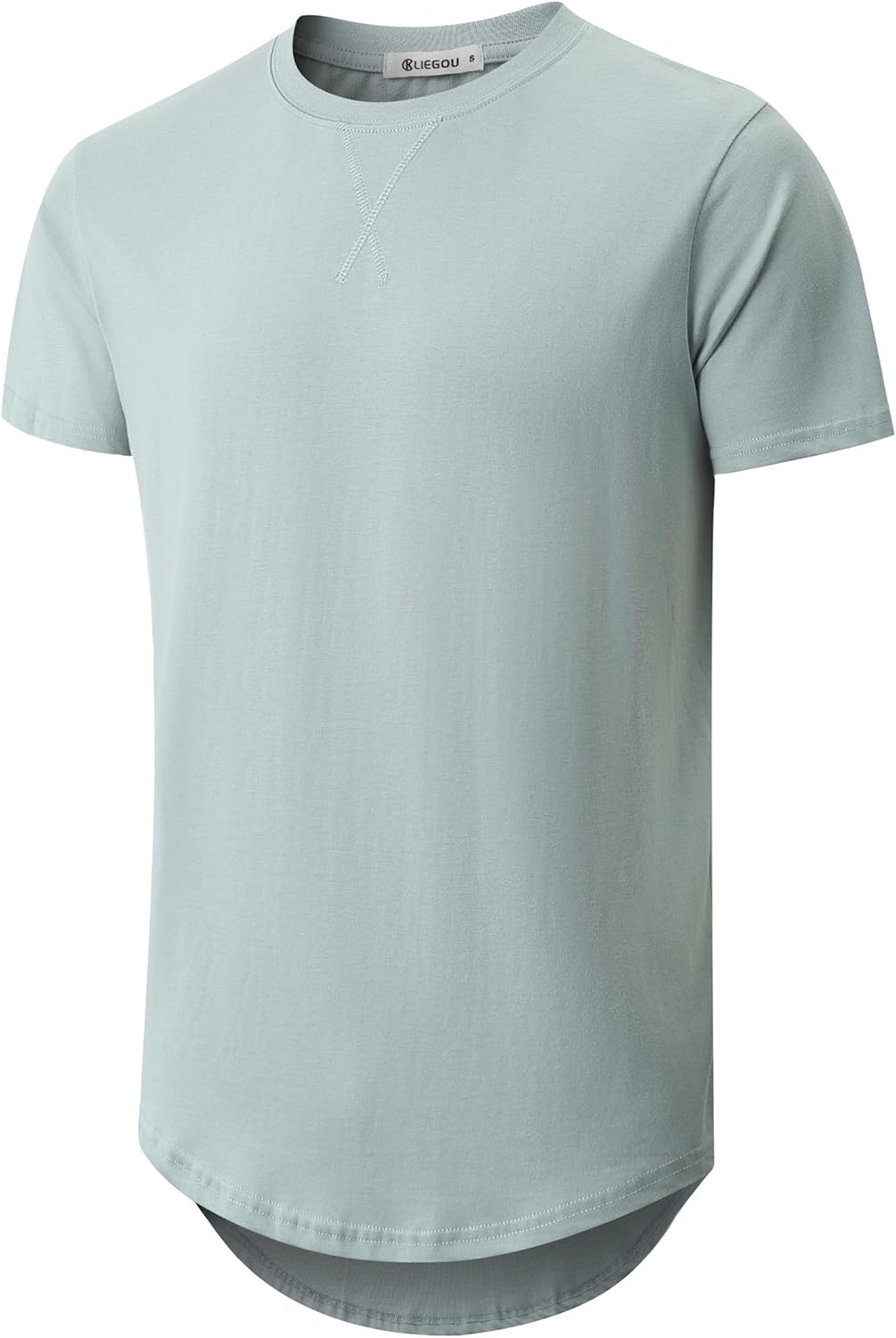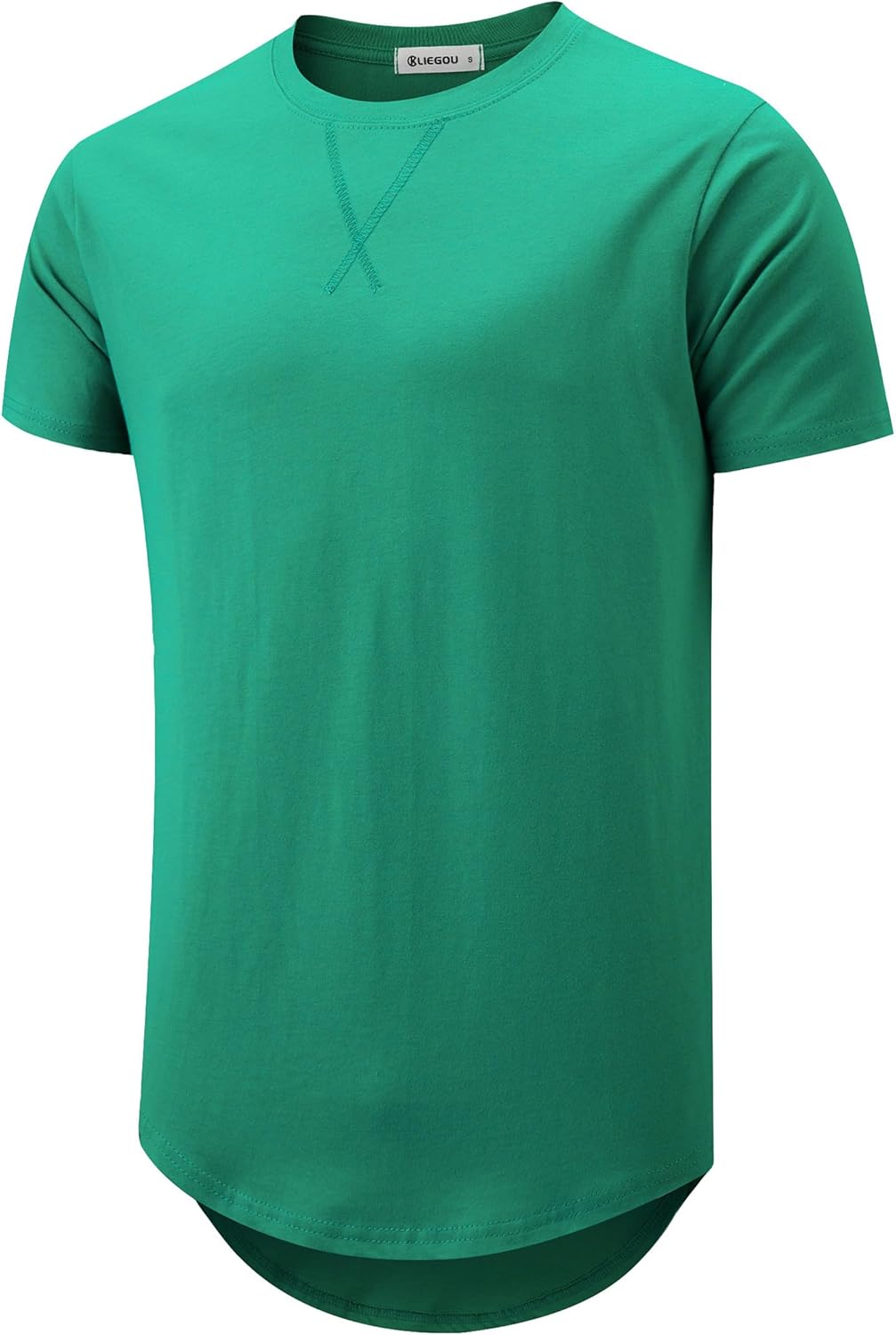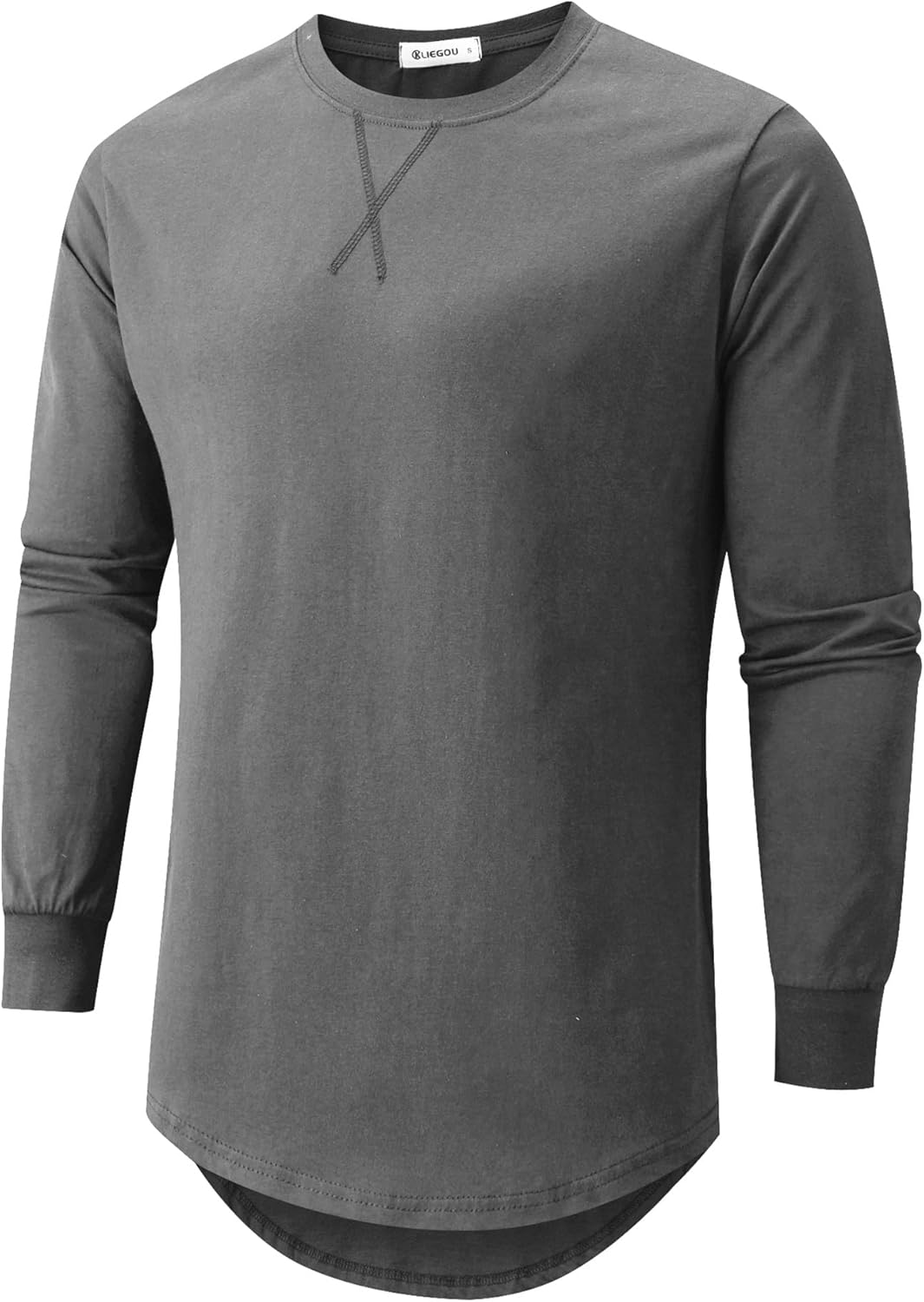 KLIEGOU Mens 100 Cotton Hipster Hip Hop Longline Crewneck T-Shirt Pre – Shrunk S-4XL
