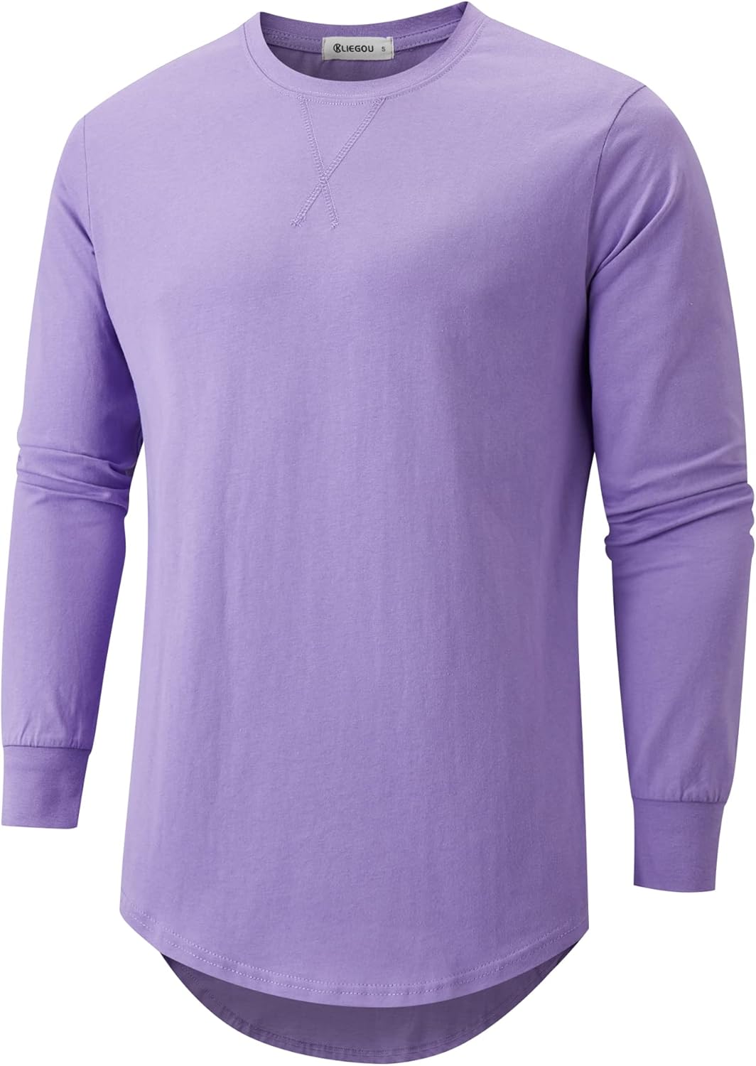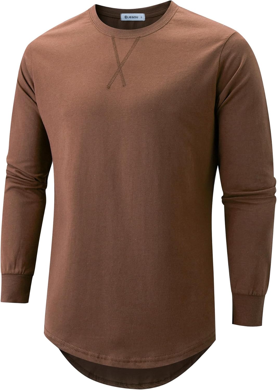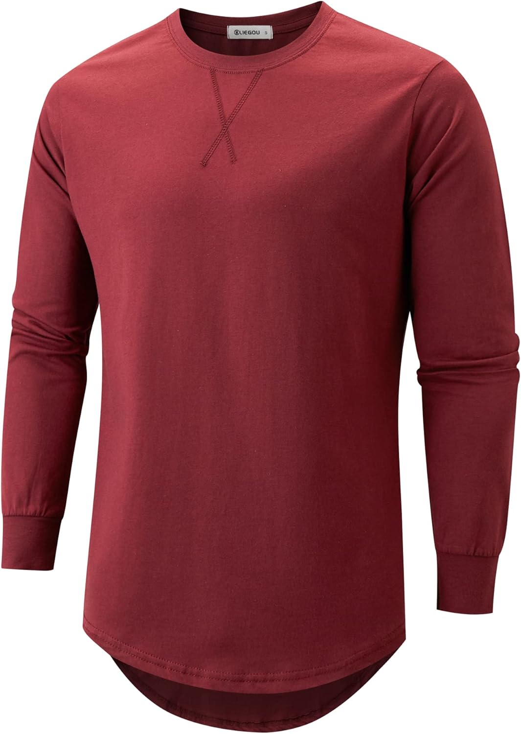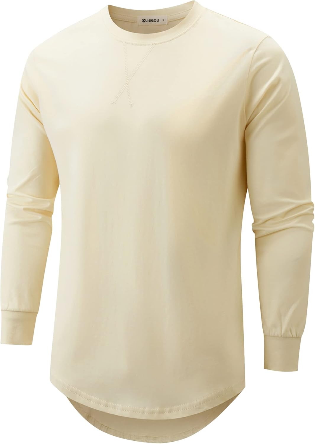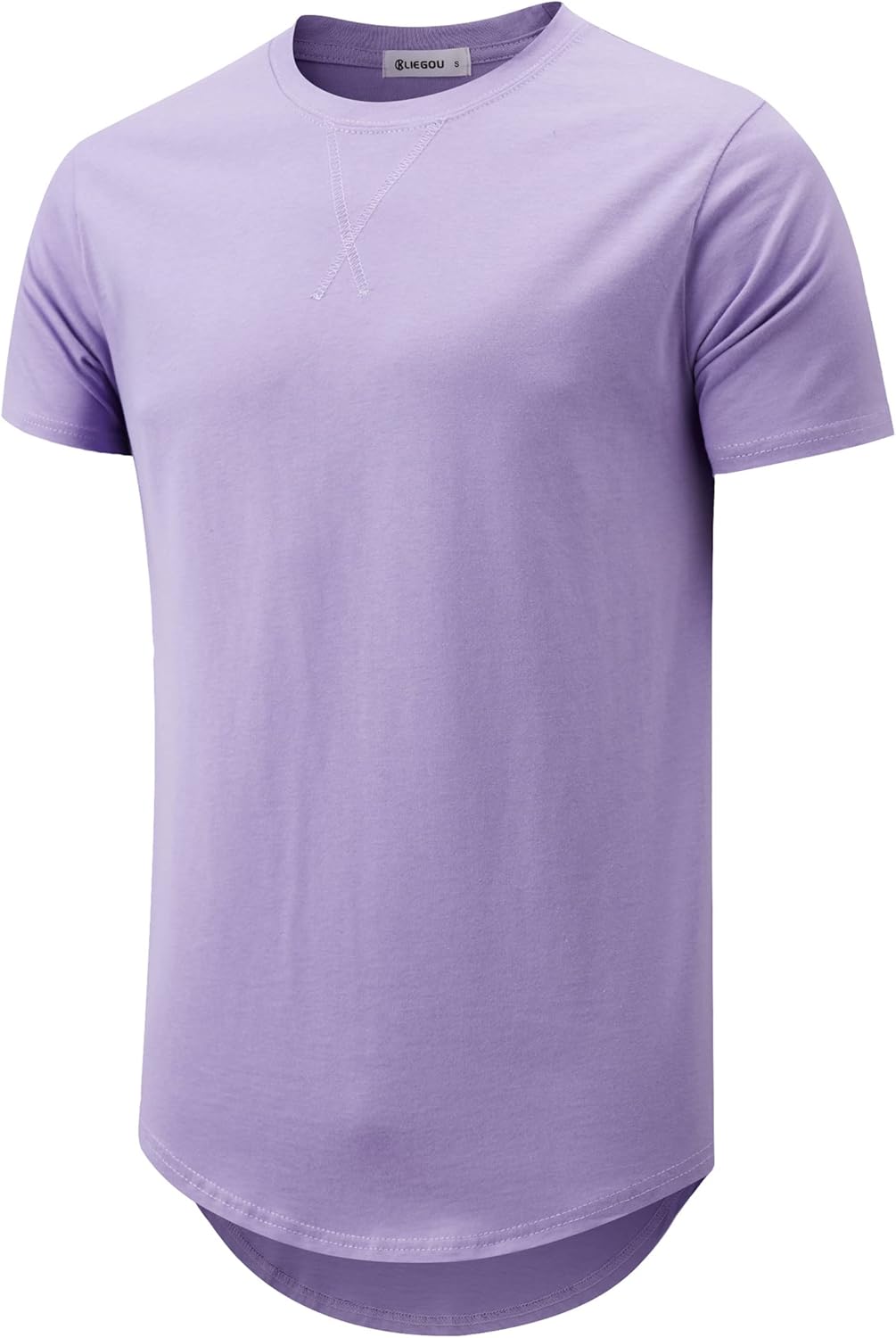 KLIEGOU Mens 100 Cotton Hipster Hip Hop Longline Crewneck T-Shirt Pre – Shrunk S-4XL
