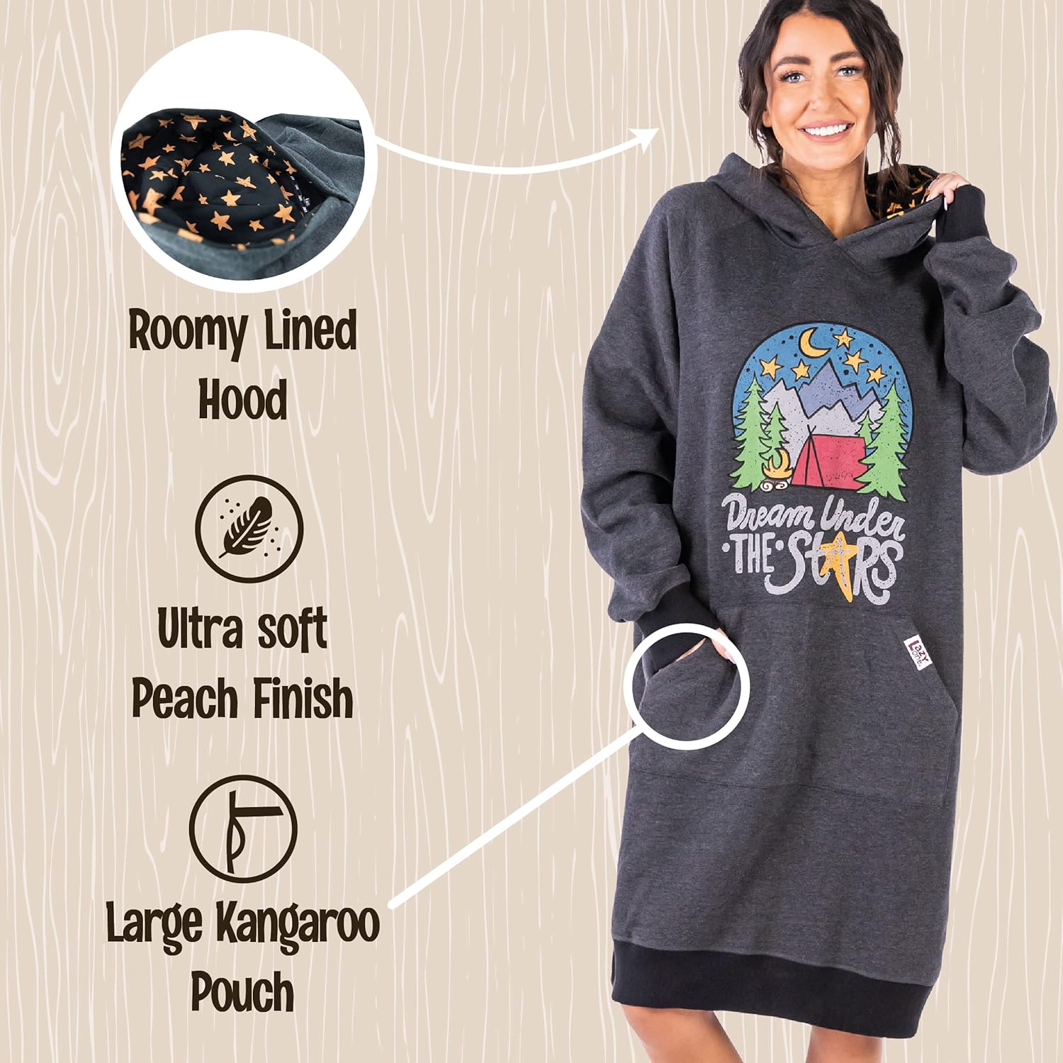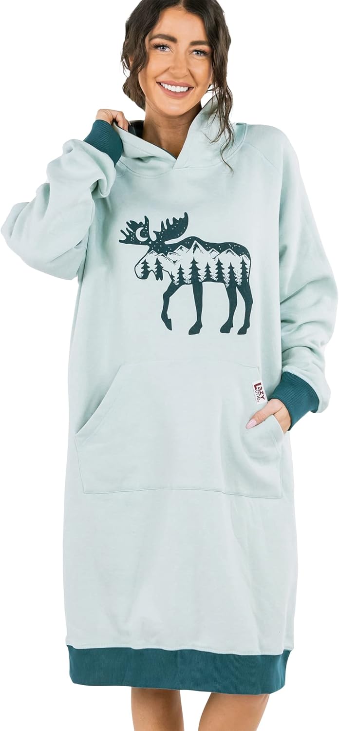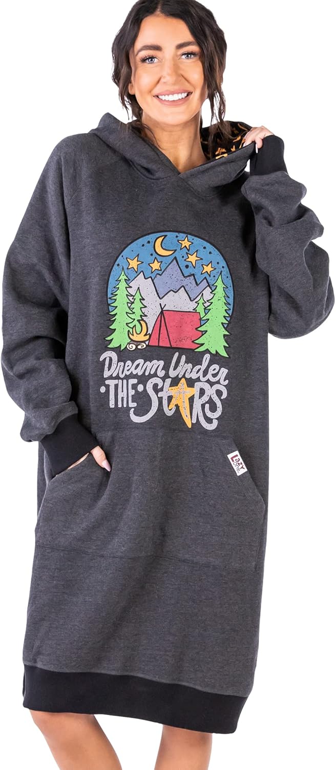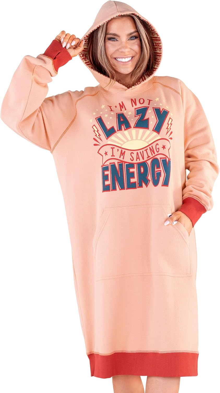 Lazy One Oversized Hoodie Sweatshirt, Comfortable Sleepwear, Sweater Dress For Women