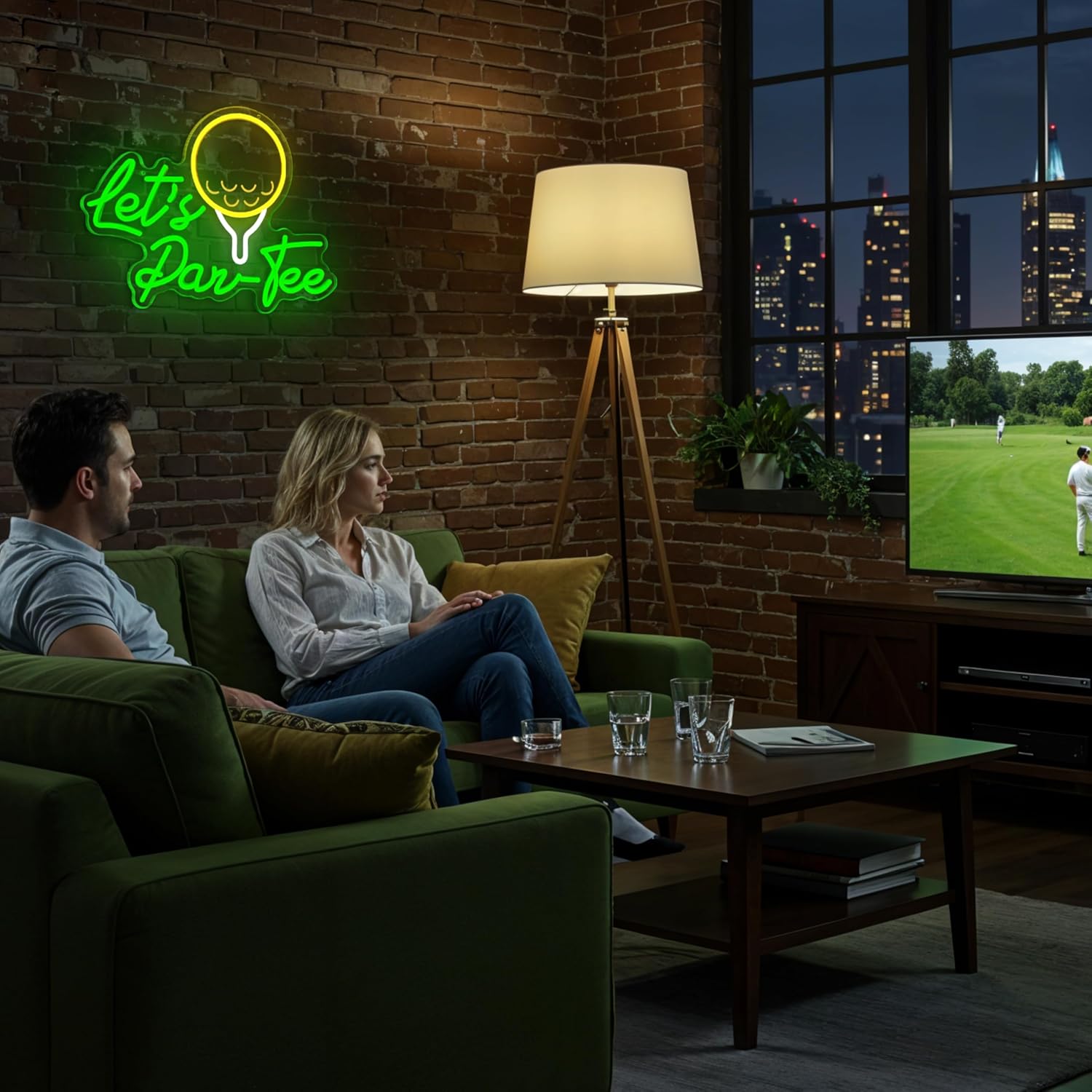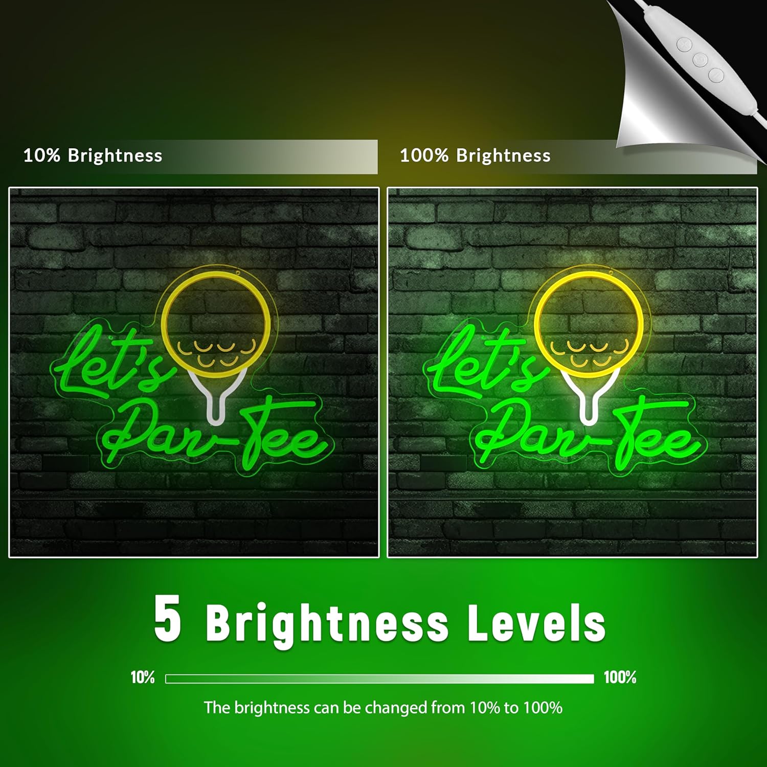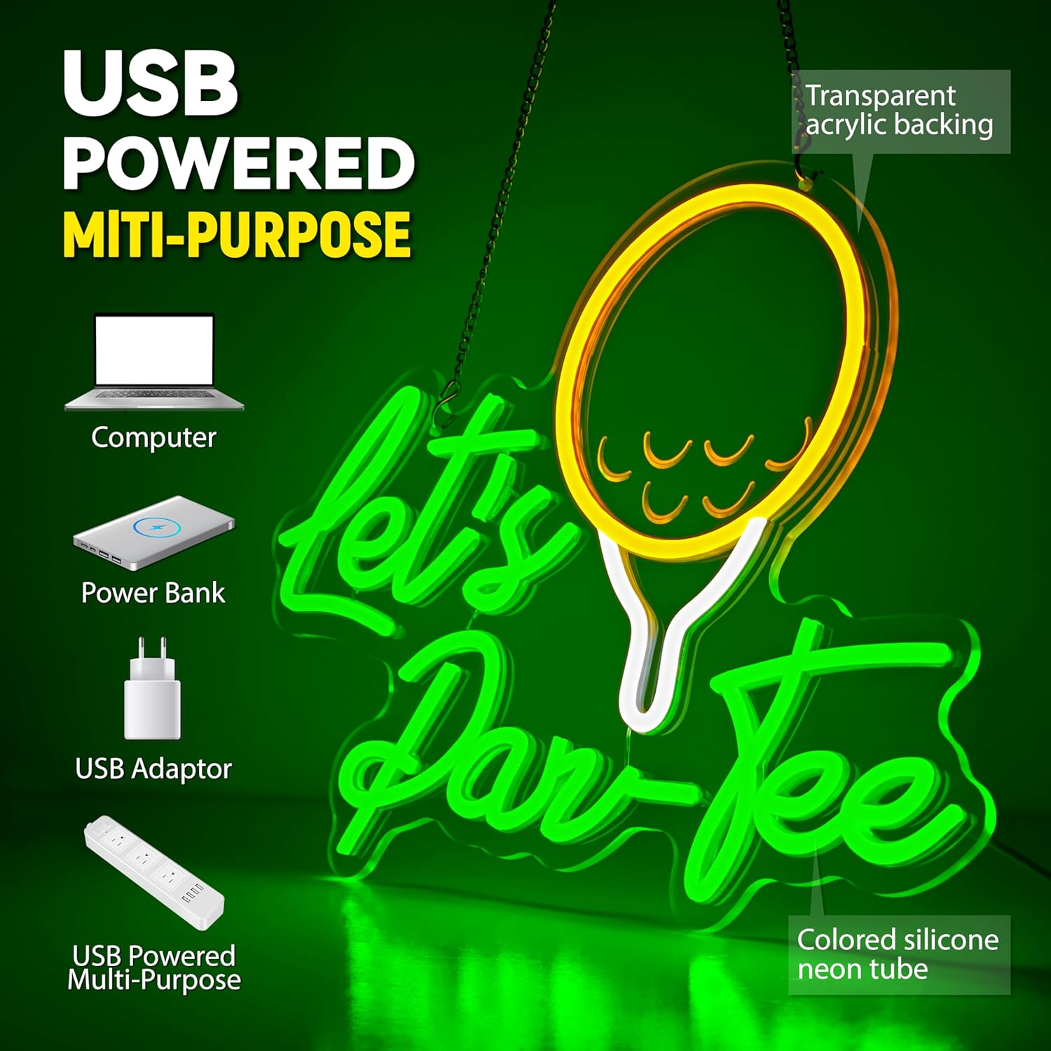 Let’s Par Tee Neon Sign Funny Golf Neon Light for Wall Decor USB Dimmable Golf Ball Led Sign for Golf Party, Bar, Game Room, Man Cave Decor