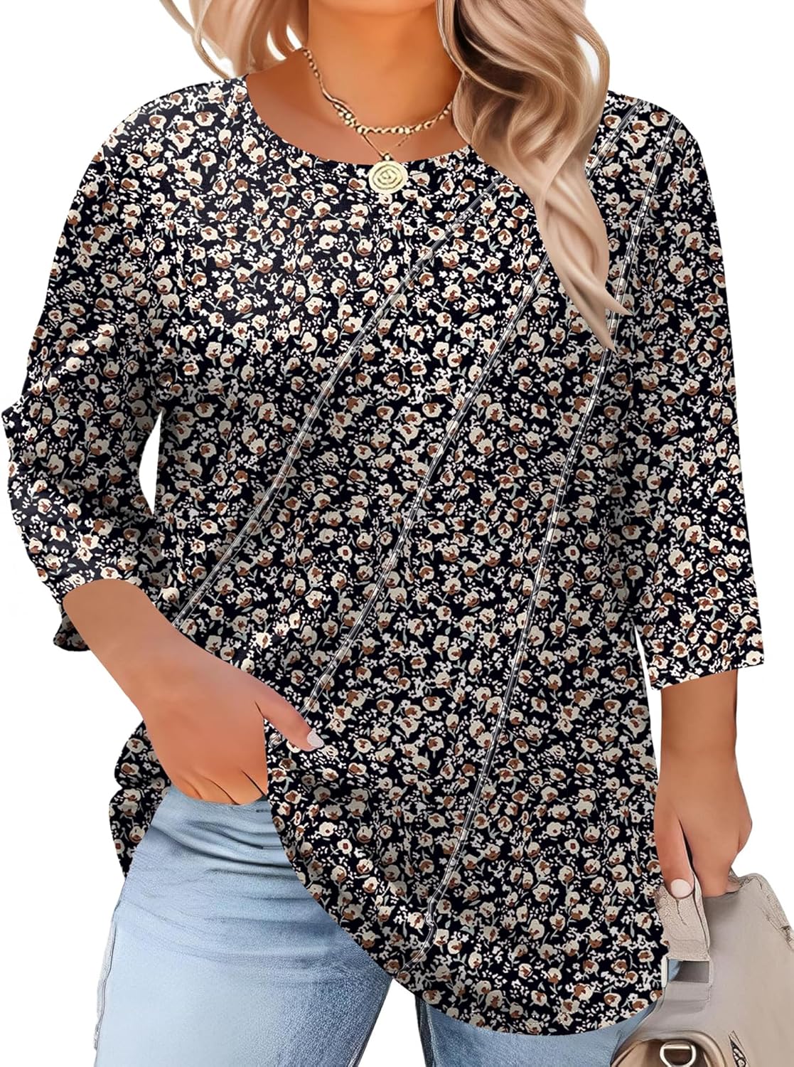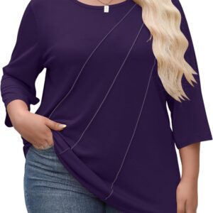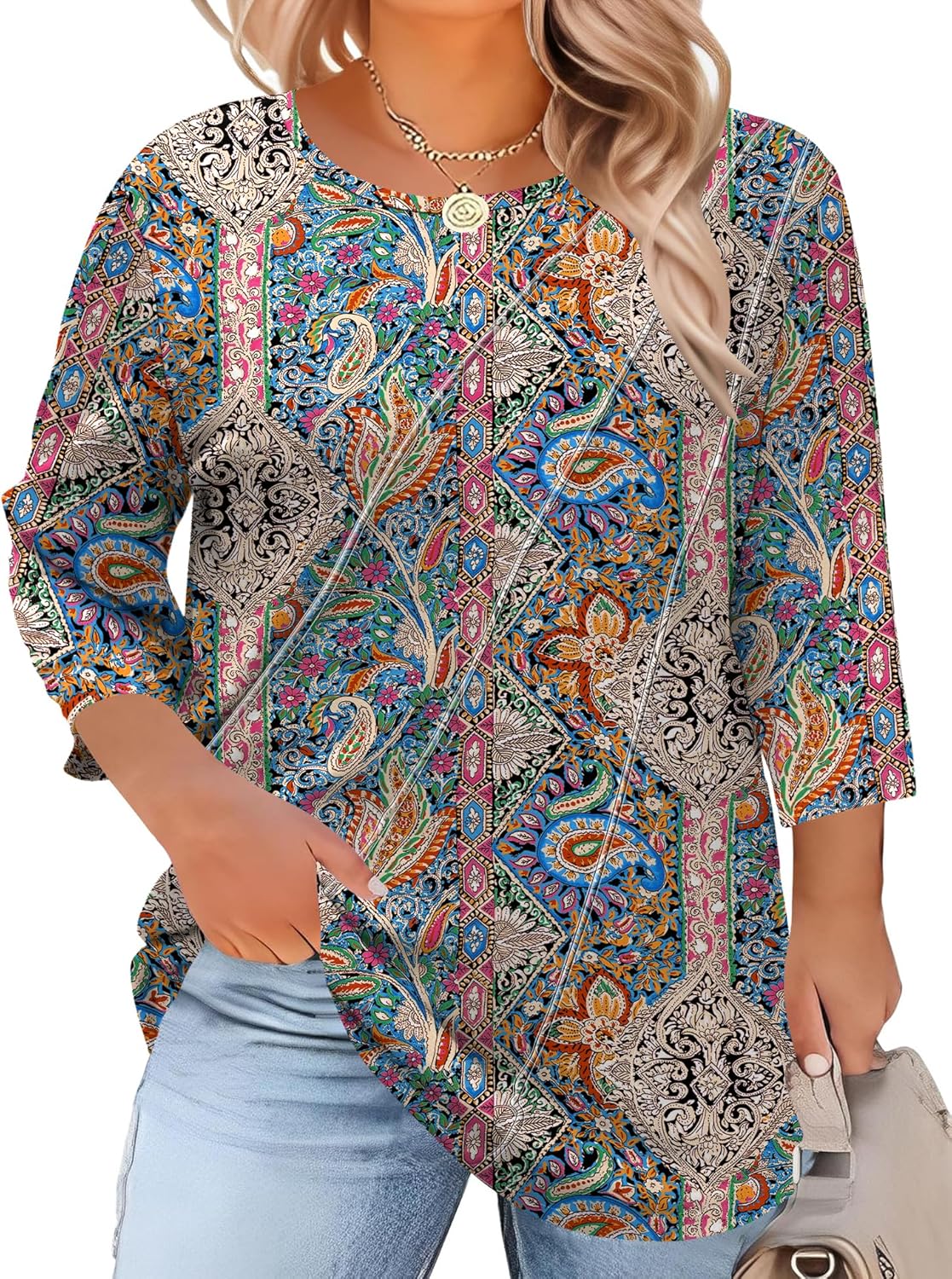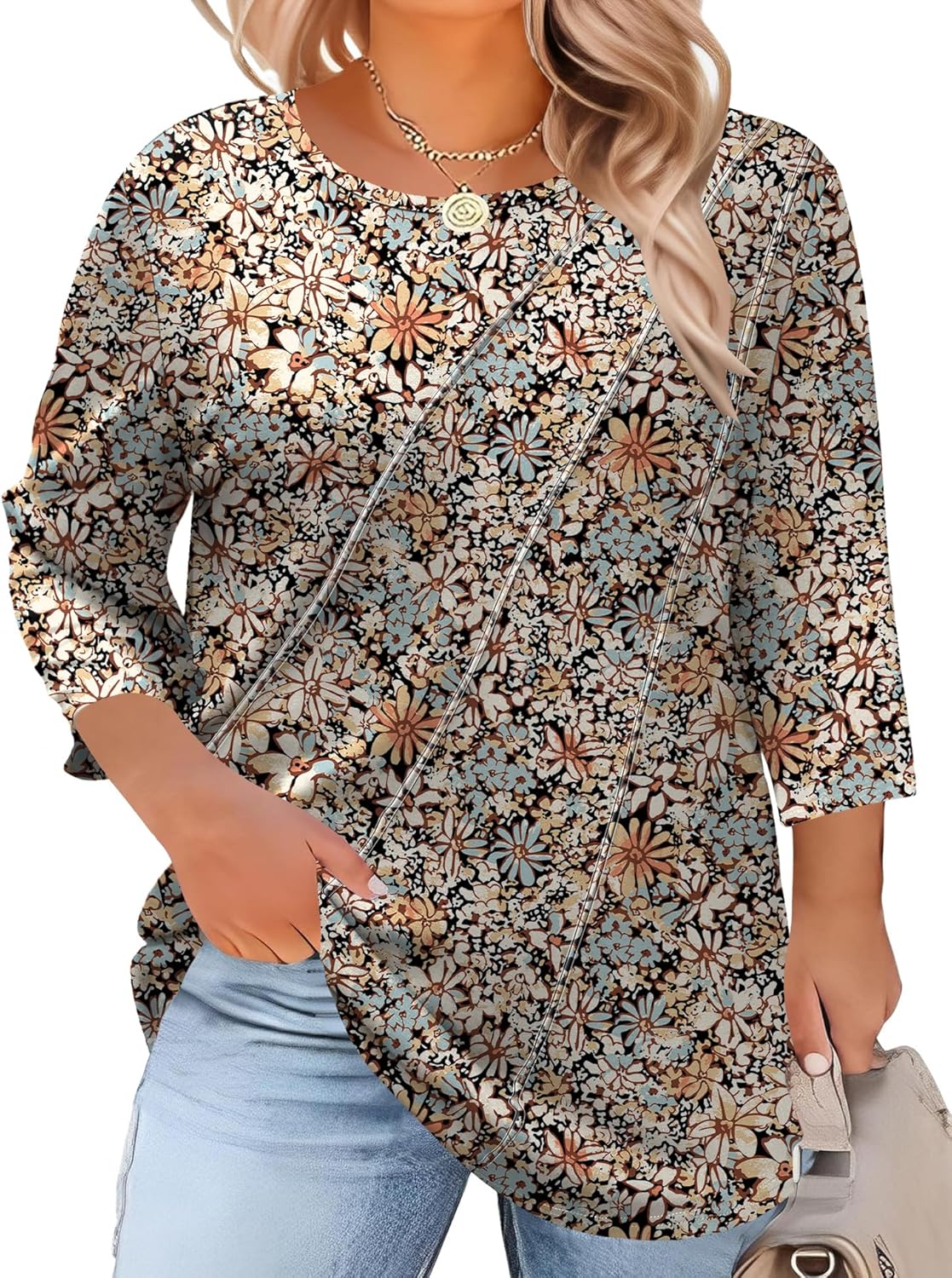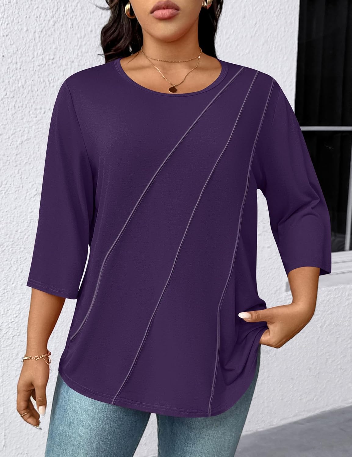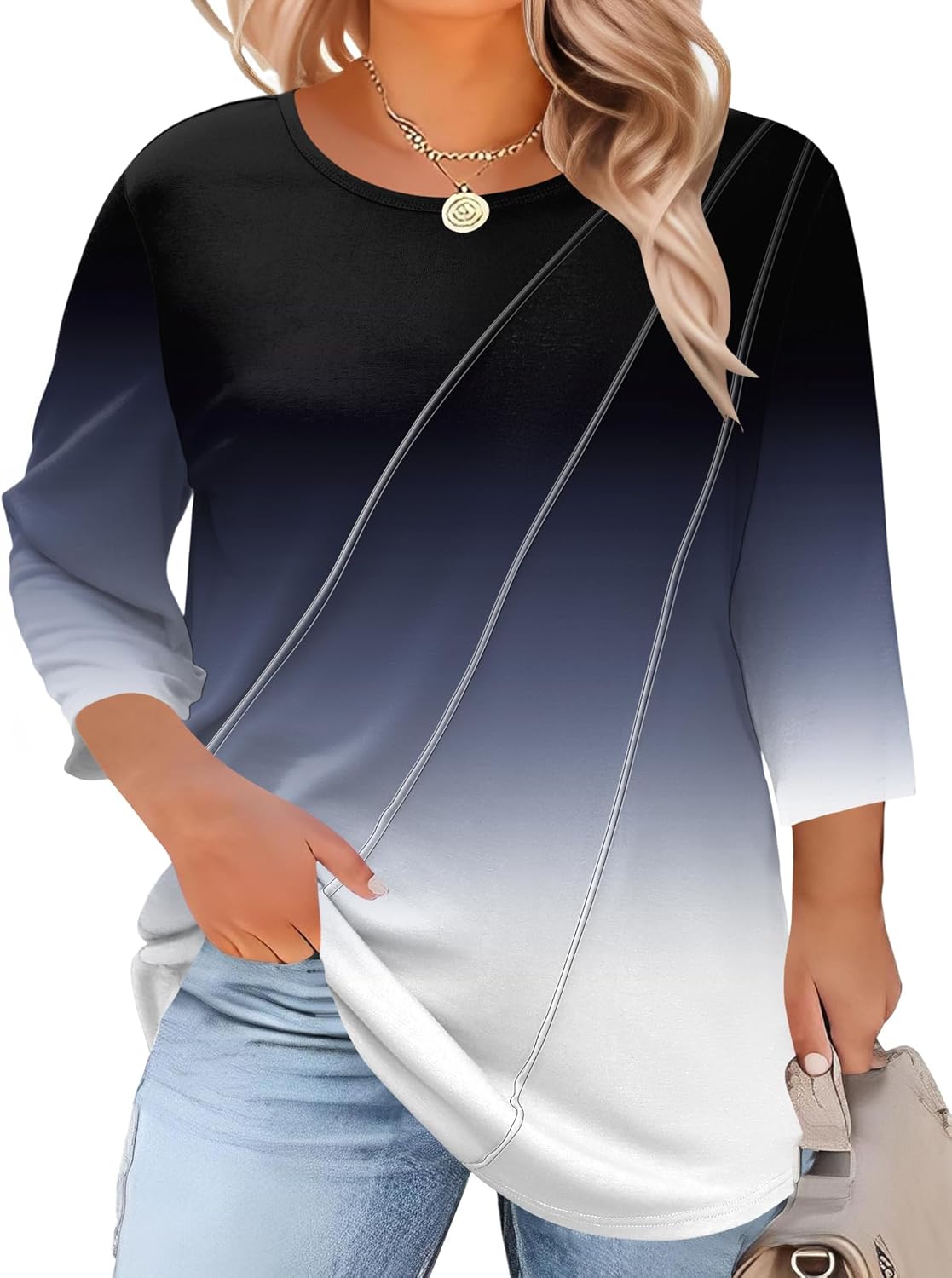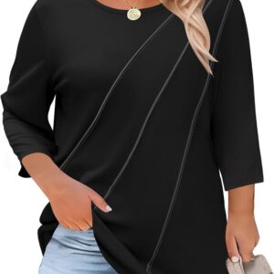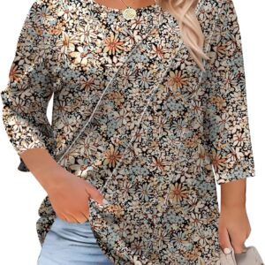 LOMON womens plus size tops womens 3/4 sleeve tops