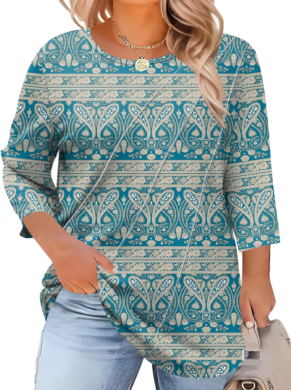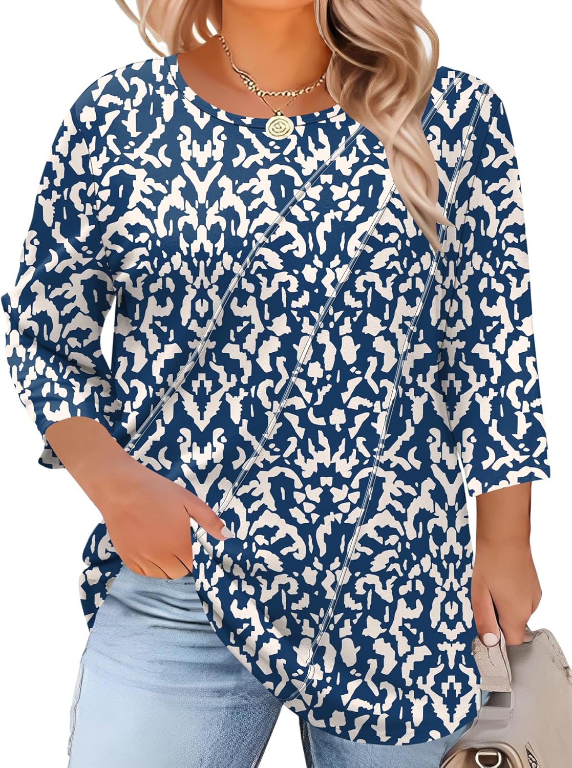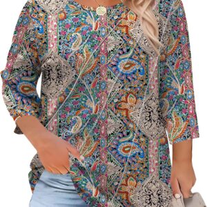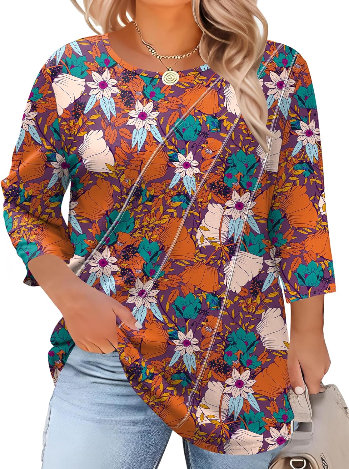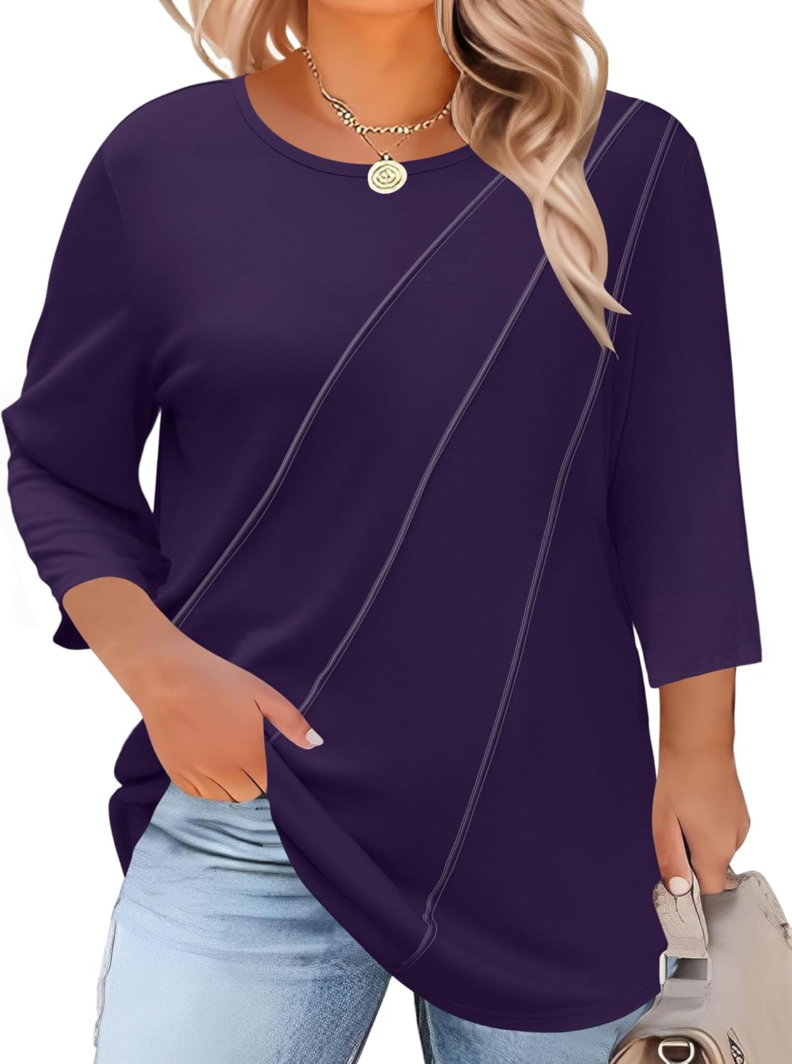 LOMON womens plus size tops womens 3/4 sleeve tops