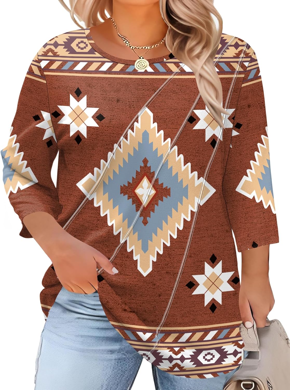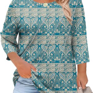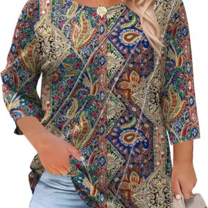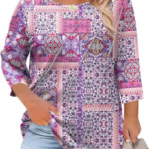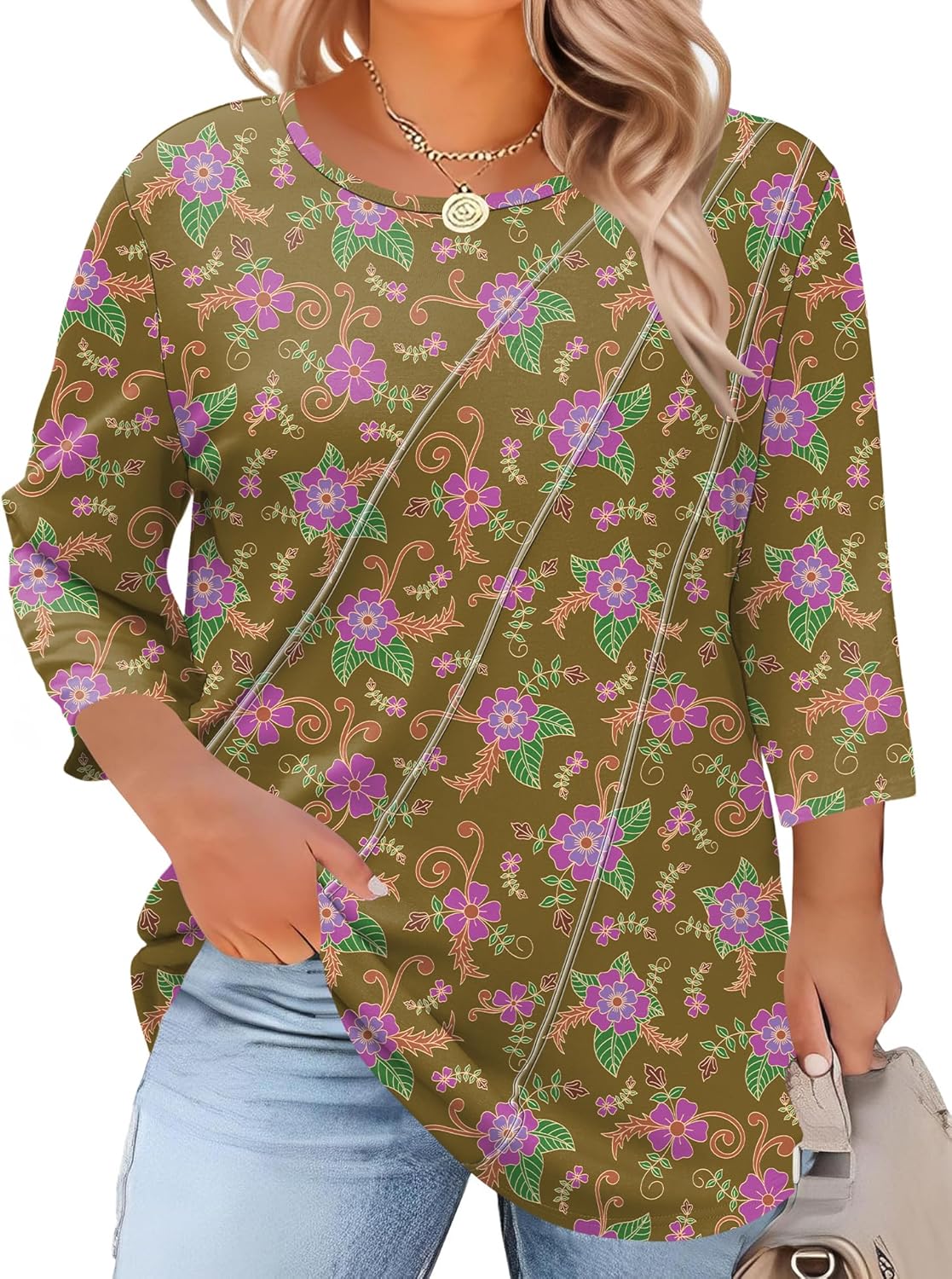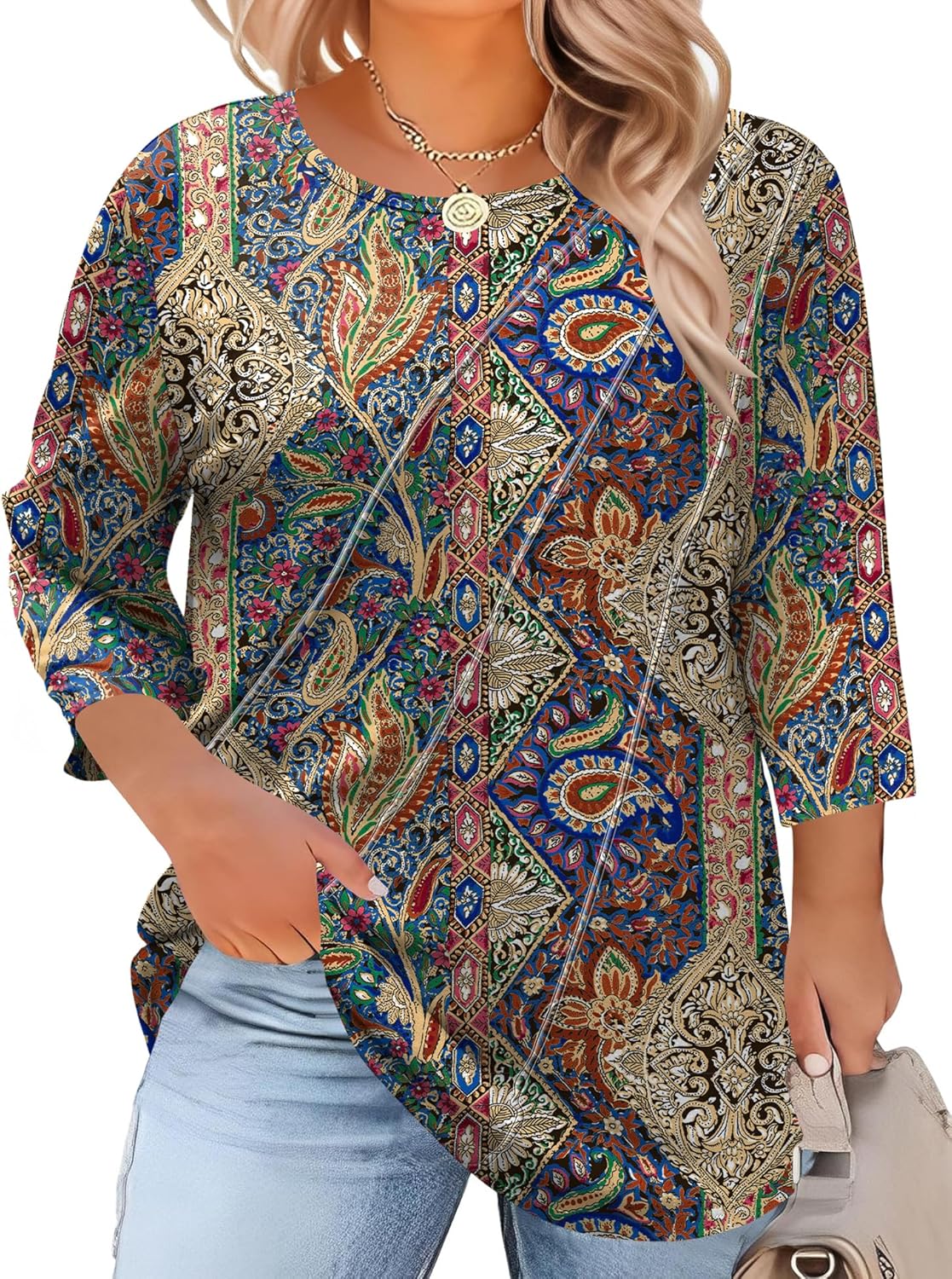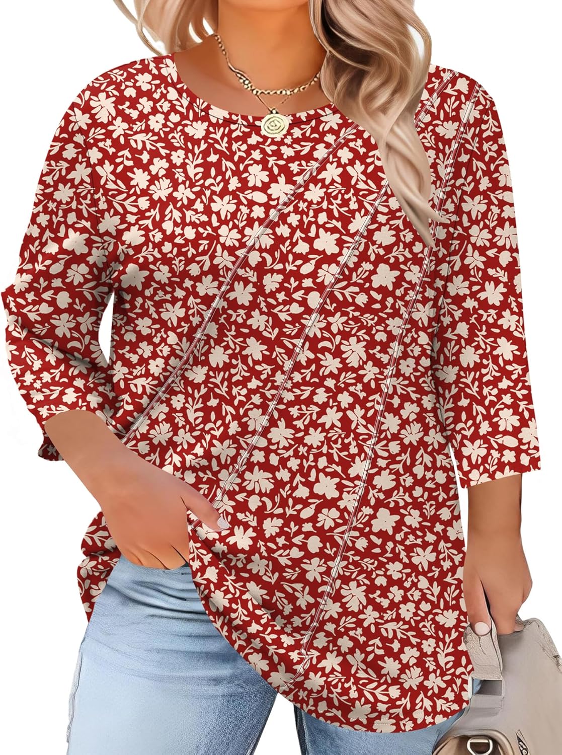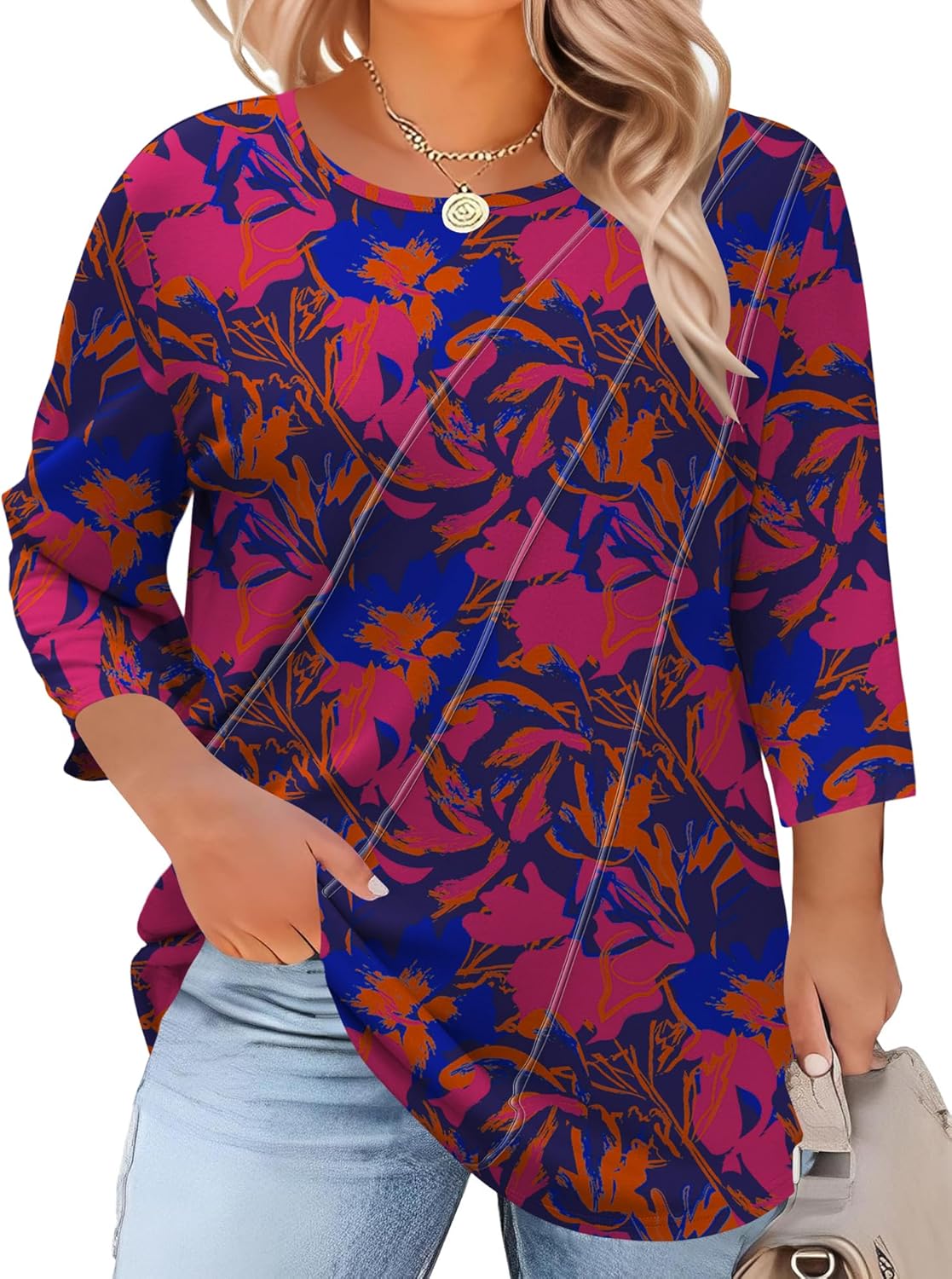 LOMON womens plus size tops womens 3/4 sleeve tops