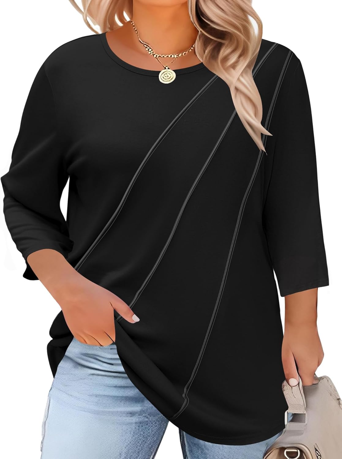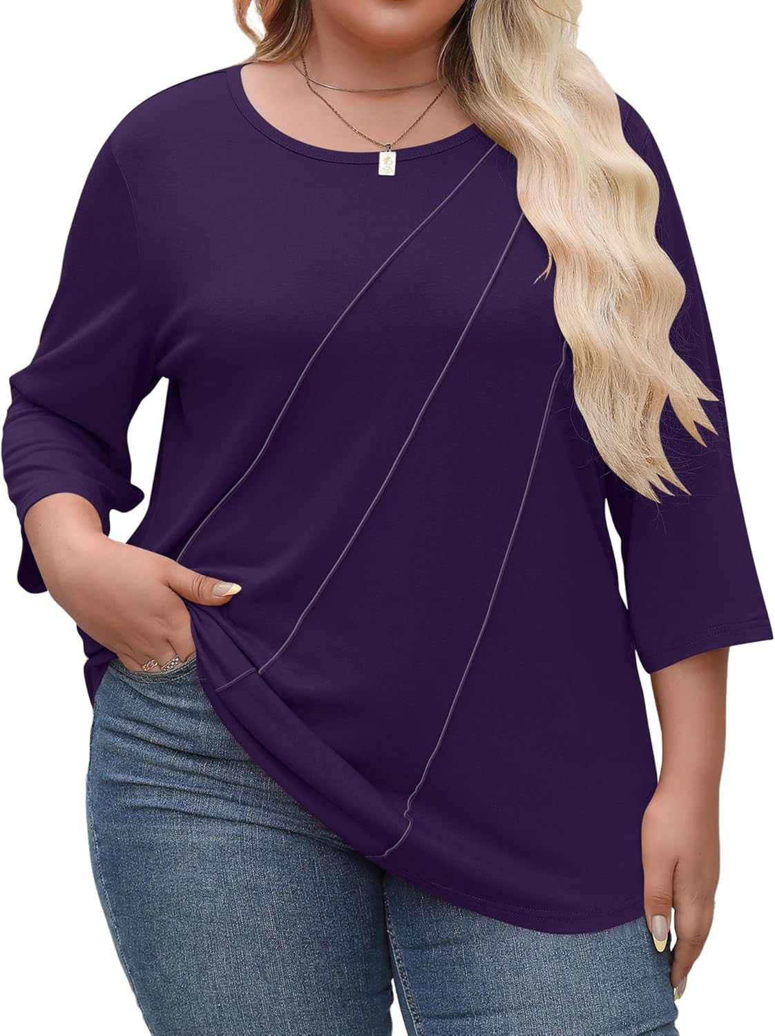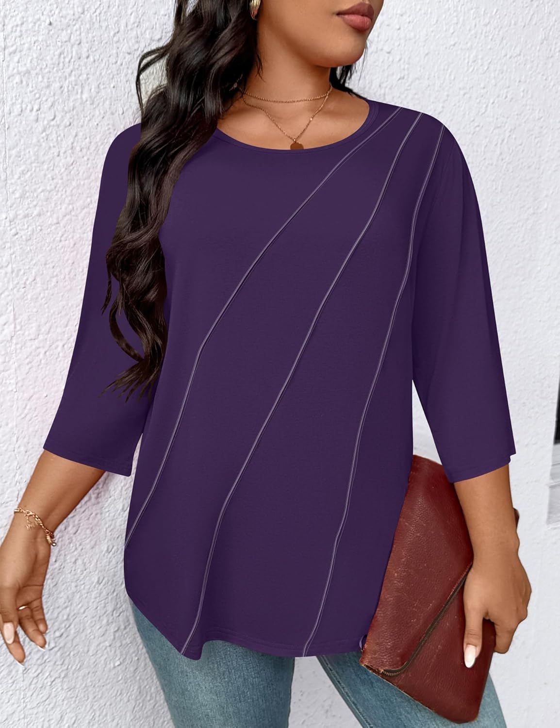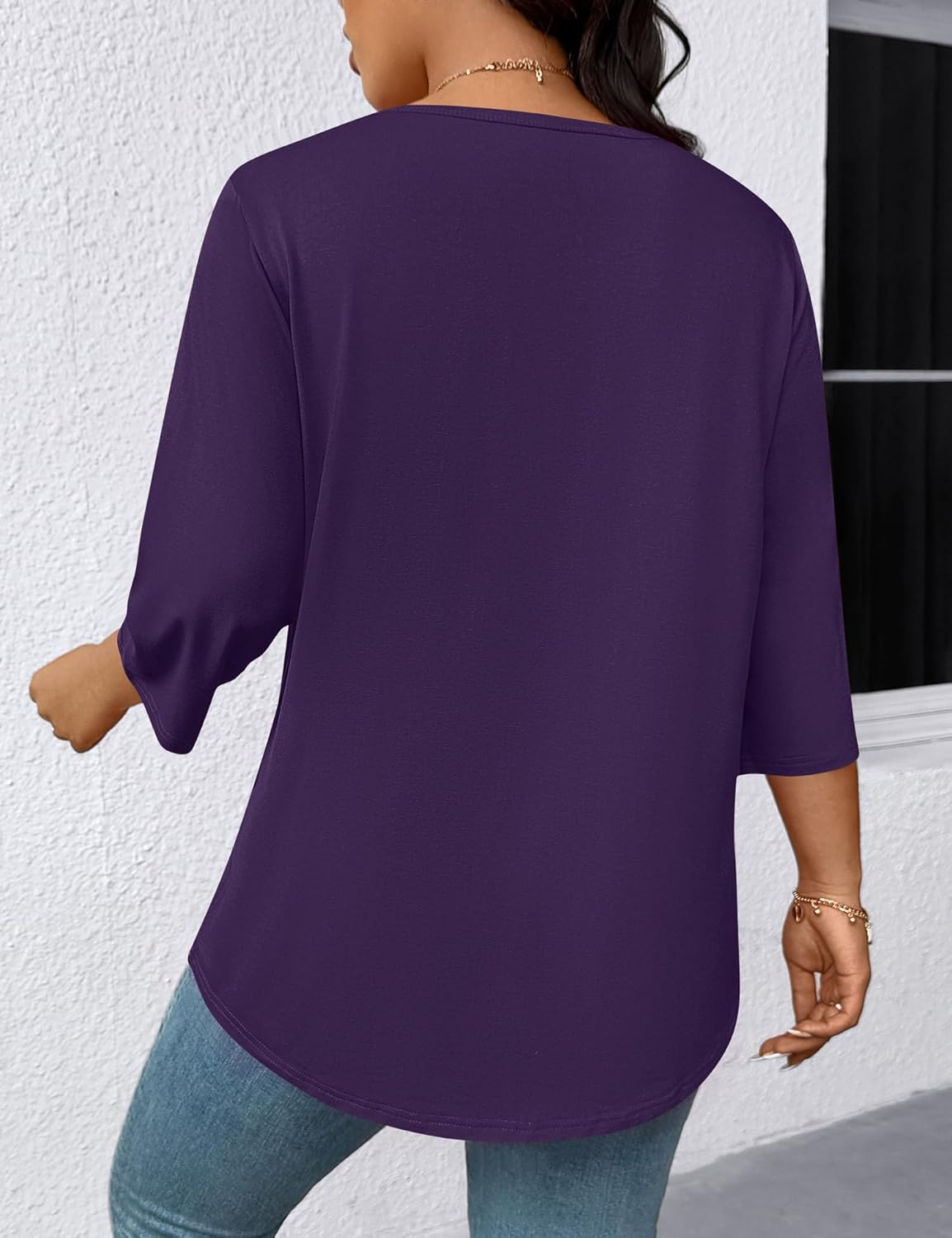 LOMON plus size tops for women 3/4 sleeve t shirts for women