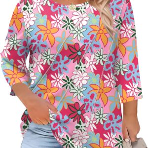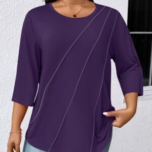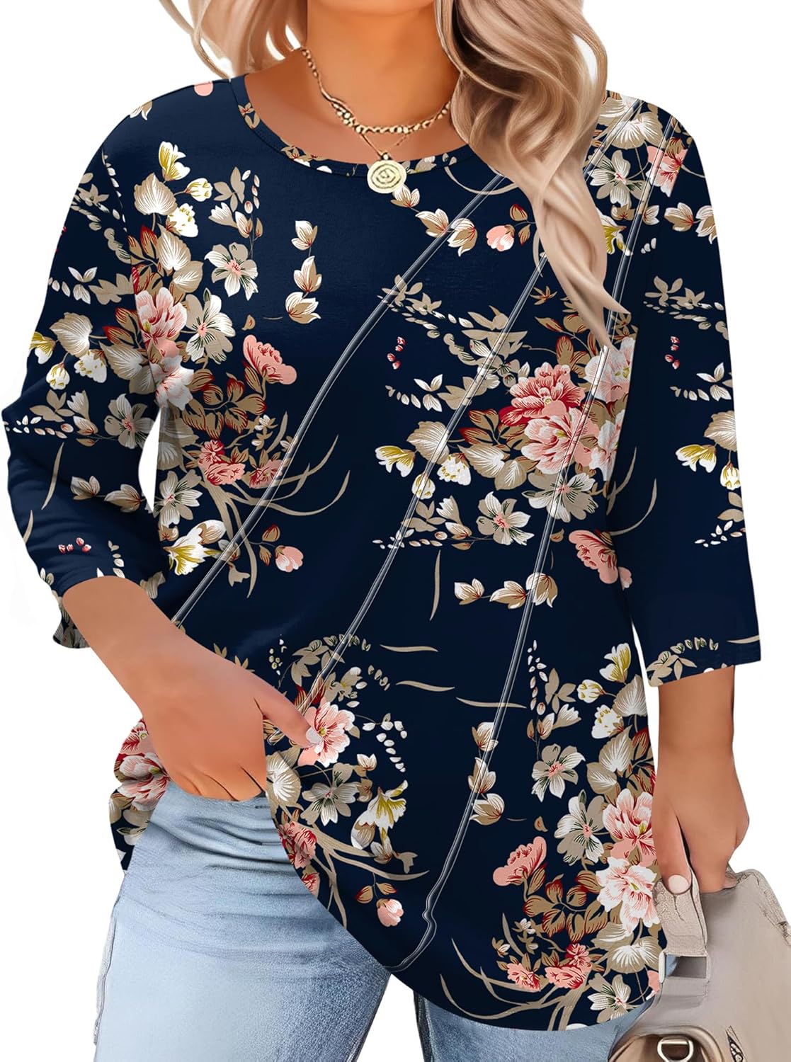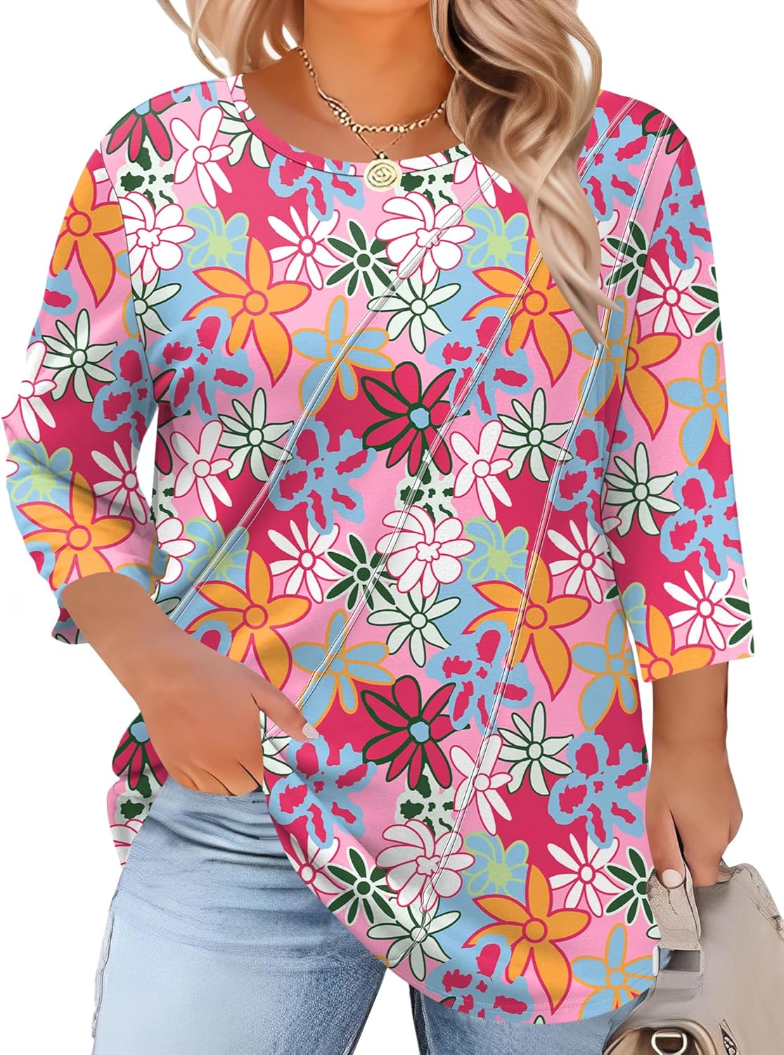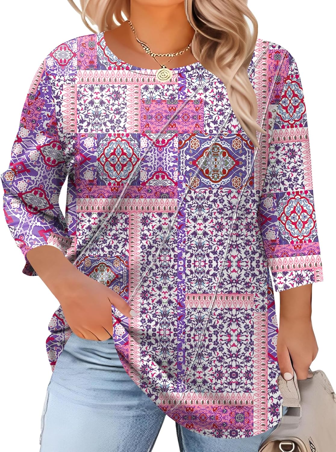 LOMON plus size tops for women 3/4 sleeve t shirts for women
