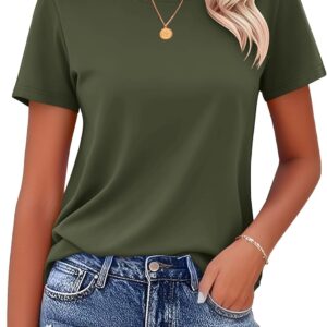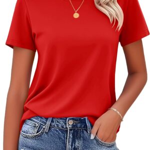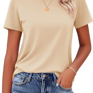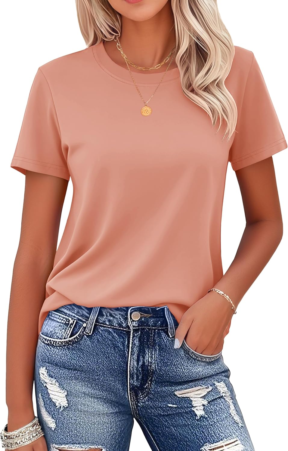 Womens Cotton Short Sleeve Crewneck T-Shirts Breathable Basic Tees