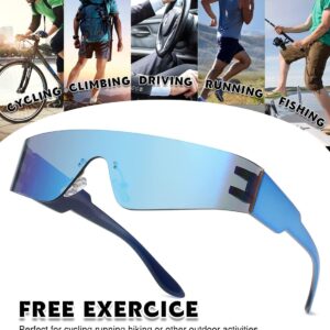 MASDUN Trendy Rimless Futuristic Wrap Around Sunglasses Women Men,Cyberpunk Visor Shades Fashion Sun Glasses (3 Pack)