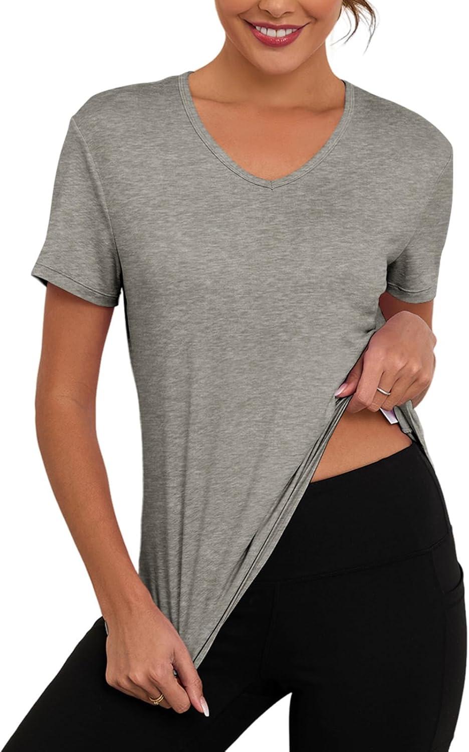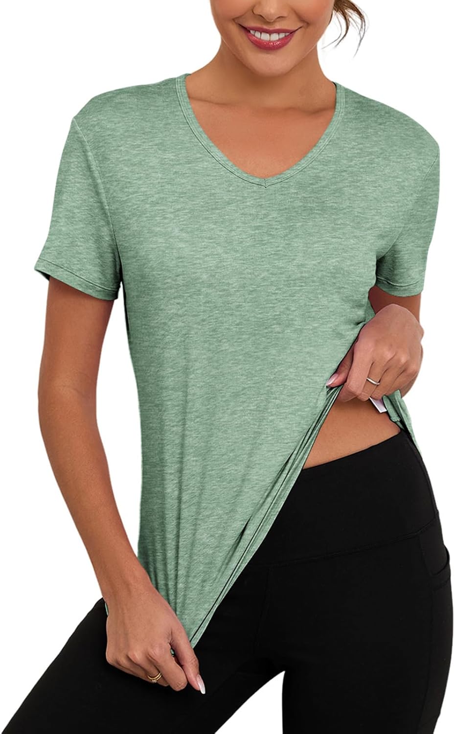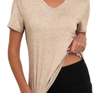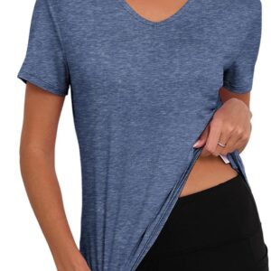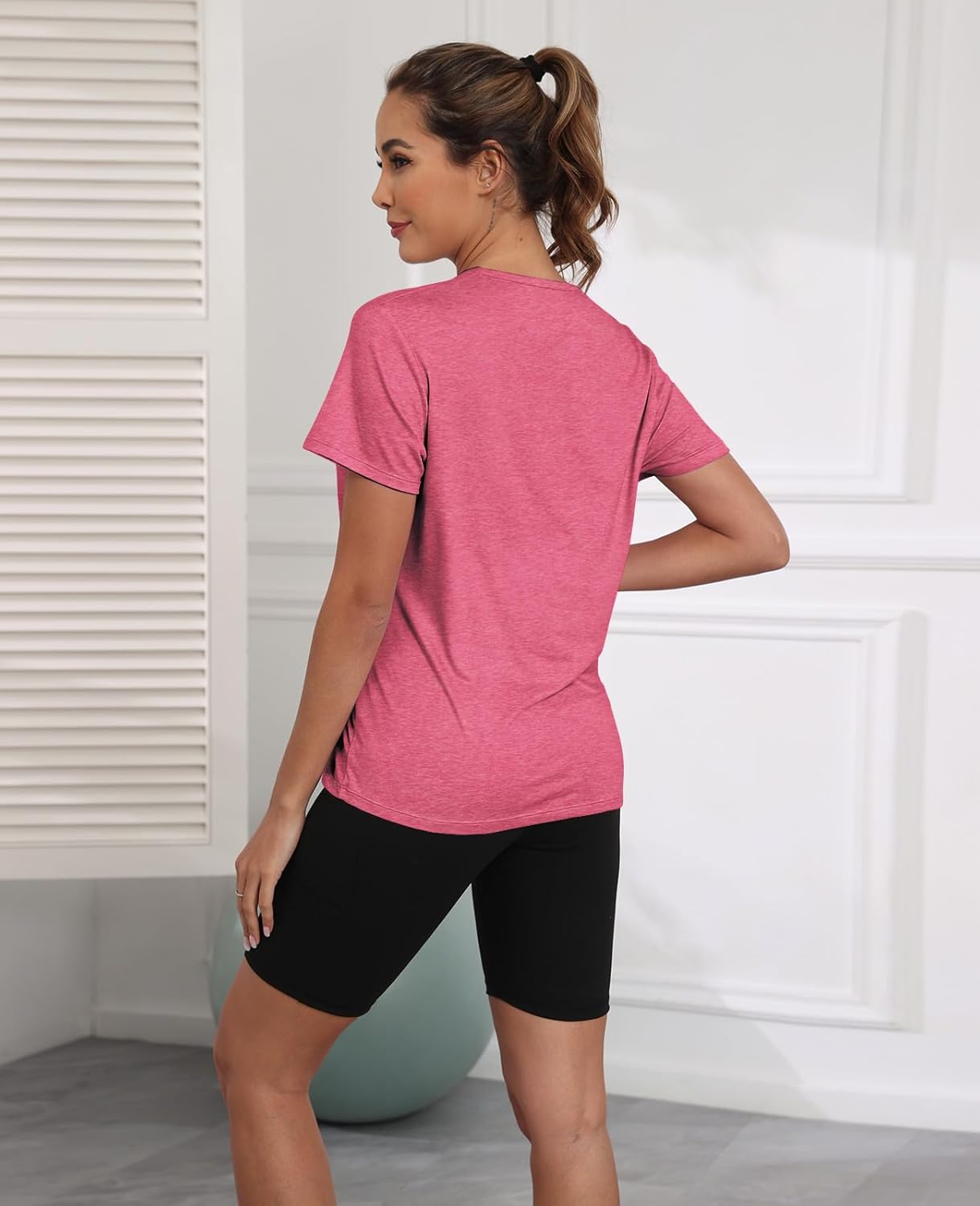 Mazulun V Neck Workout Tops for Women UPF 50+ Breathable Loose Fit Short Sleeve Tee Shirt Yoga Gym Basic T Shirts quantity