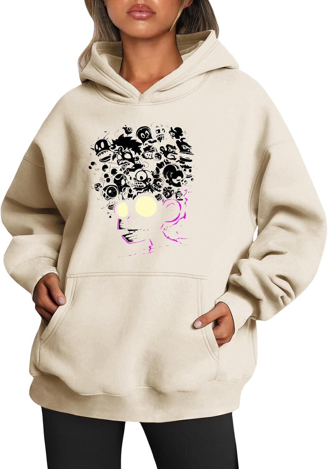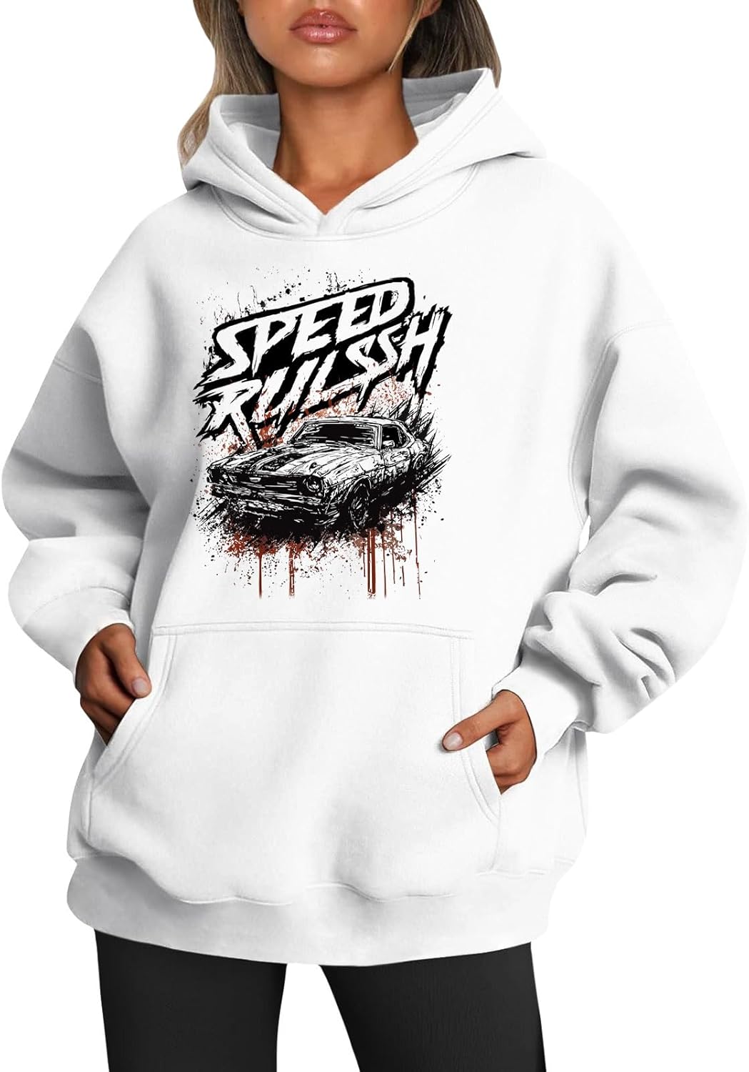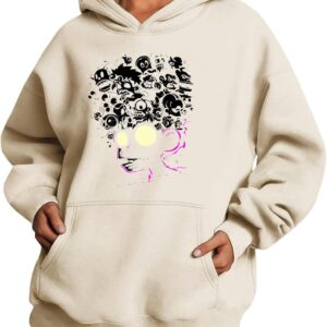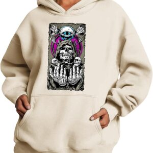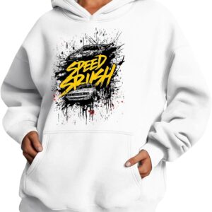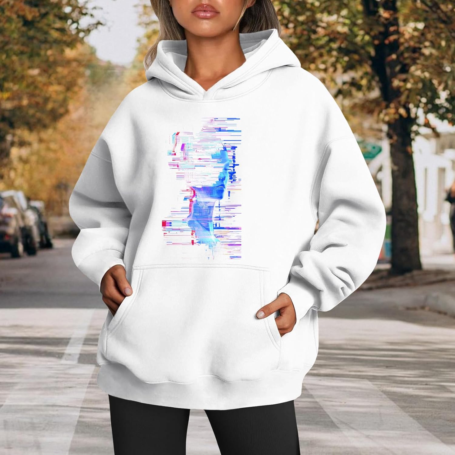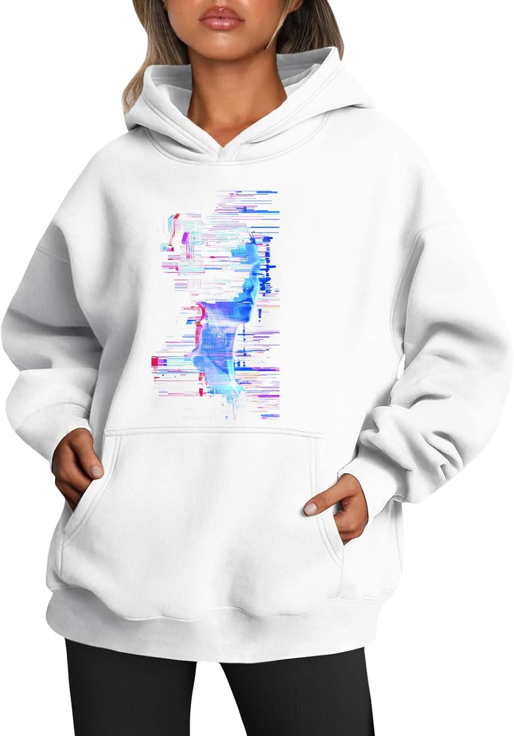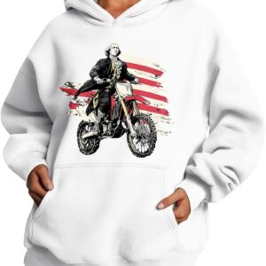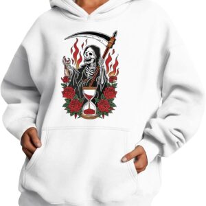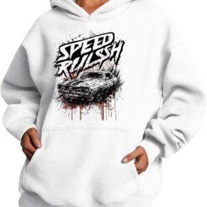 Medlor Womens White Graphic Hoodie Oversized Pullover Sweatshirt Unique Streetwear Casual Cotton Blend Top