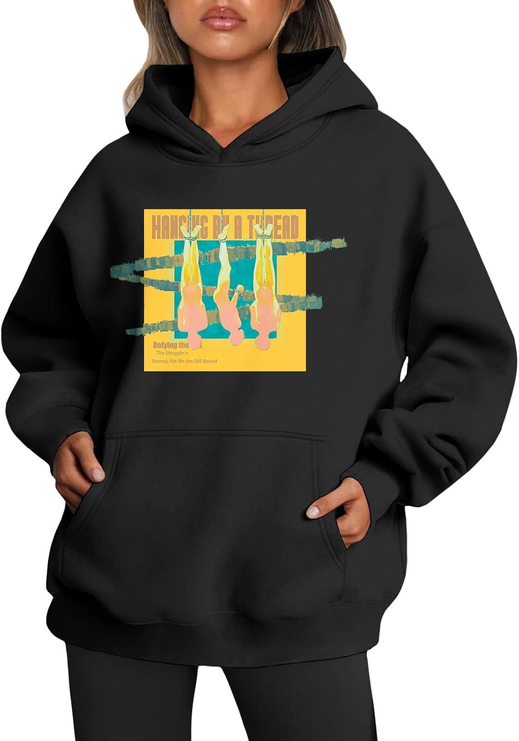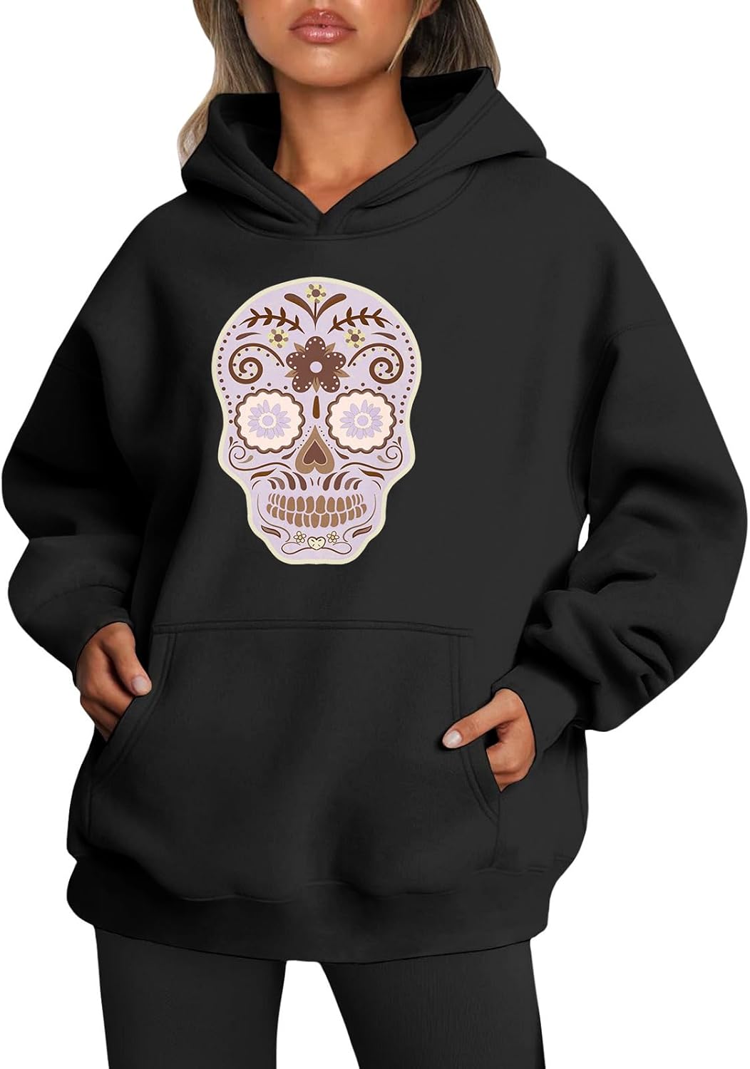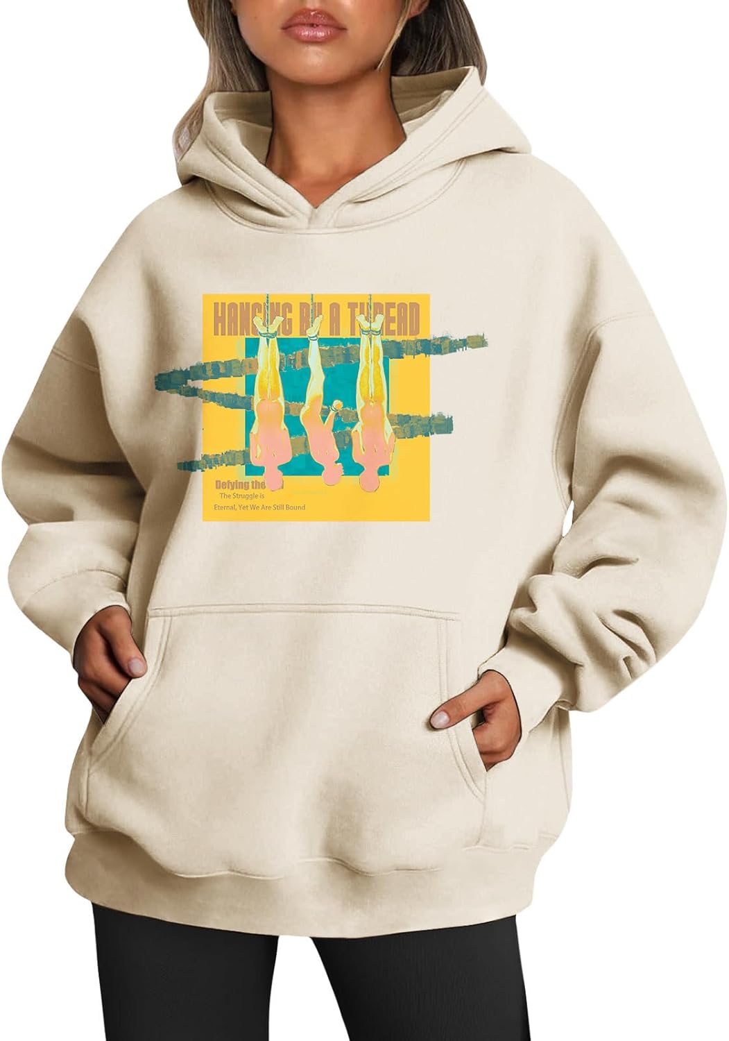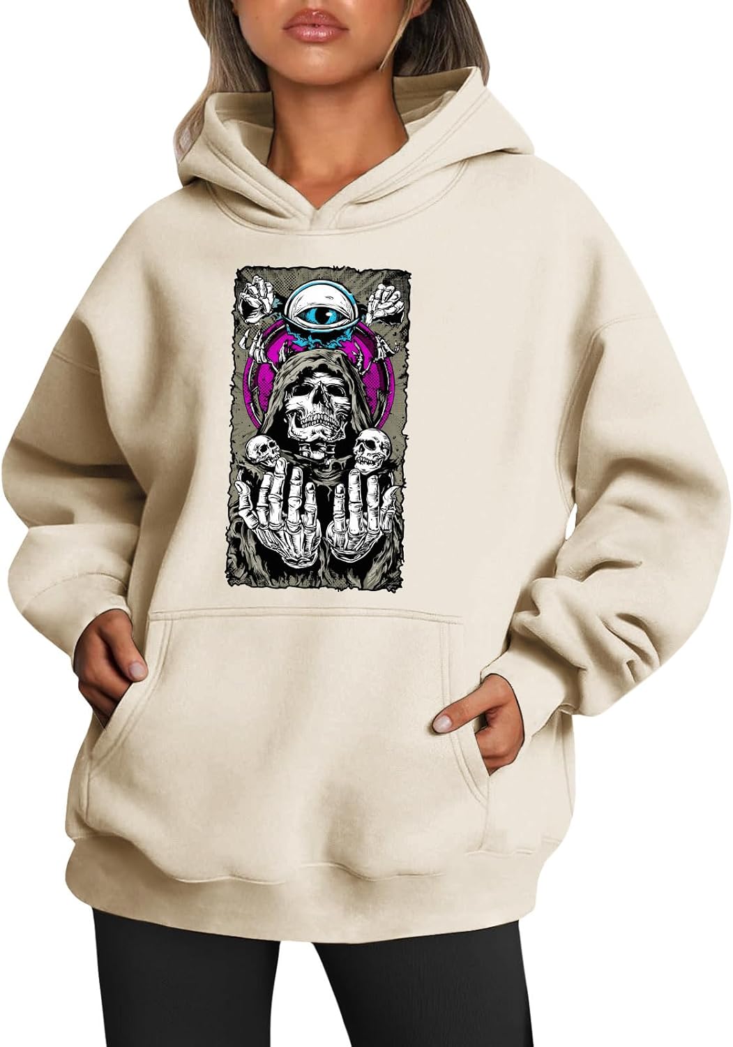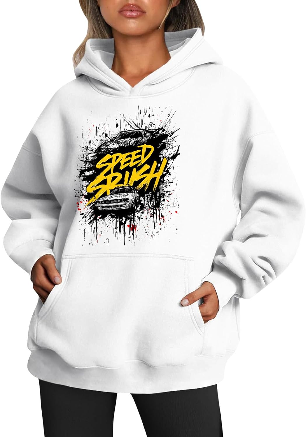 Medlor Womens White Graphic Hoodie Oversized Pullover Sweatshirt Unique Streetwear Casual Cotton Blend Top
