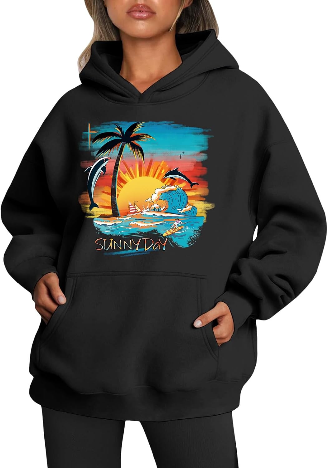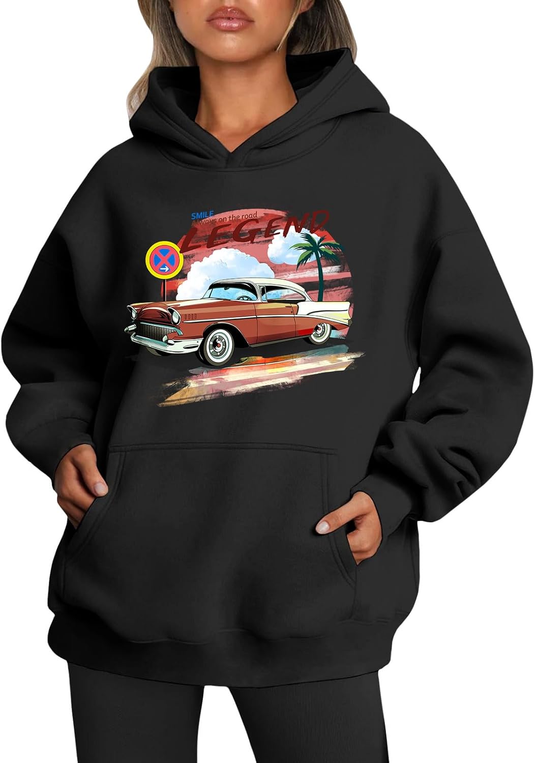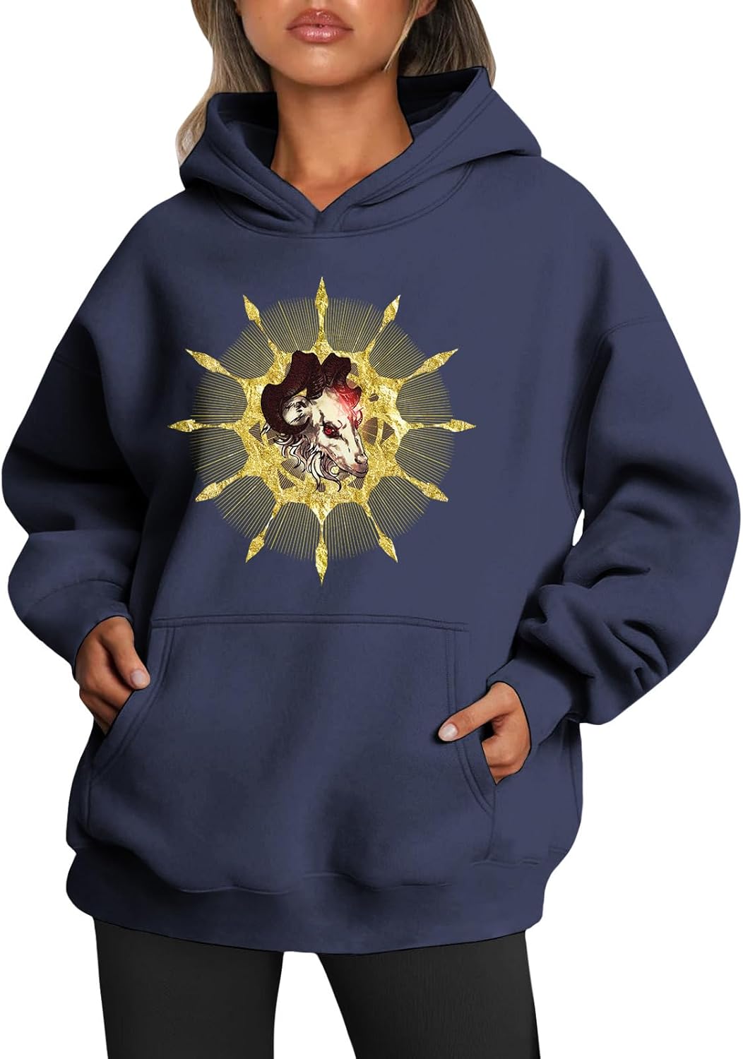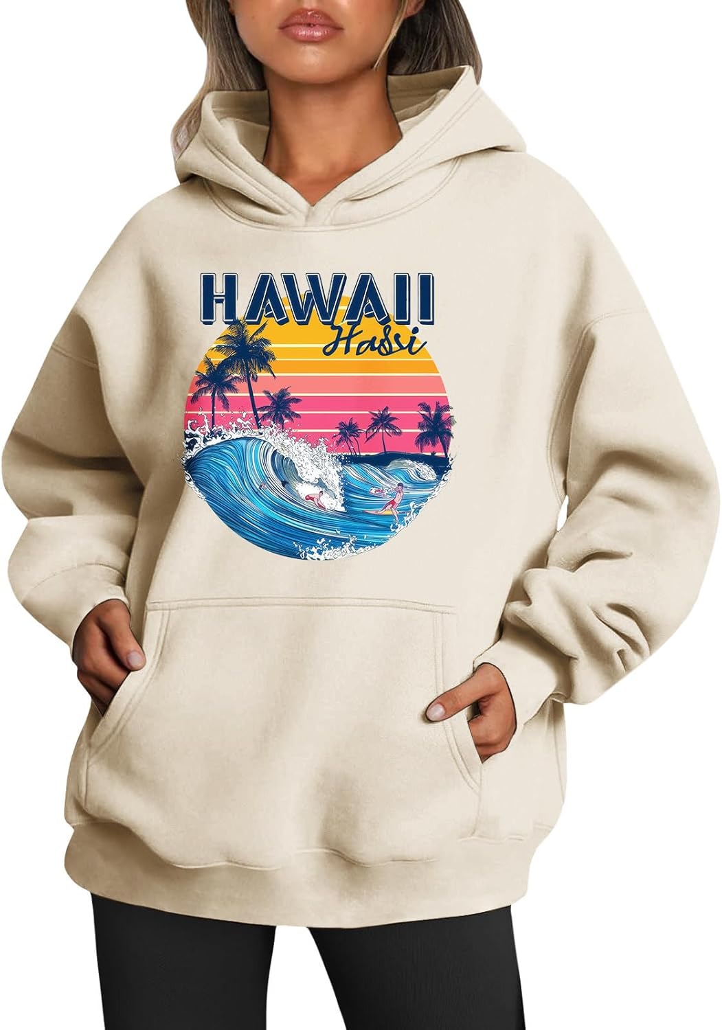Medlor Womens White Graphic Hoodie Oversized Pullover Sweatshirt Unique Streetwear Casual Cotton Blend Top