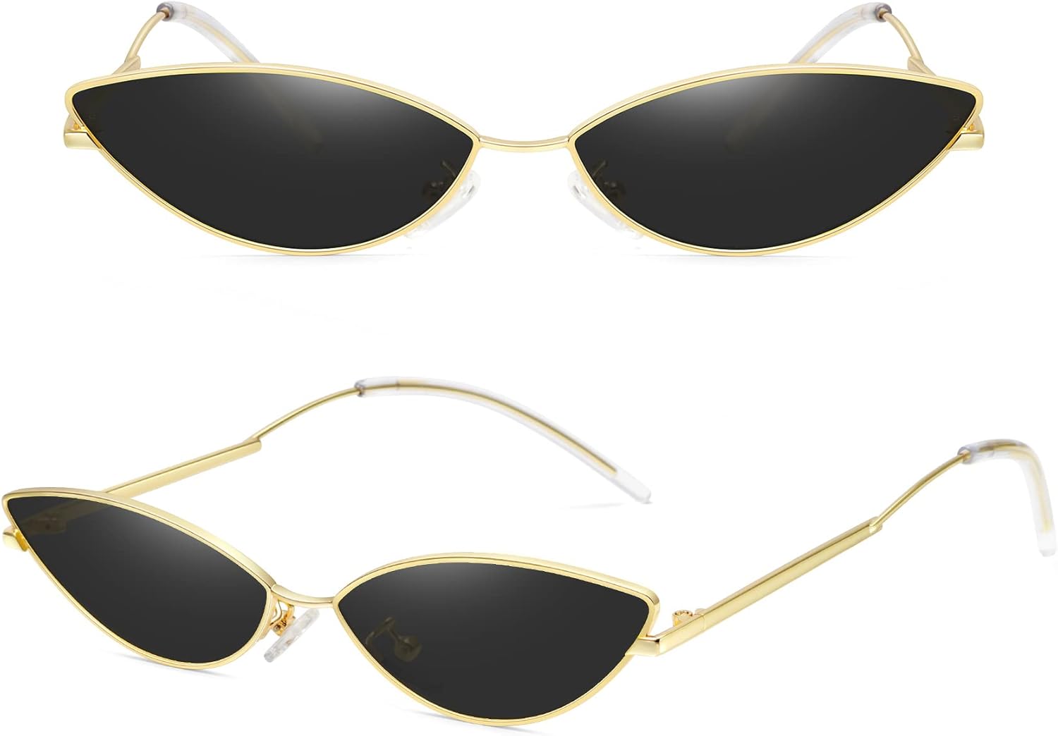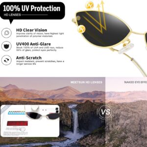MEETSUN Retro Vintage Cat Eye Sunglasses For Women Men Narrow Small Oval Glasses Petals Shape Curved Temple Design