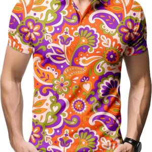 - 【70 s Costume Outfit for Men】70s shirt Can be easily paired with casual shorts, casual pants, jeans, etc. to create a fashionable and dazzling summer look.