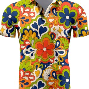 70 s Costume Outfit for Men.70s shirt Can be easily paired with casual shorts, casual pants, jeans, etc. to create a fashionable and dazzling summer look.