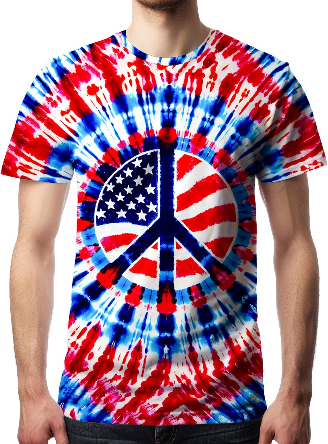 Men’s Tie Dye T Shirts Hippies Senior Short Sleeve Tie Dye Tee Shirt for Men