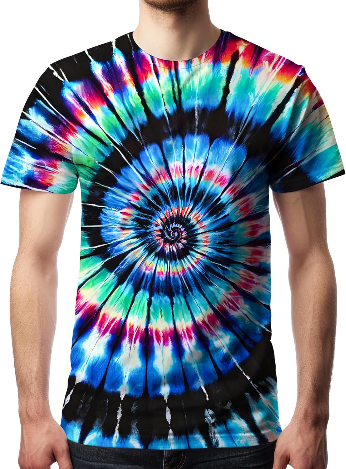 Men’s Tie Dye T Shirts Hippies Senior Short Sleeve Tie Dye Tee Shirt for Men