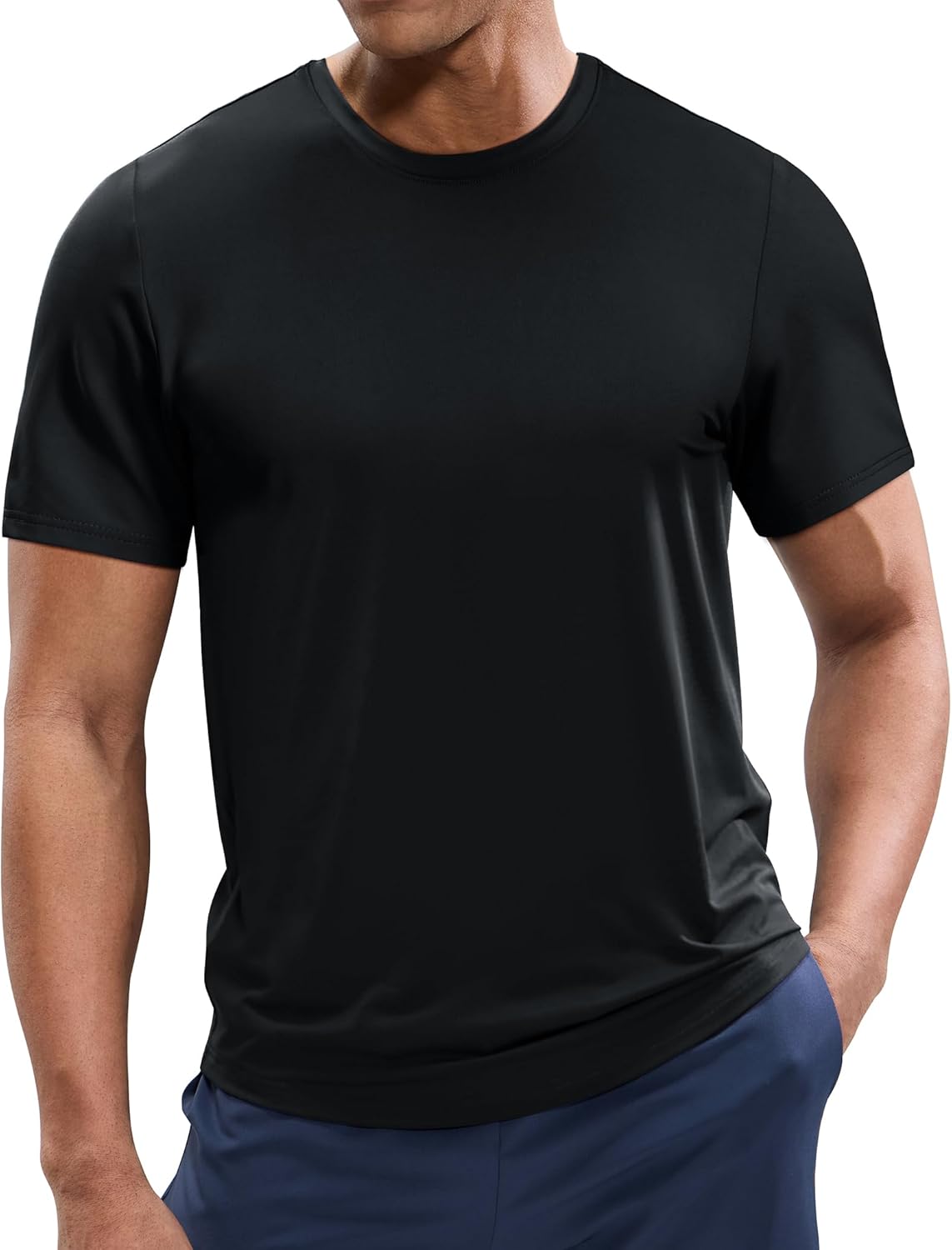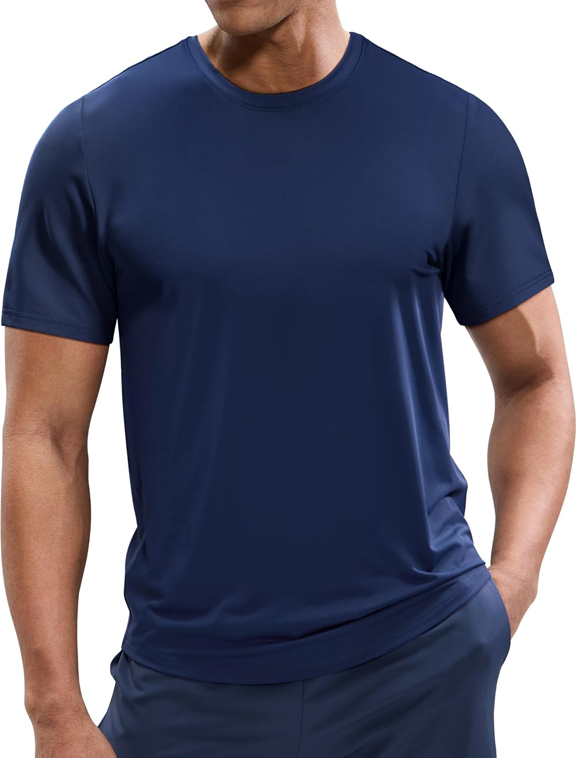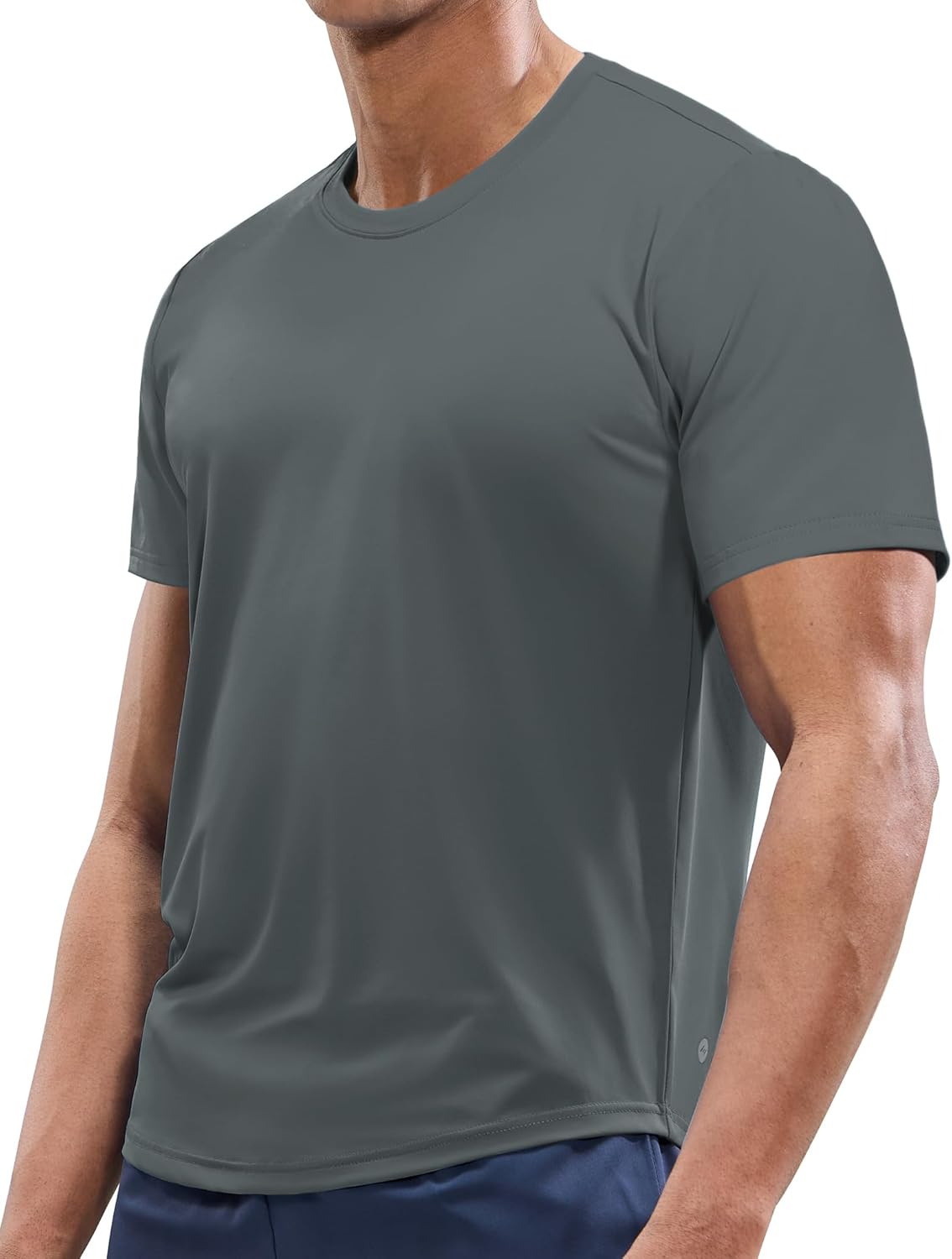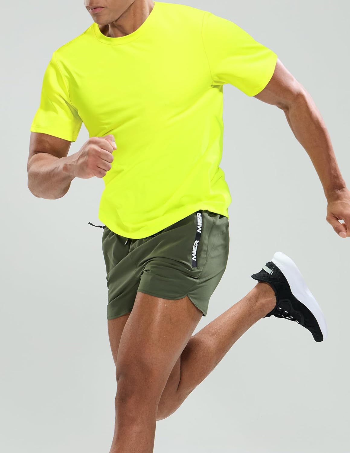 MIER Men’s Workout T Shirts Dry Fit Short Sleeve Athletic Gym Running Lightweight Performance Tee Tops, Polyester, UPF 50+