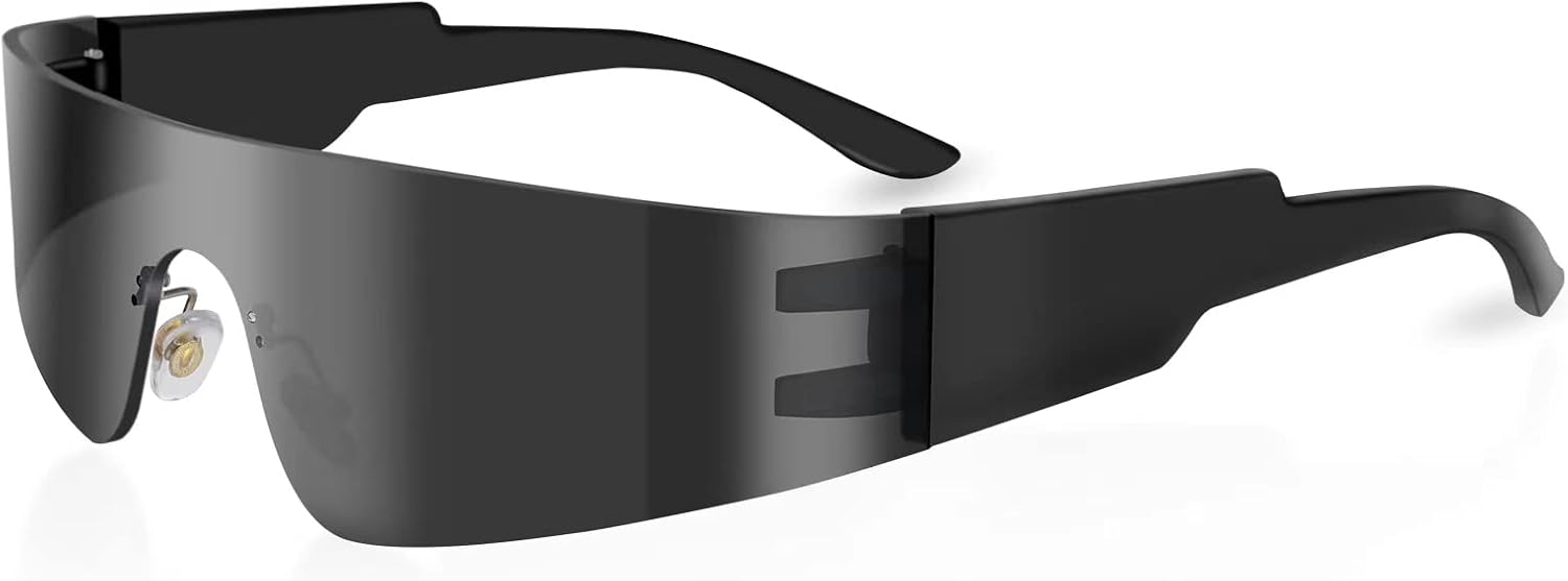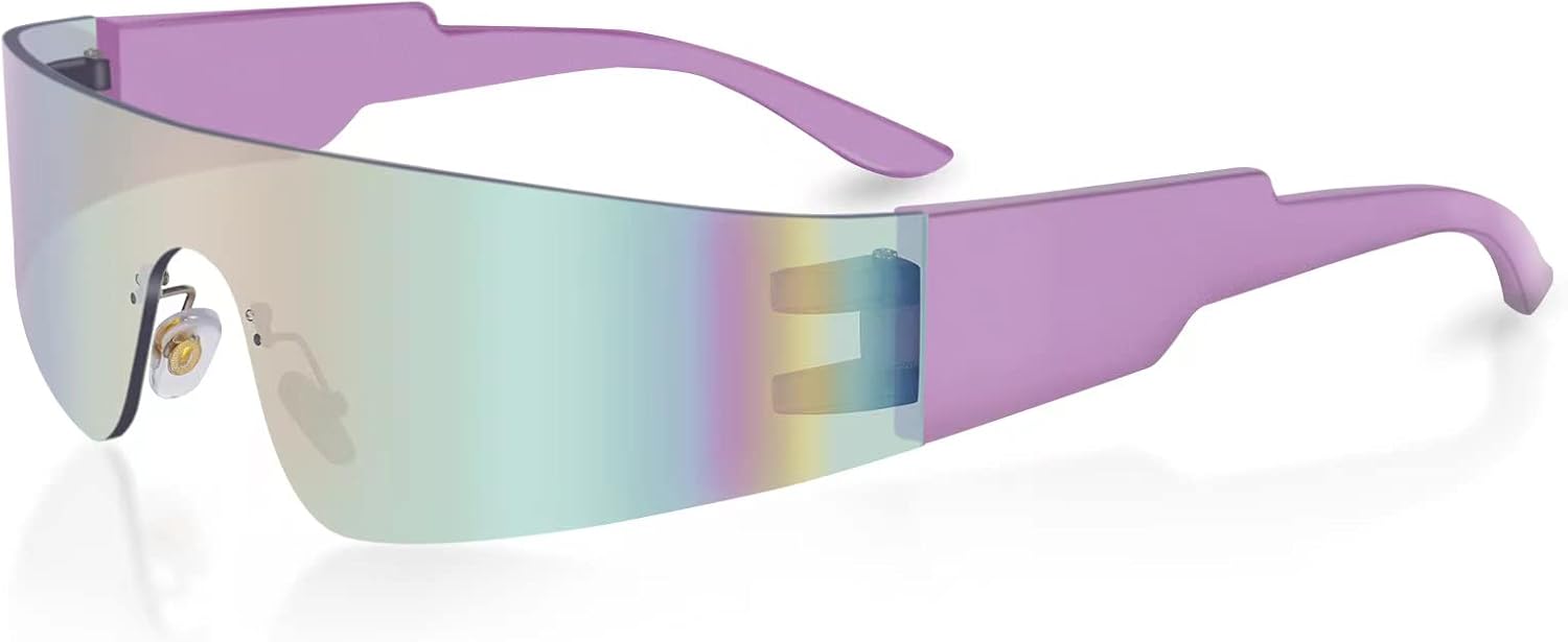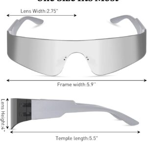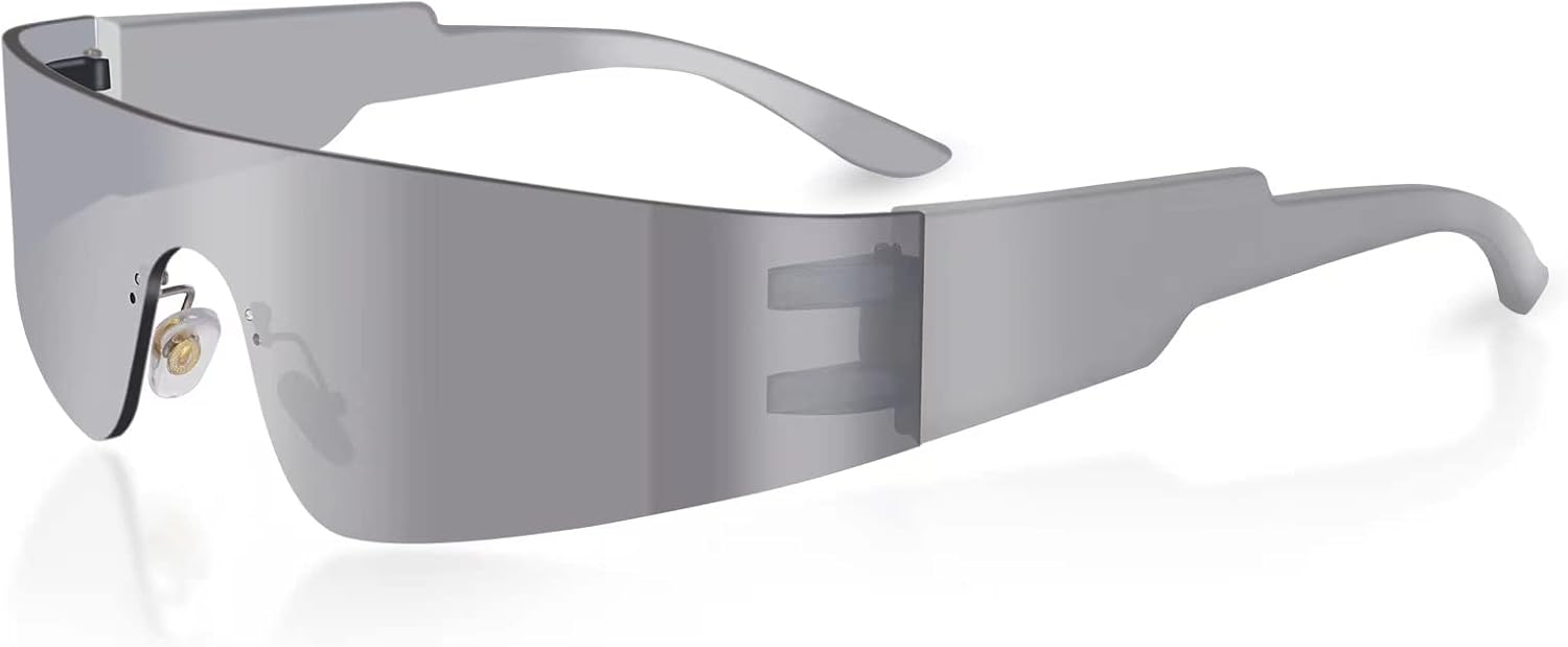 milramtob Futuristic Wrap Around Fashion Sunglasses Y2K Silver Trendy Rimless…