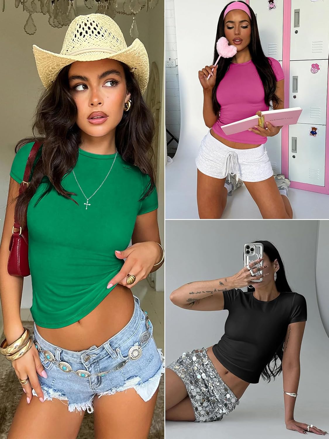 - Stylish Wearing: This basic crop top a must-have for summer 2024, perfect wear with shorts, jeans,skirt,yoga pants or cargo pants for a fashion y2k look.