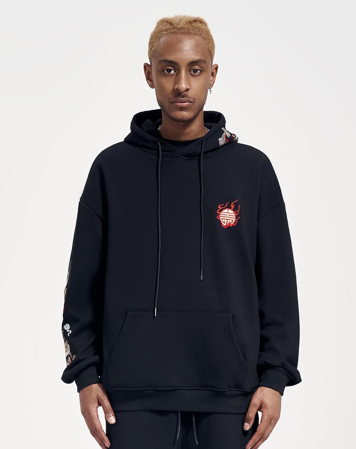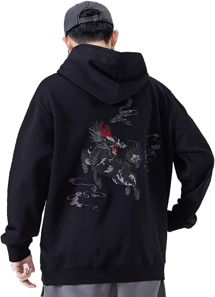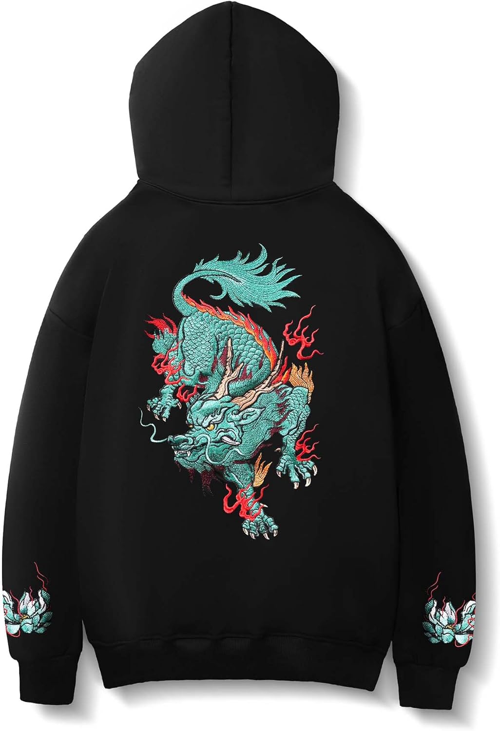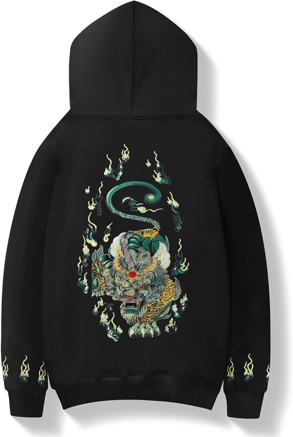 Niepce Inc Streetwear Men’s Dragon Embroidered Heavyweight Graphic Hoodies