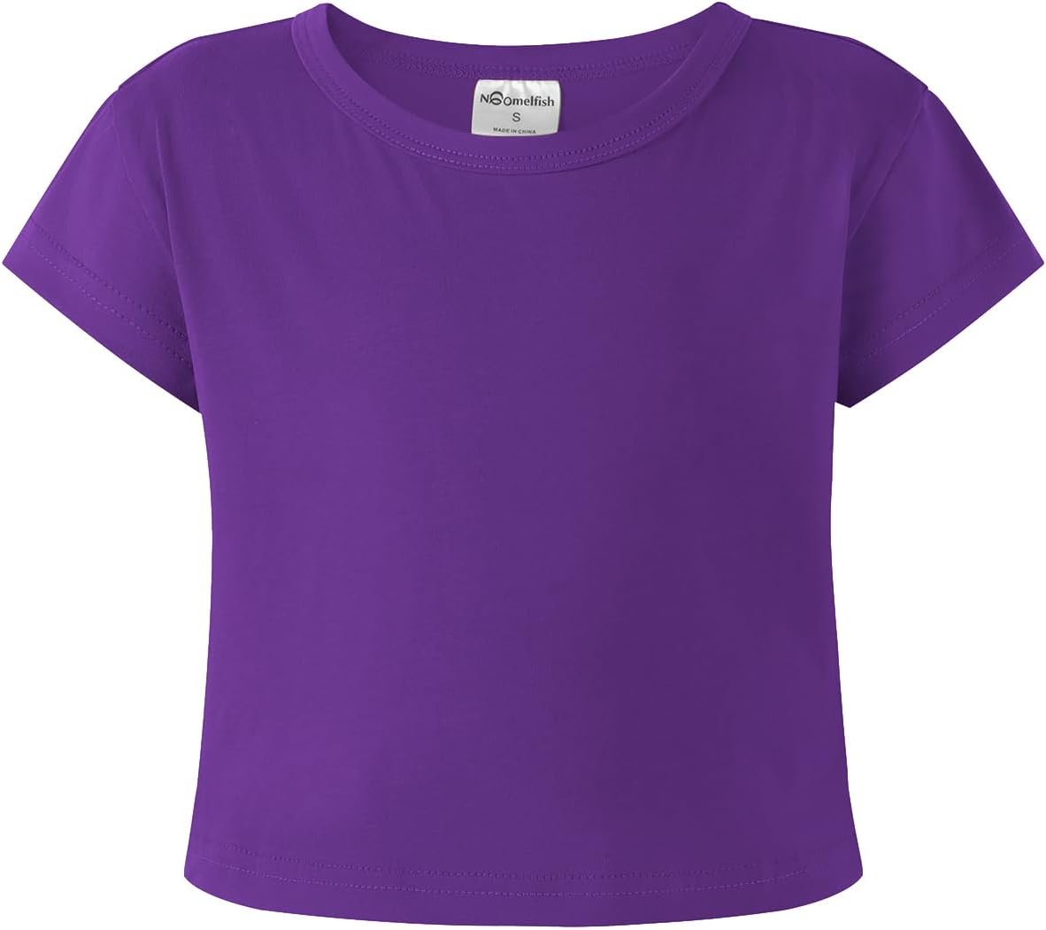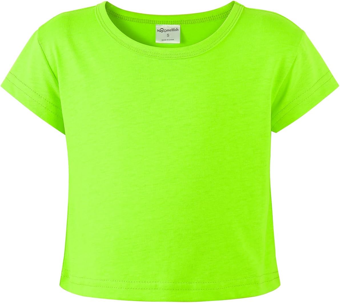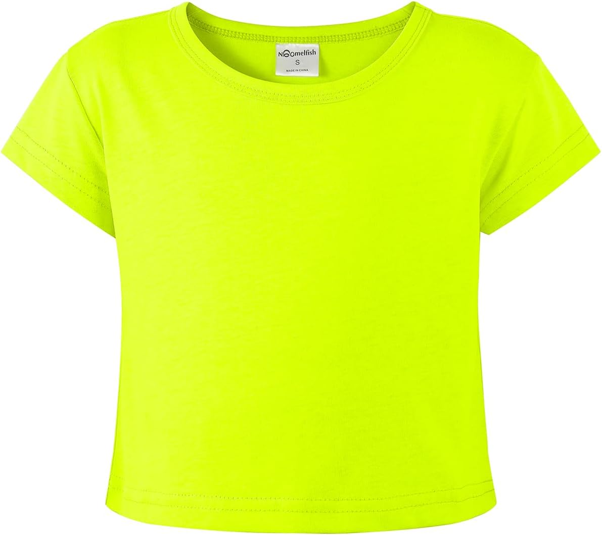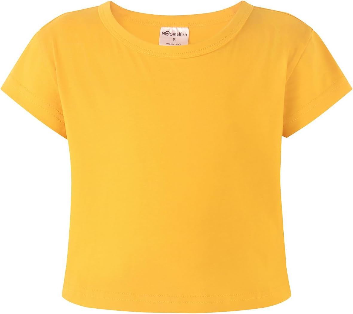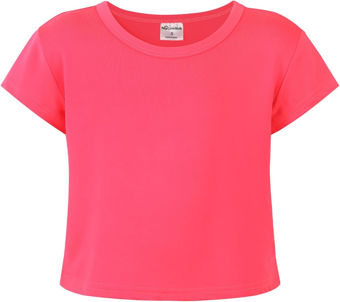 Noomelfish Girls Short Sleeve Crop Tops Kids Summer Dance Cropped T-Shirts (5-14 Years)