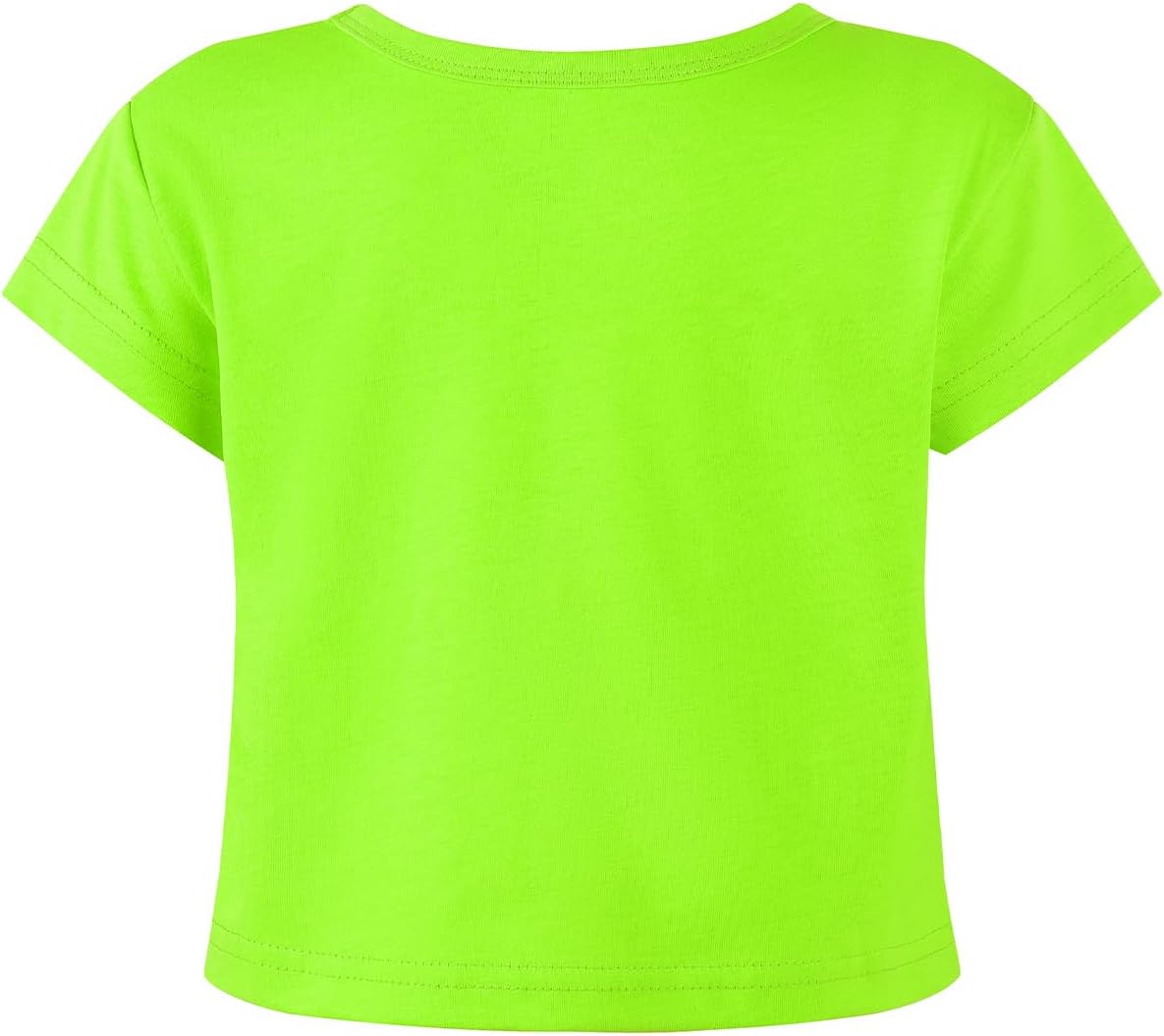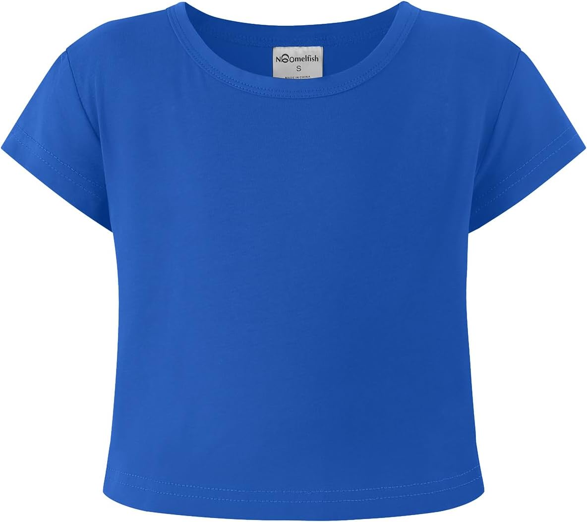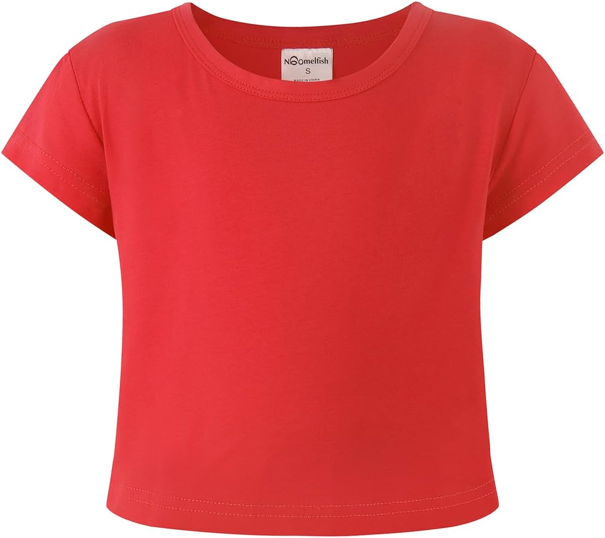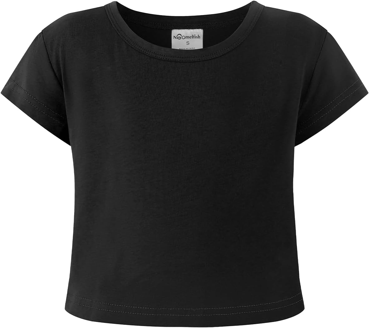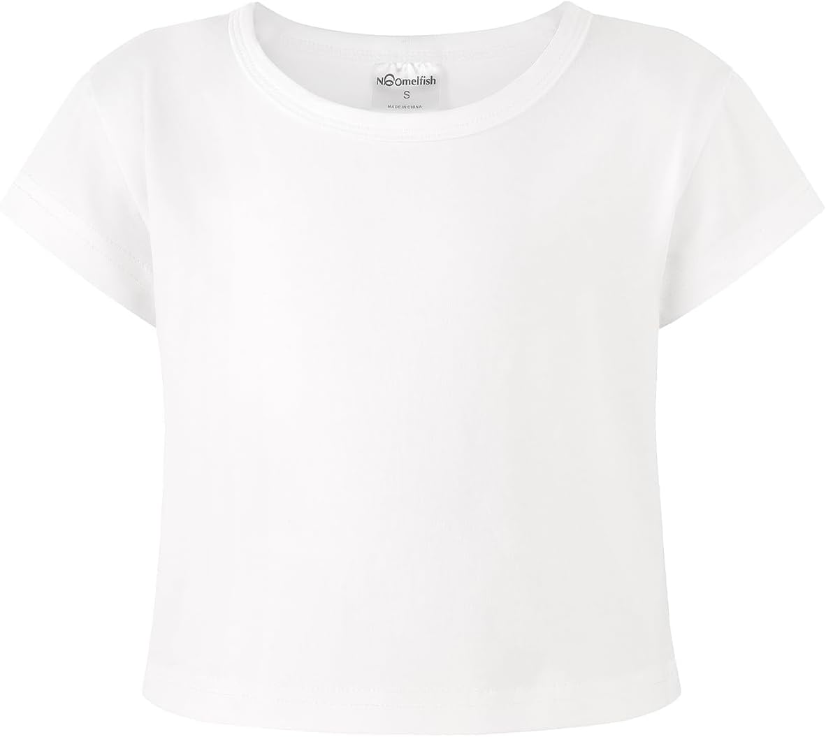 Noomelfish Girls Short Sleeve Crop Tops Kids Summer Dance Cropped T-Shirts (5-14 Years)