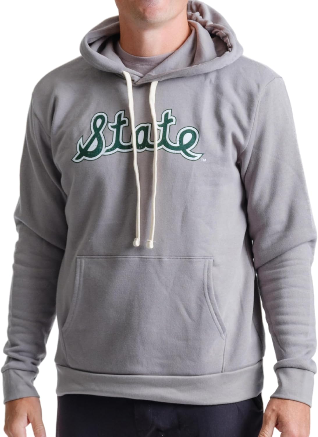 Our hoodies are a cotton and polyester blend heavy enough to keep you warm but light enough that you won't be sweating. Ultimate comfort while cheering on Michigan State University.