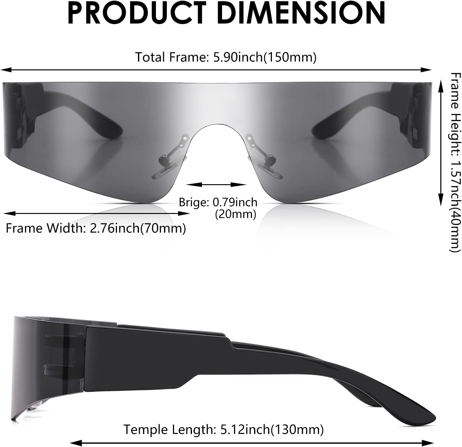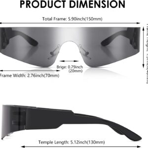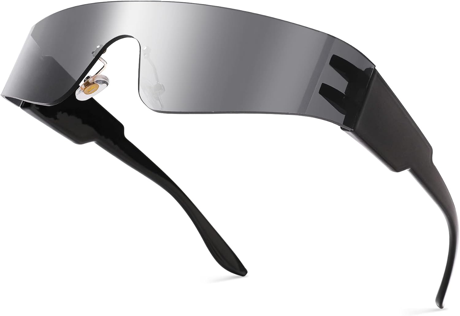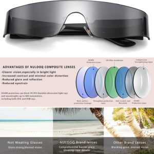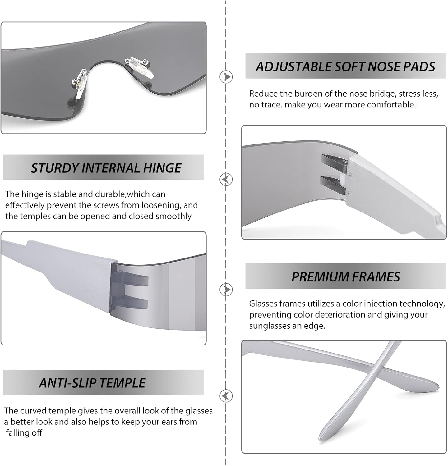NULOOQ Y2K Rimless Futuristic Wrap Around Sunglasses Women Men, Trendy Cyberpunk Visor Sunglasses Monoblock Cyclops Shades