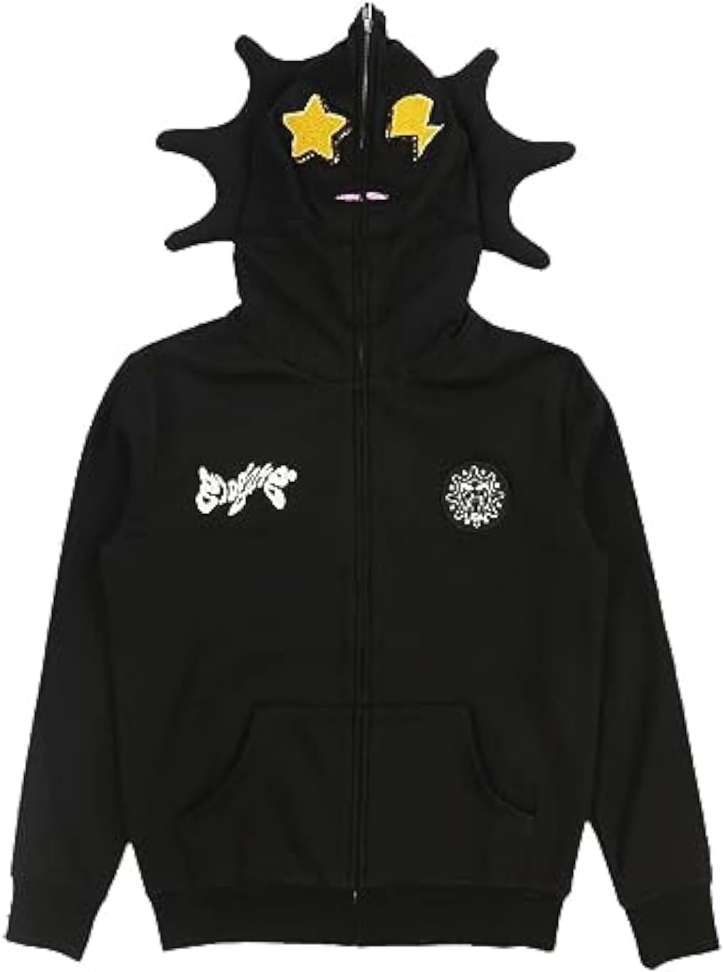 Trendy Y2K Style: Step up your fashion game with this fun multi angle full zip up hoodie for men and women, inspired by retro lazy style and featuring an over face graphic design.