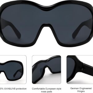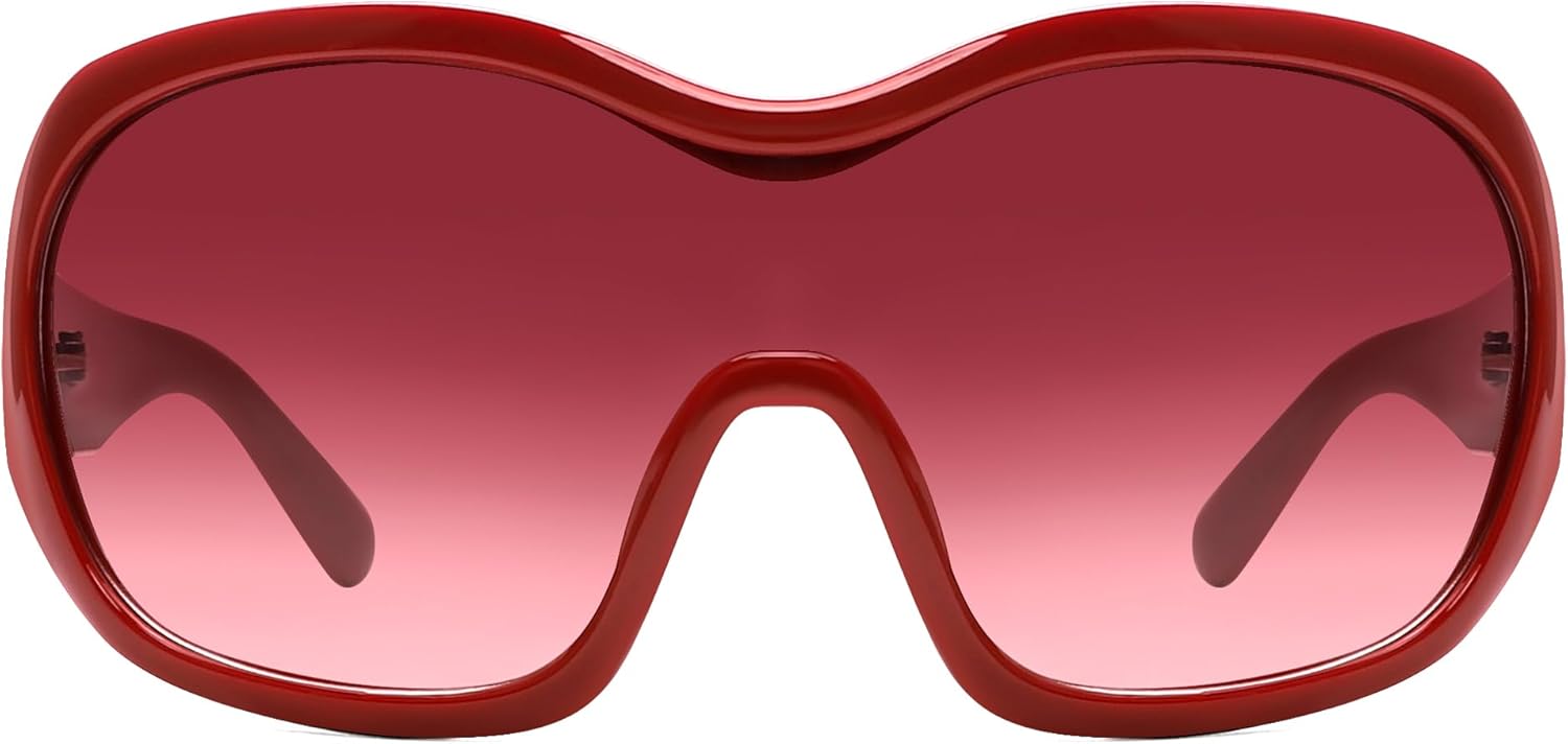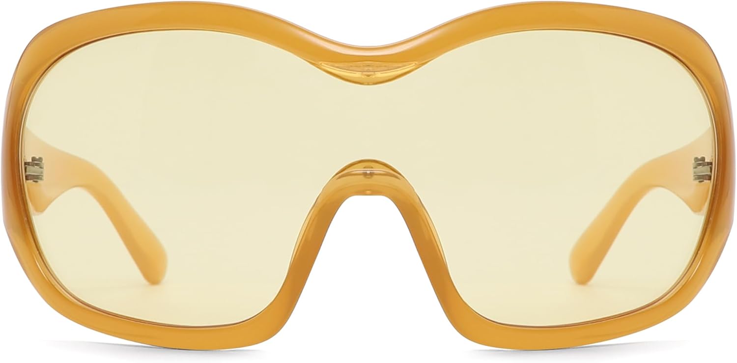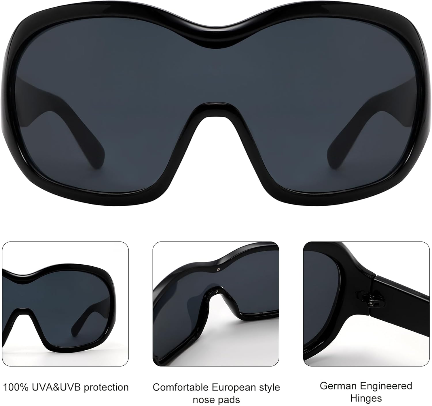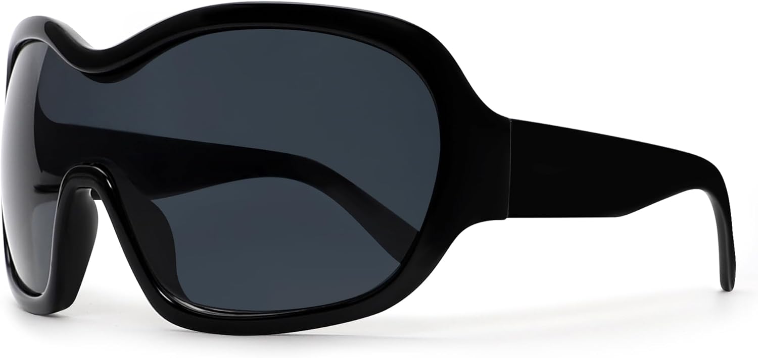 Oversized Trendy Wrap Around Sunglasses for Women Men – Cool Concert shades 2000s Retro Round Big Shield Glasses