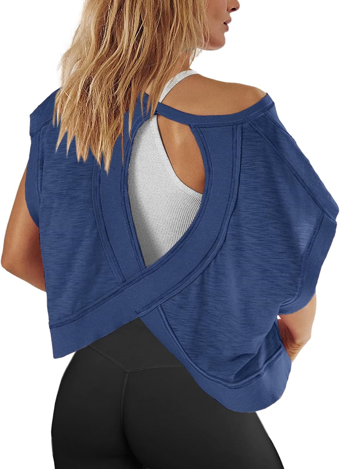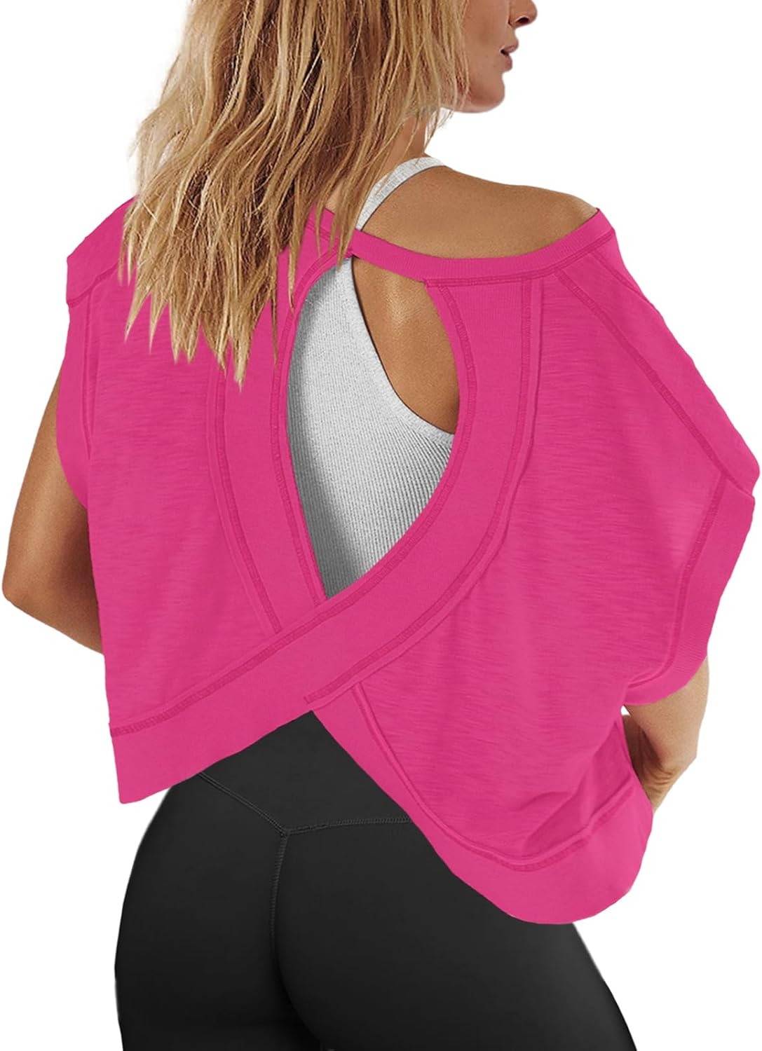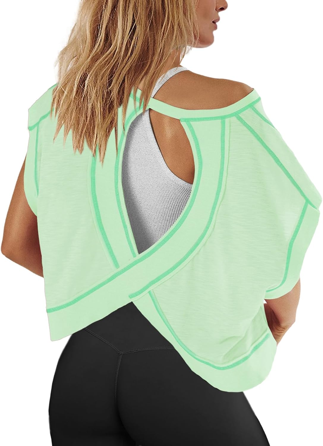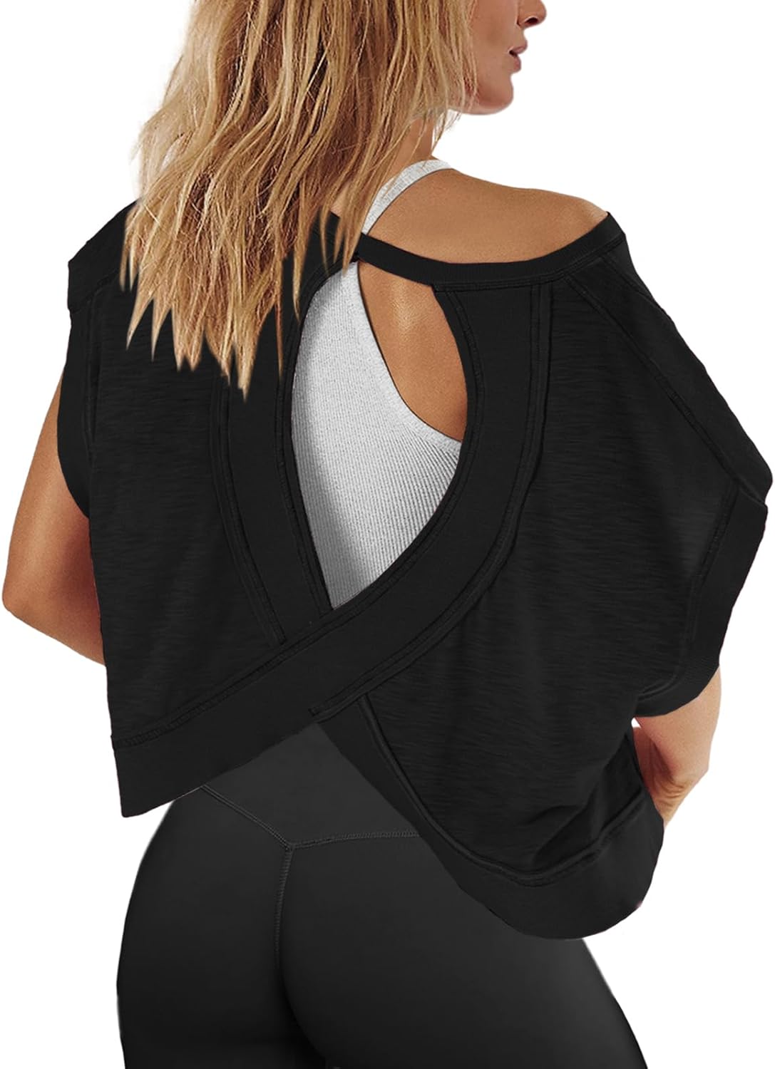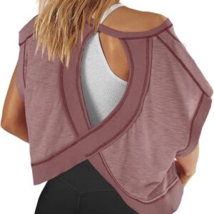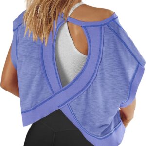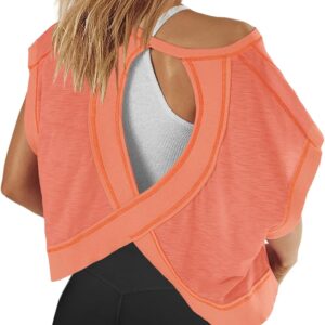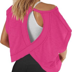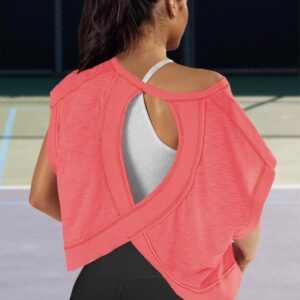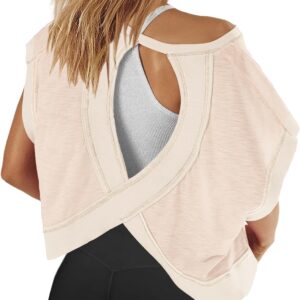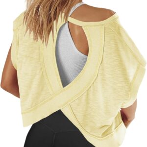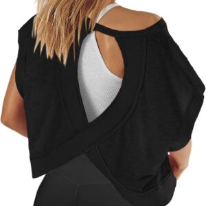 Panadila Womens Open Back Workout Top Oversized Workout T Shirts Backless Athletic Shirt Short Sleeve Baby Tee