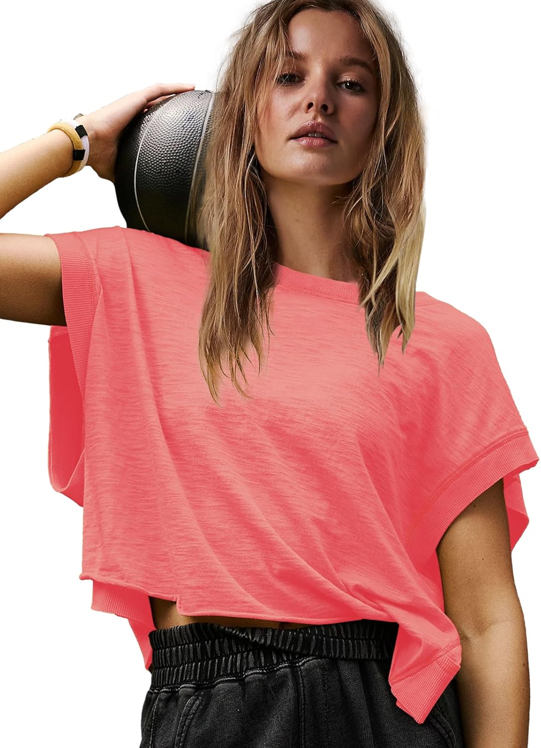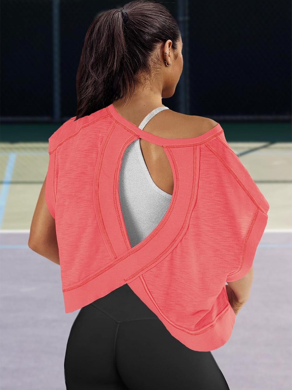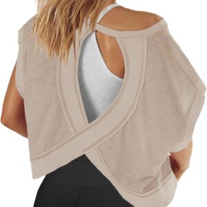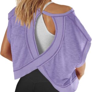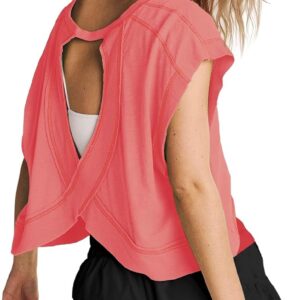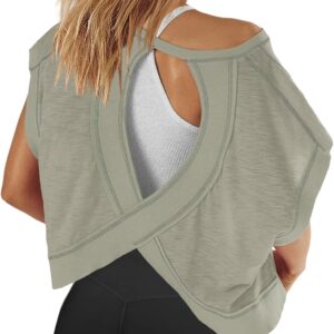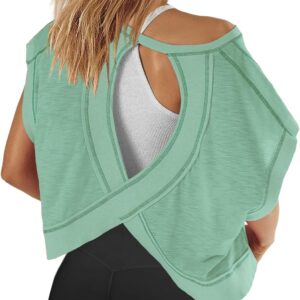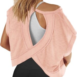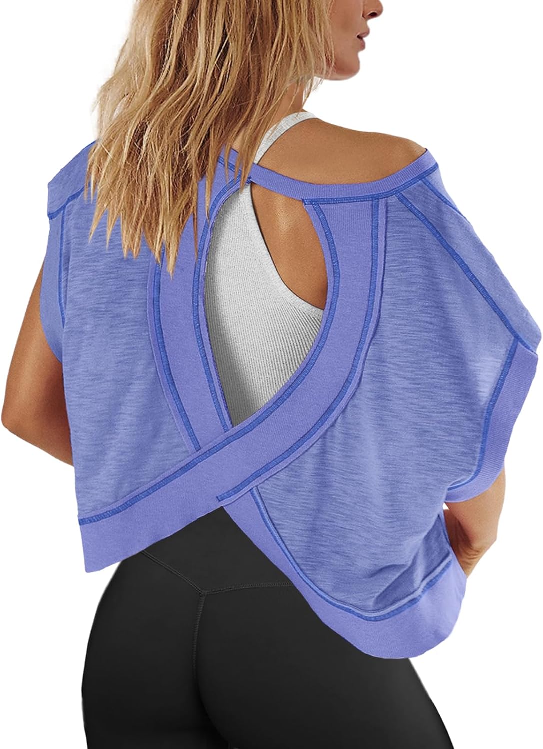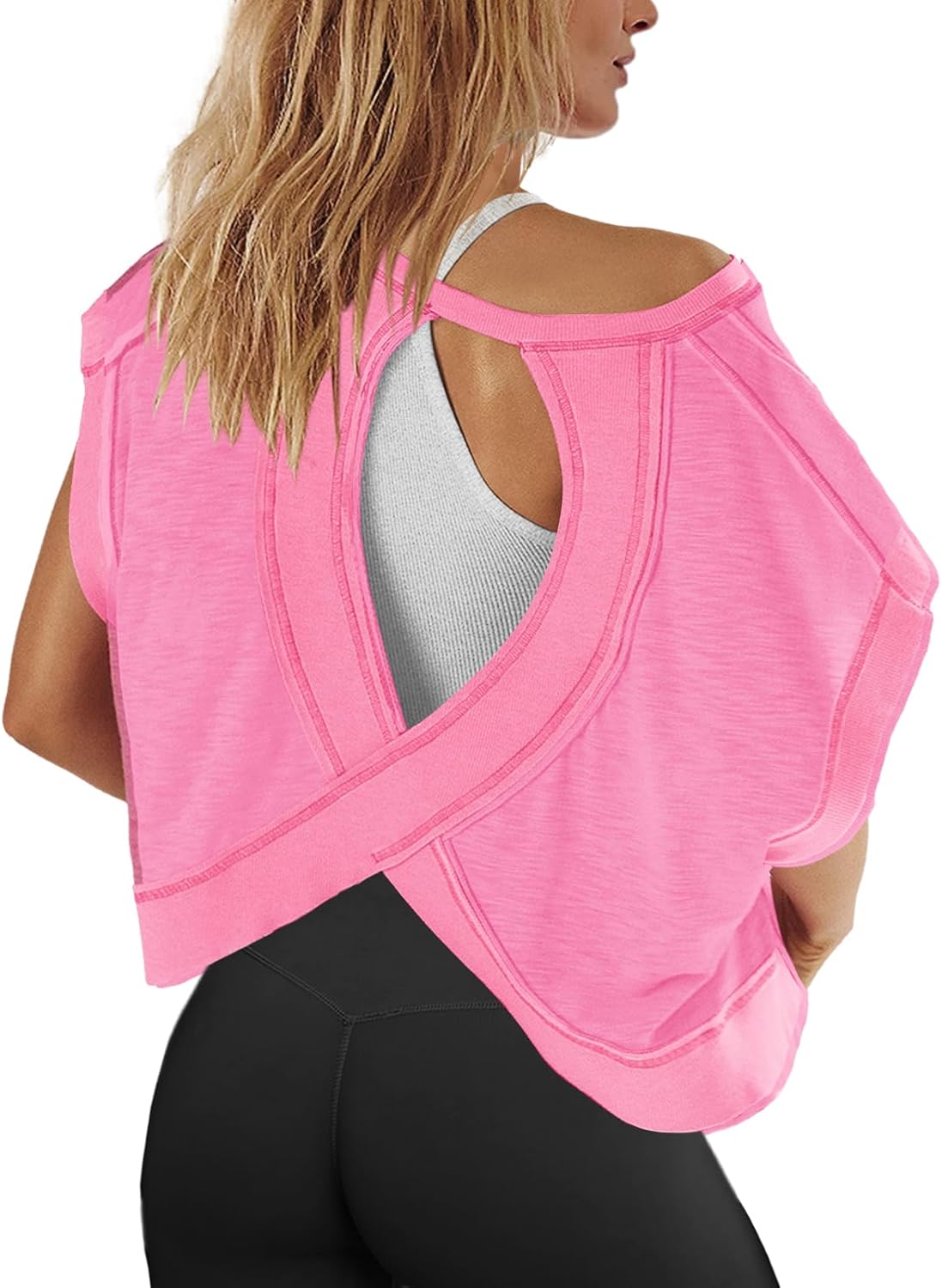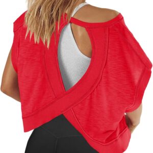 Panadila Womens Open Back Workout Top Oversized Workout T Shirts Backless Athletic Shirt Short Sleeve Baby Tee