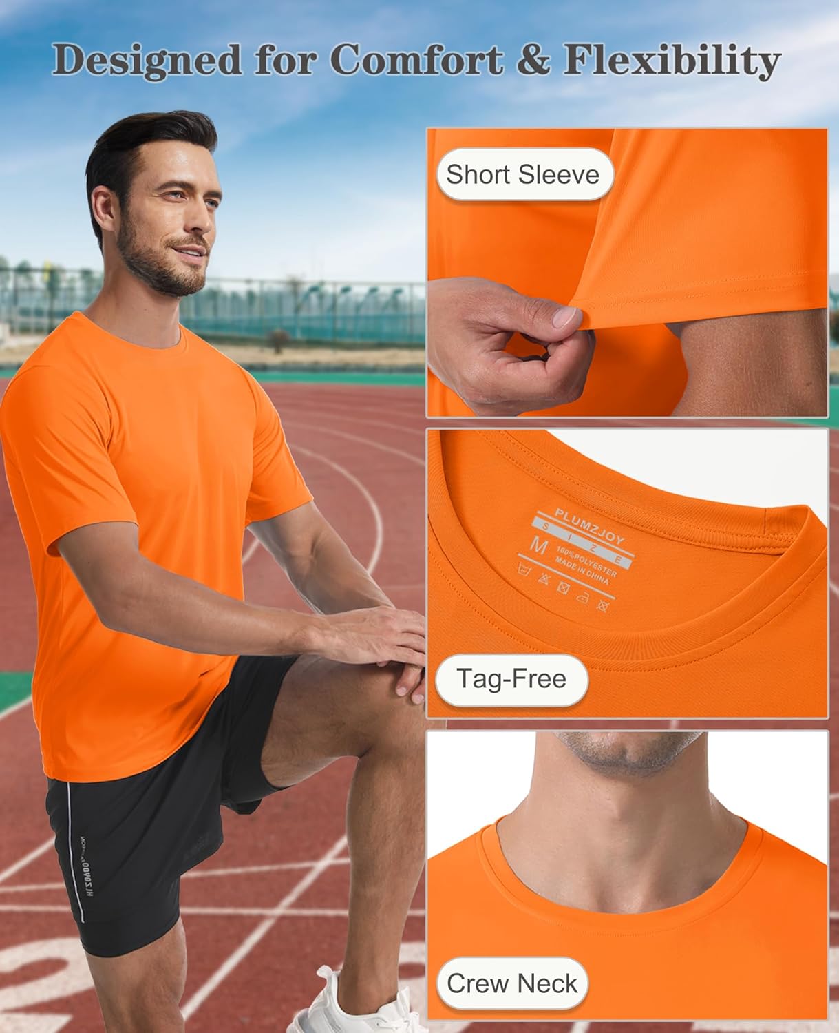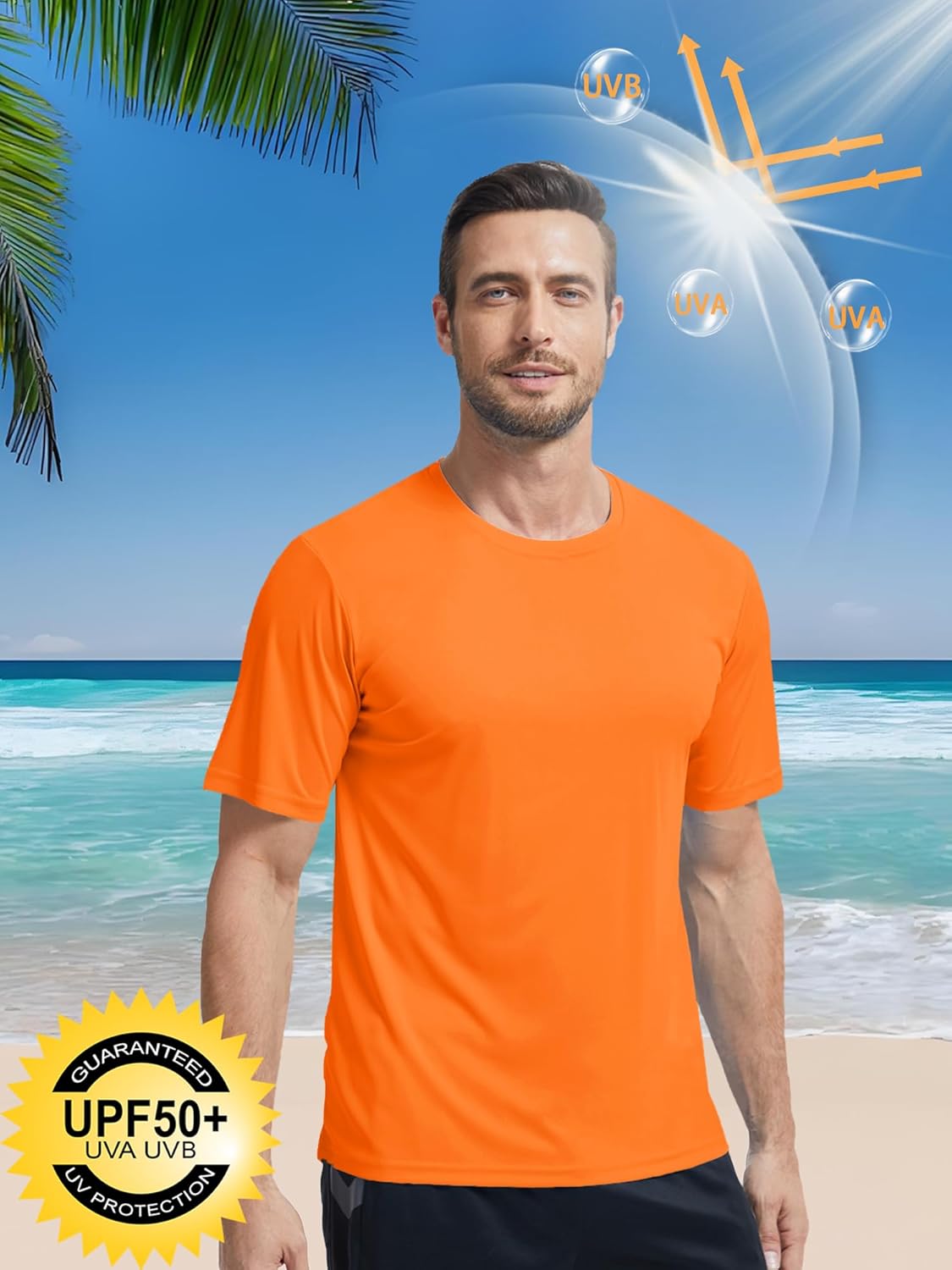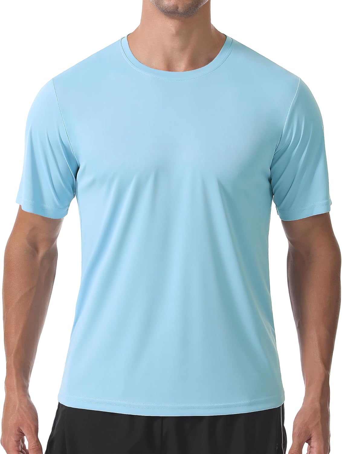 PLUMZJOY Men’s Short Sleeve T-Shirt UPF 50+ Quick Dry Rash Guard Athletic Running T Shirts UV Sun Protection Swim Water Shirt