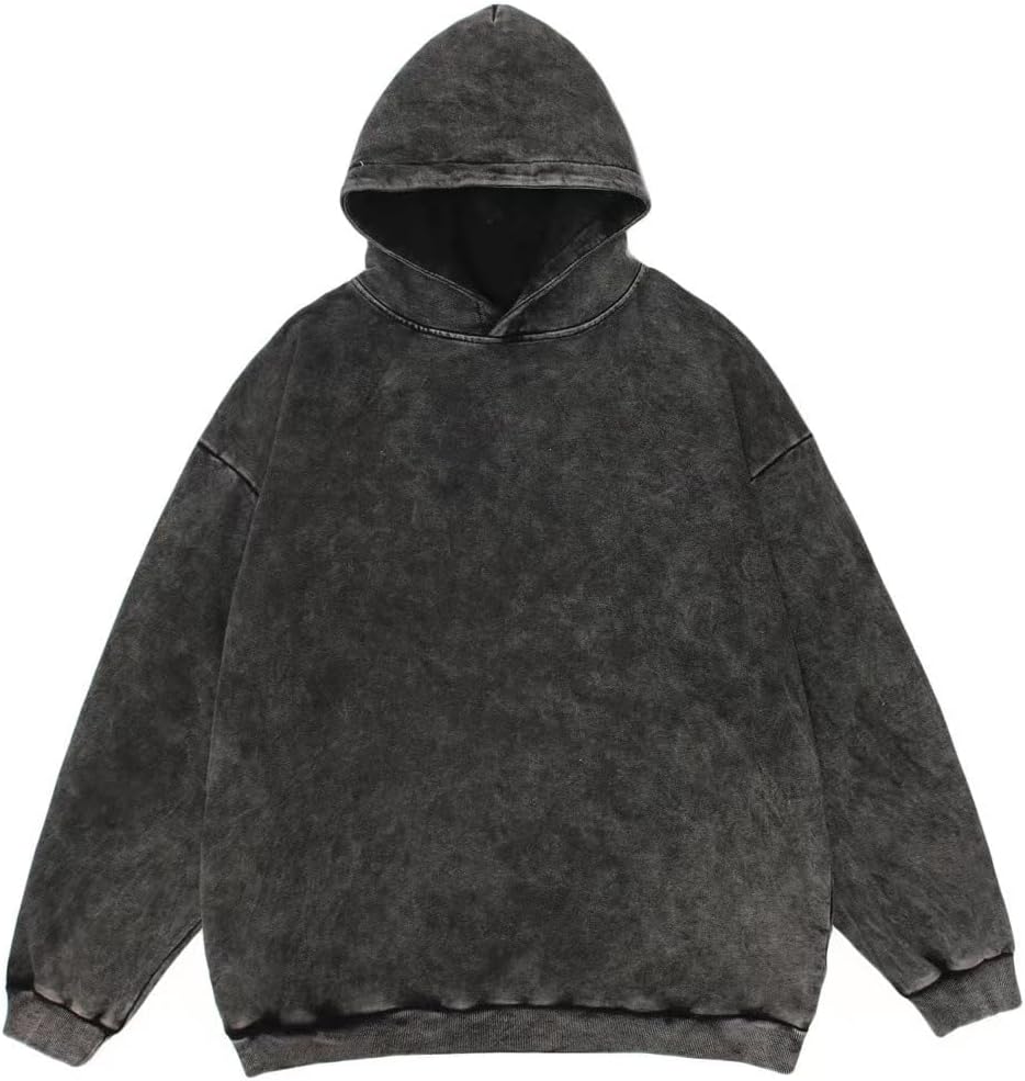 Pooyikoi Men and Women Vintage Hoodie Faded Sweatshirts Distressed Mineral Wash retro loose pullover Hoodie
