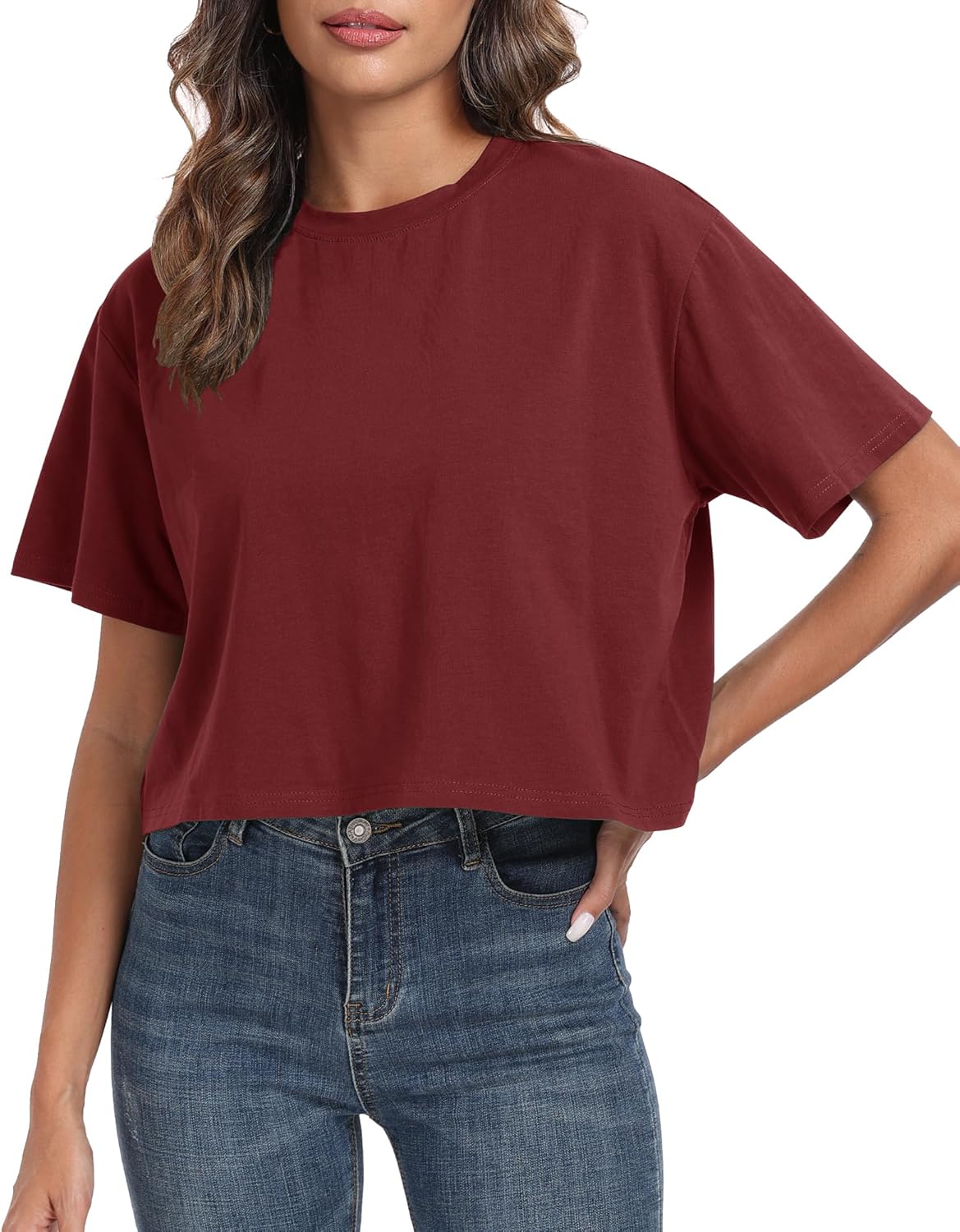![]() Boxy V Neck Short Sleeve Oversized Crop Tops