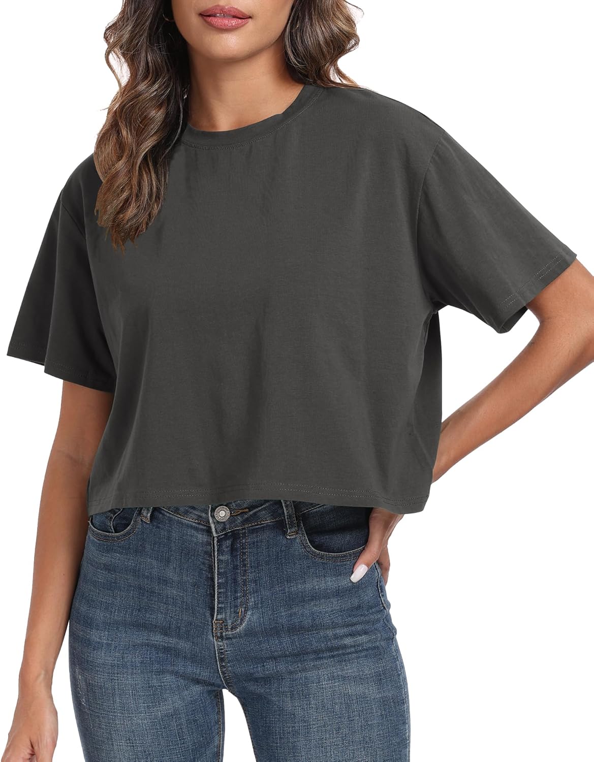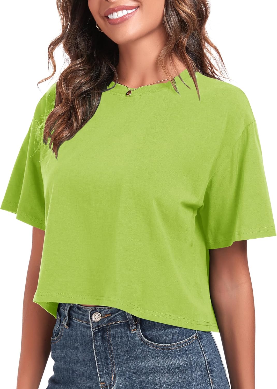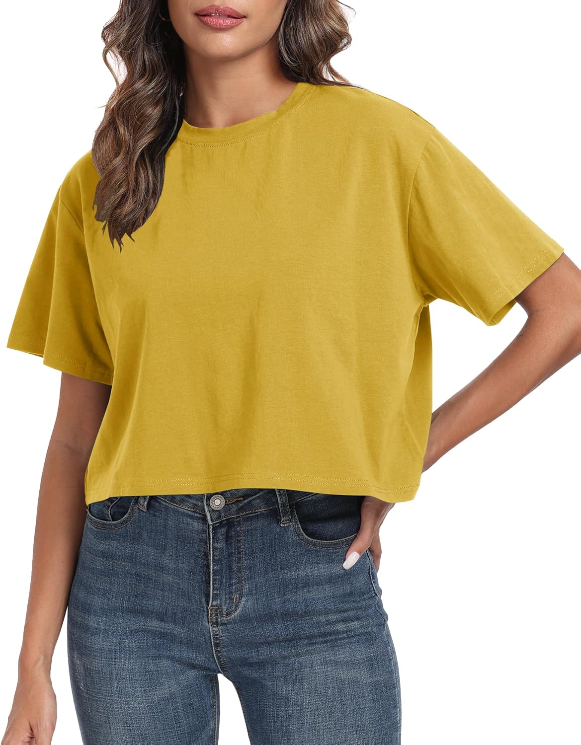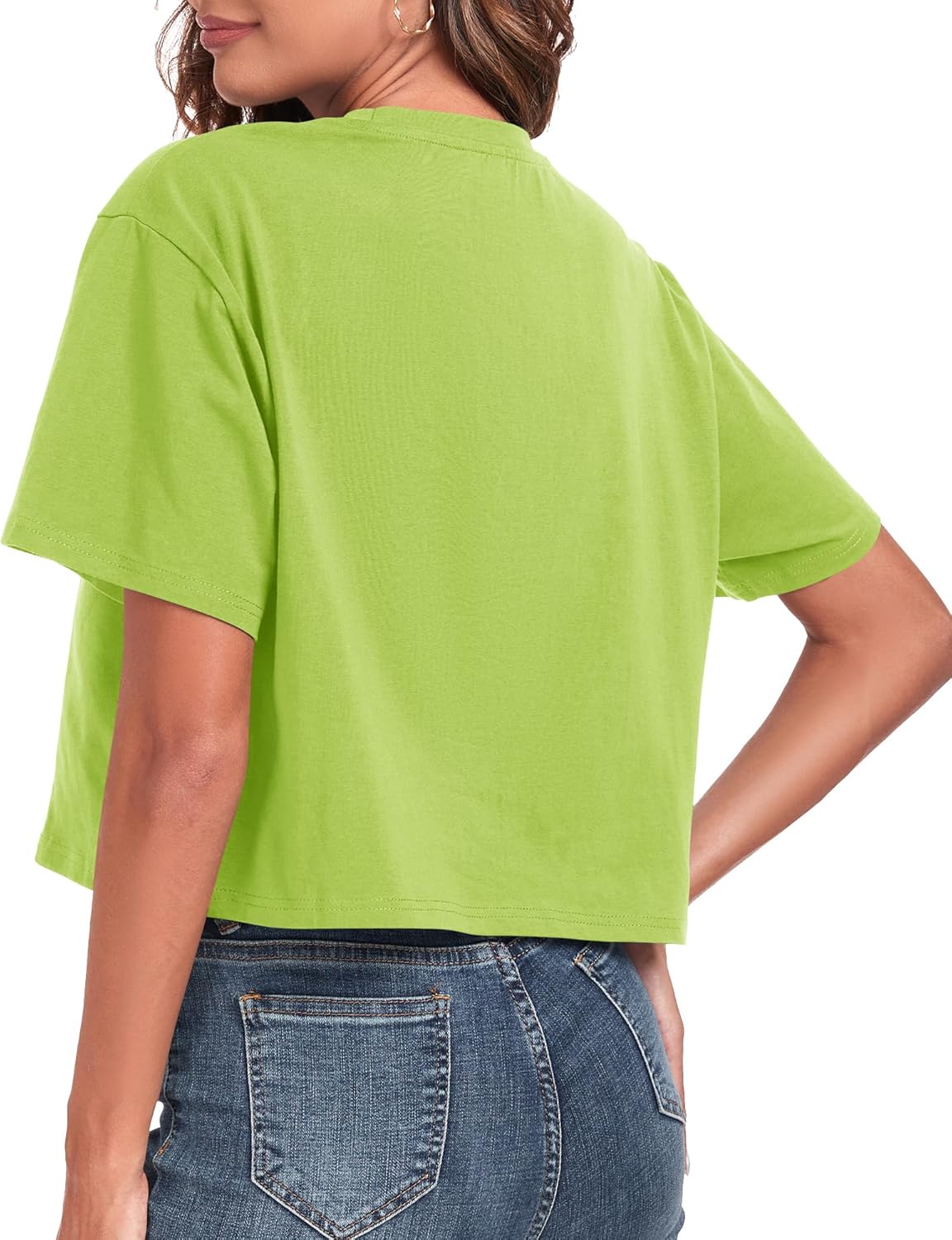 ![]() Boxy V Neck Short Sleeve Oversized Crop Tops