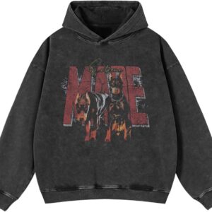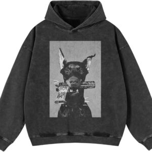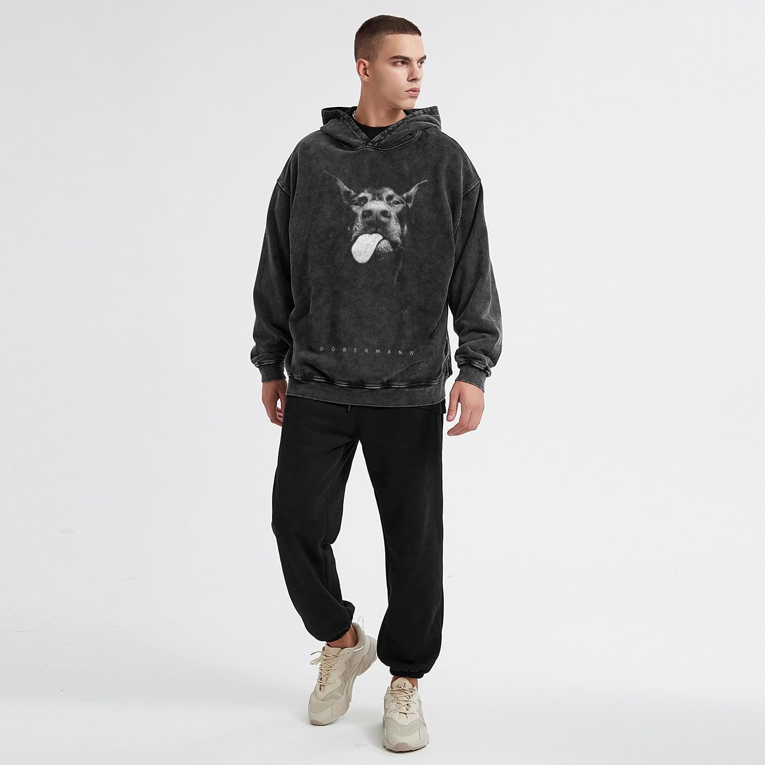 - Retro Vintage Washed Black Hoodie Sweatshirt Doberman Dog Funny Graphic