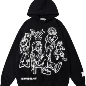- Hipster Hooded Pullover Creepy Shadow Graphic Hoodie