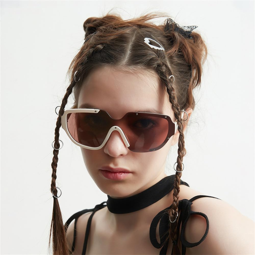 Rivet One Piece Sunglasses Women Men Futuristic Oversized Green Siamese Sun Glasses