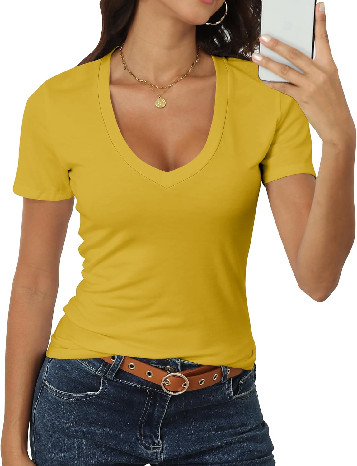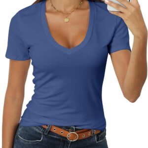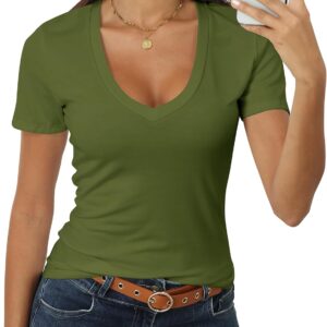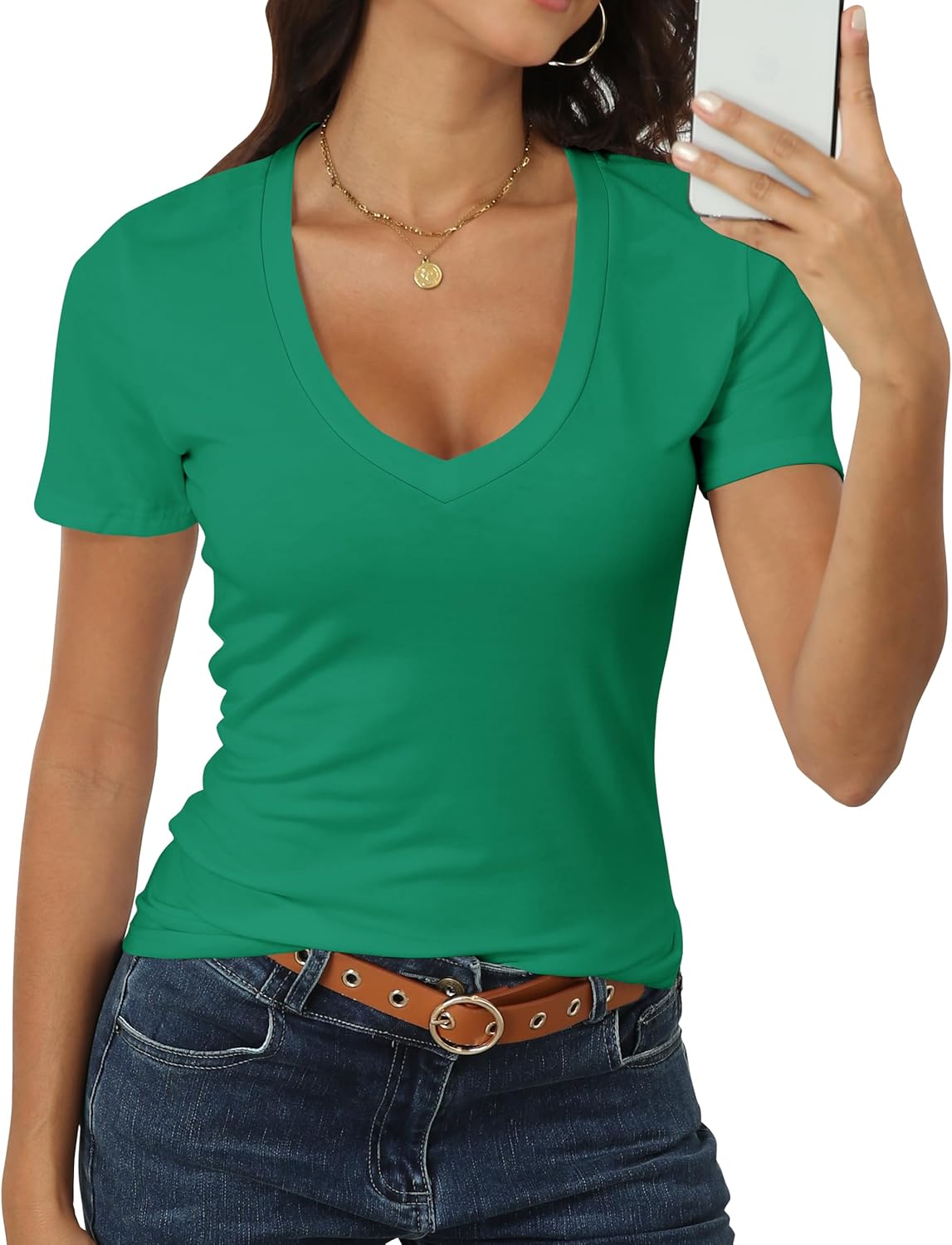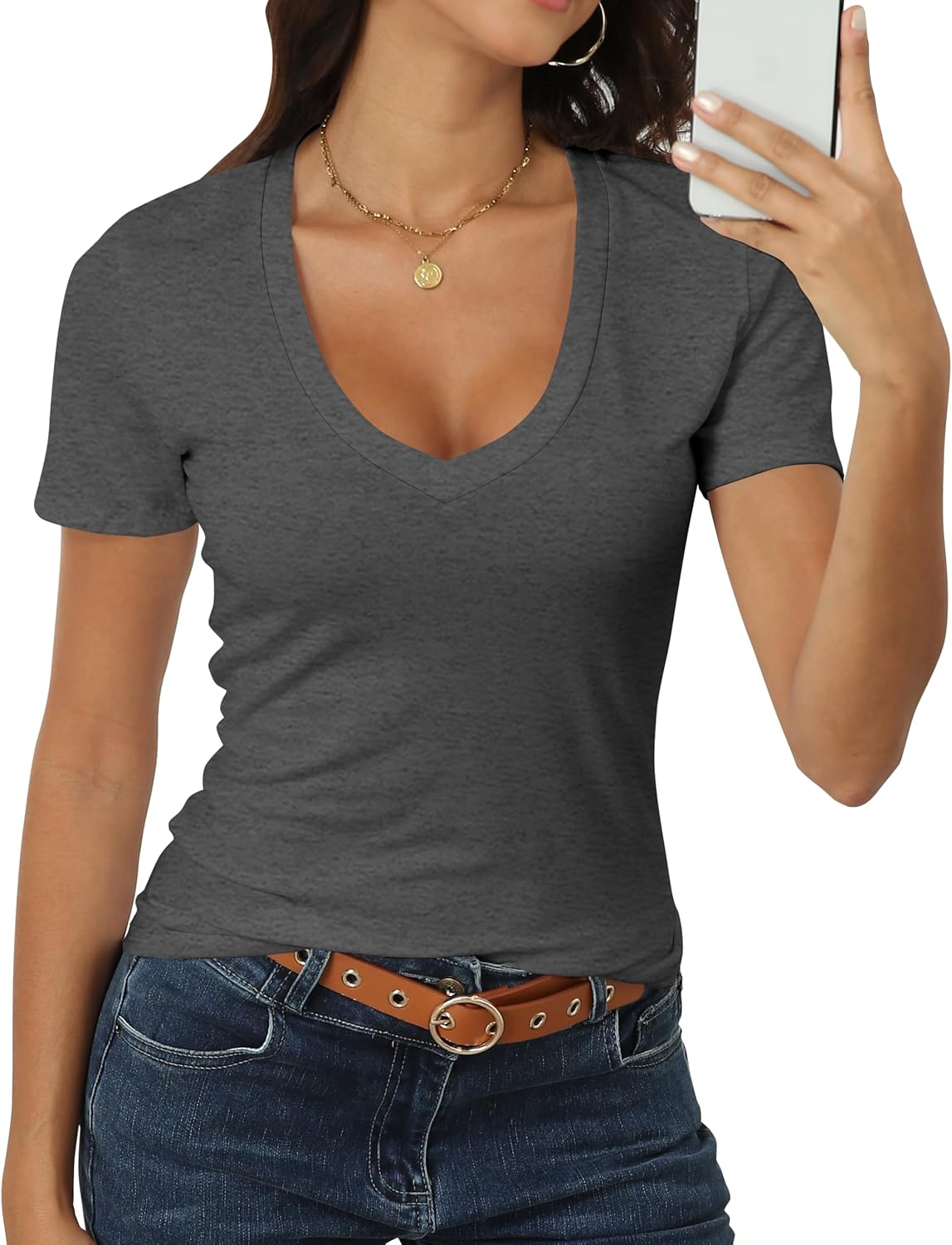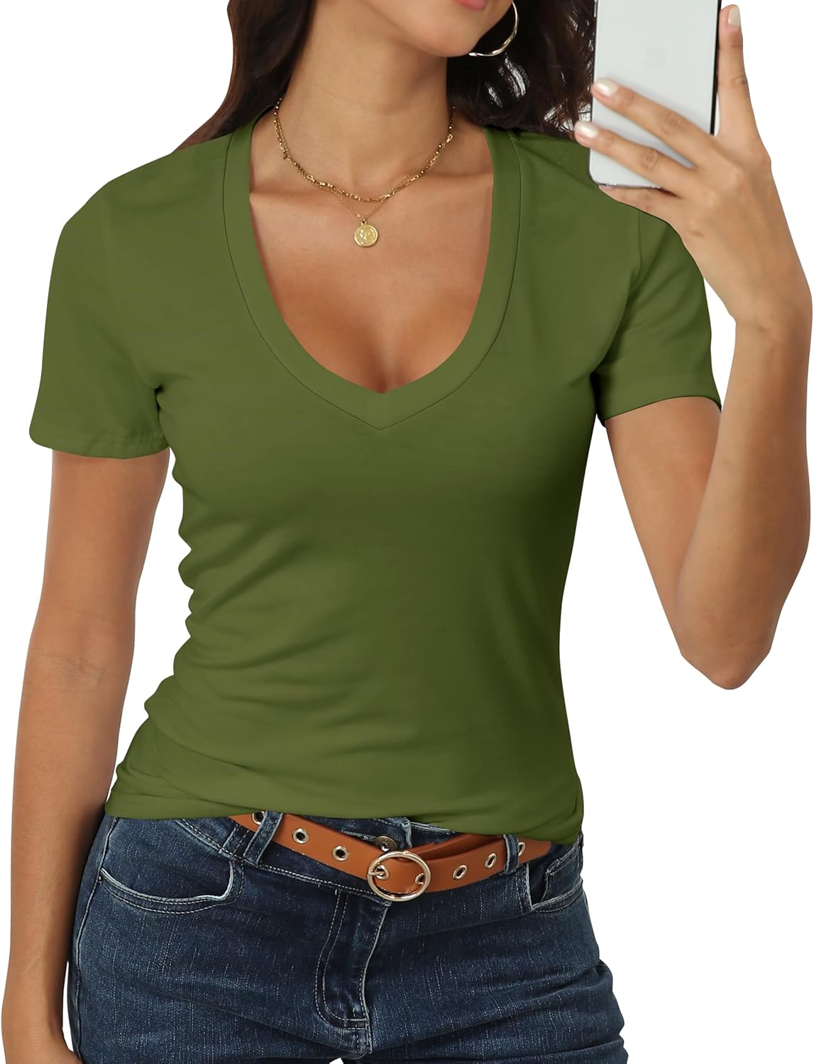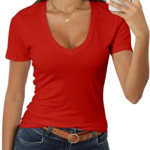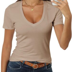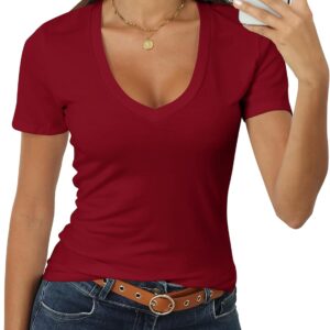 - Features: Sexy Plunging V Neck, Summer Tops for Women, Short Sleeve Fitted Shirt, Casual Basic Tee Shirts, Solid Color Shirts.