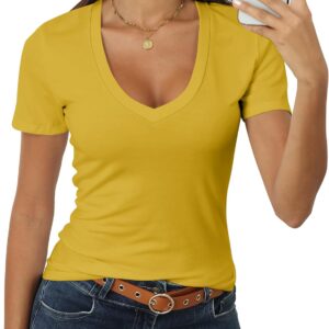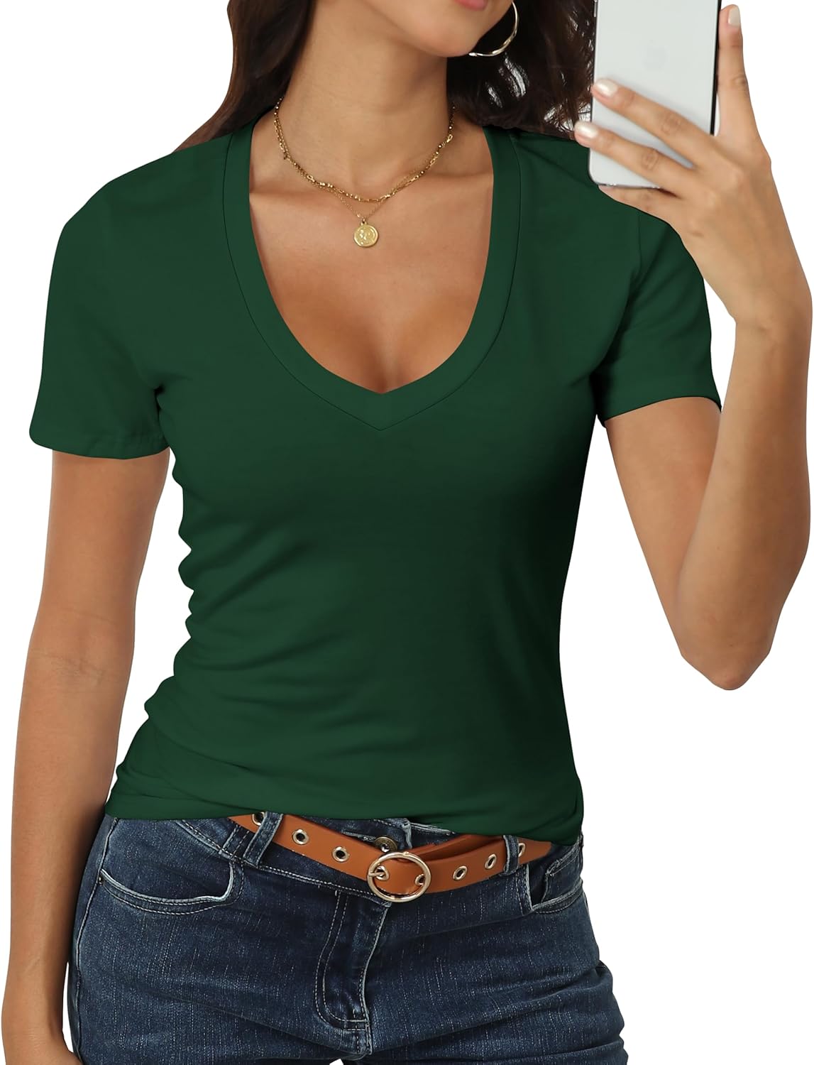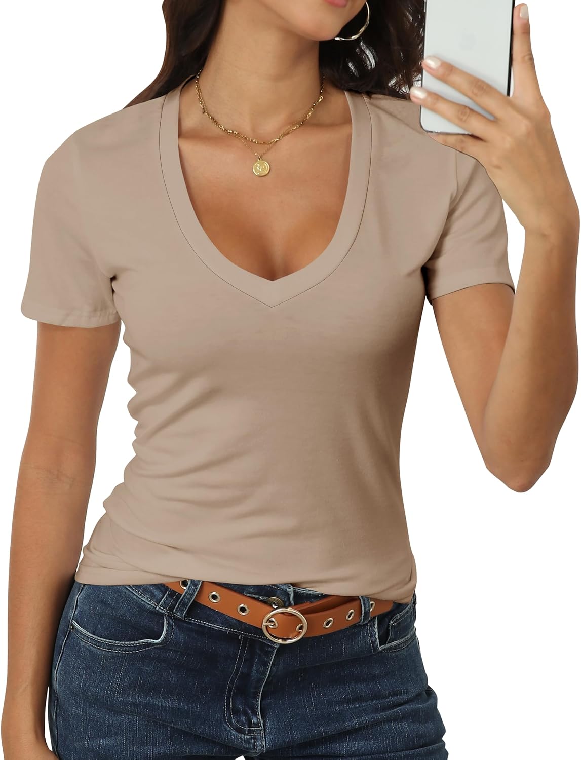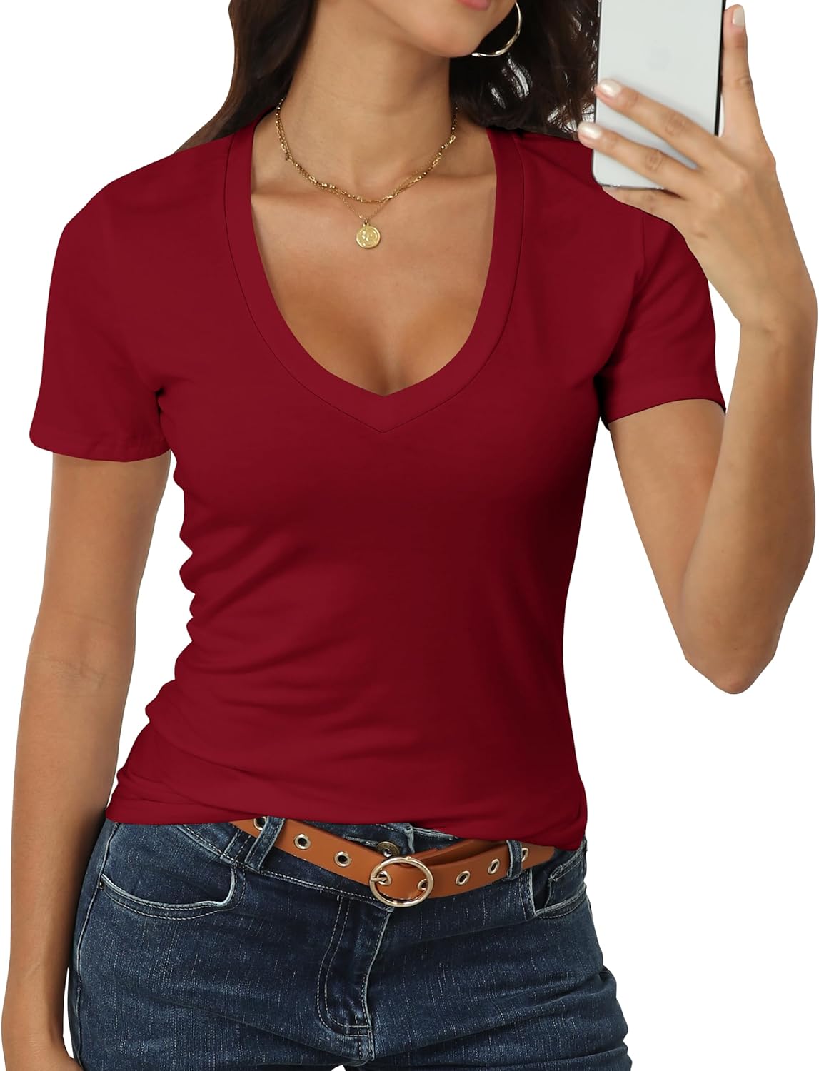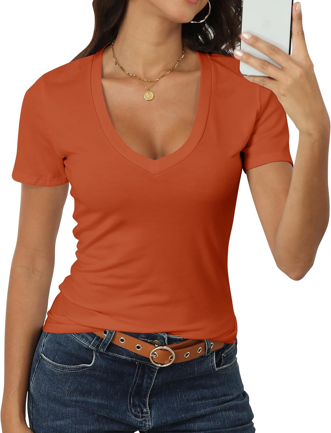- Features: Sexy Plunging V Neck, Summer Tops for Women, Short Sleeve Fitted Shirt, Casual Basic Tee Shirts, Solid Color Shirts.