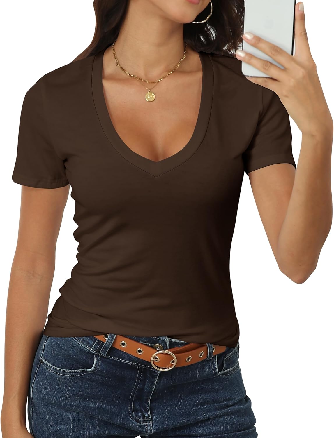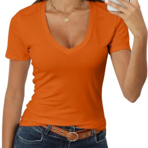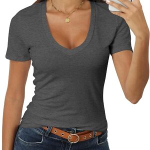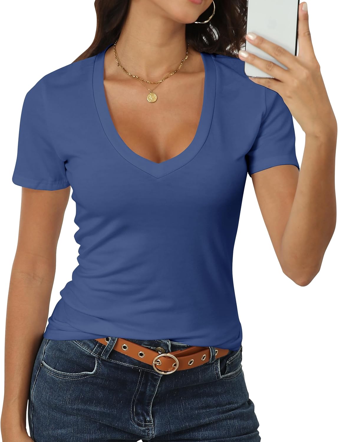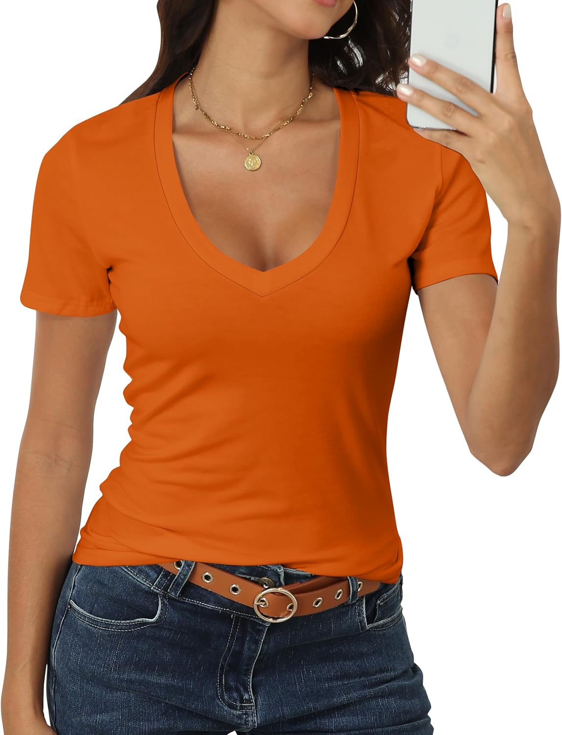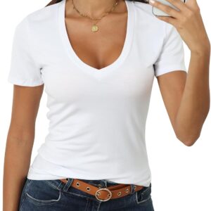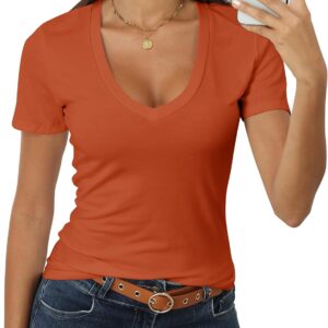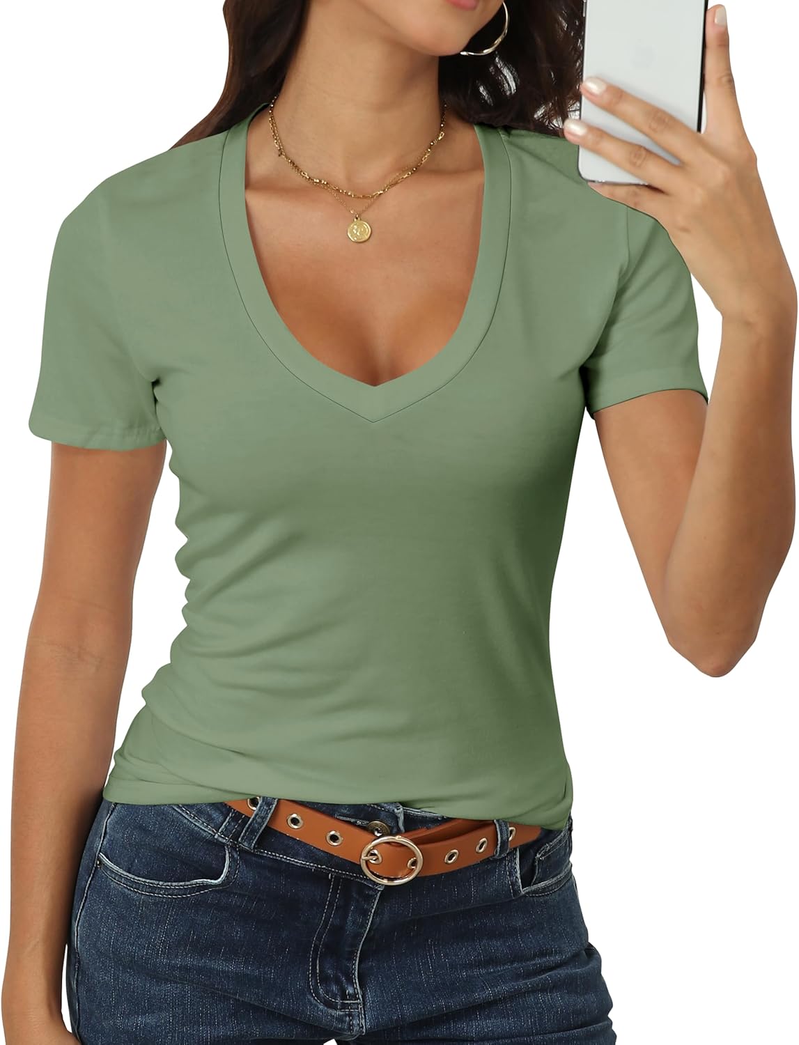 - Features: Sexy Plunging V Neck, Summer Tops for Women, Short Sleeve Fitted Shirt, Casual Basic Tee Shirts, Solid Color Shirts.