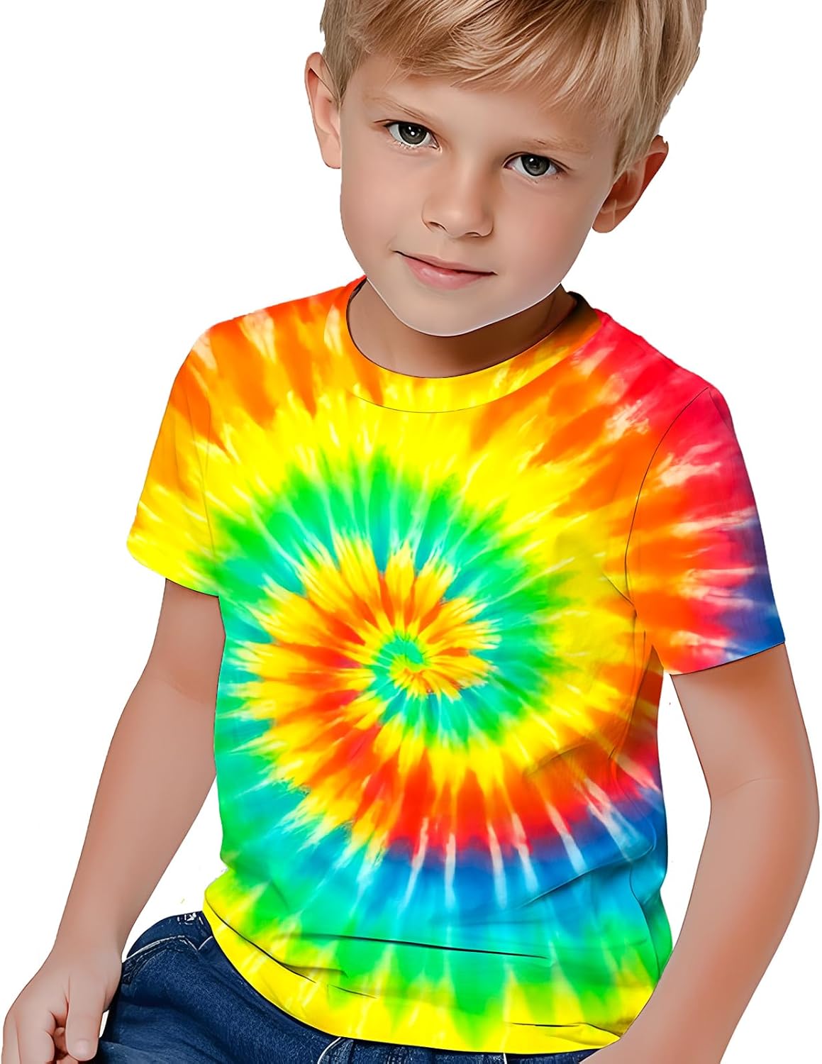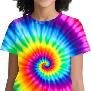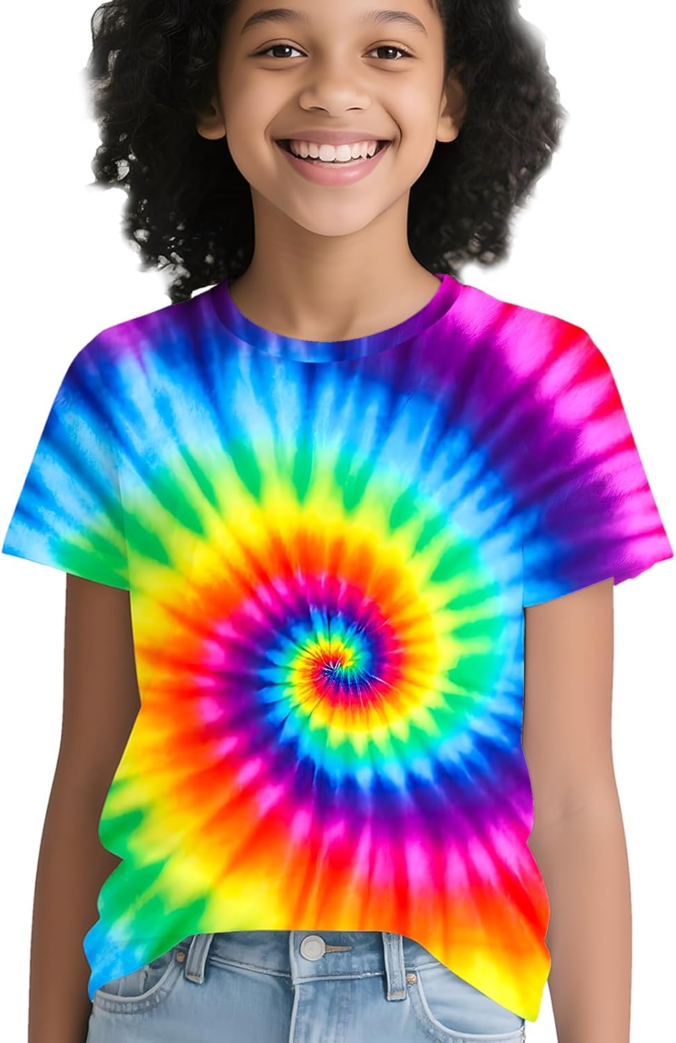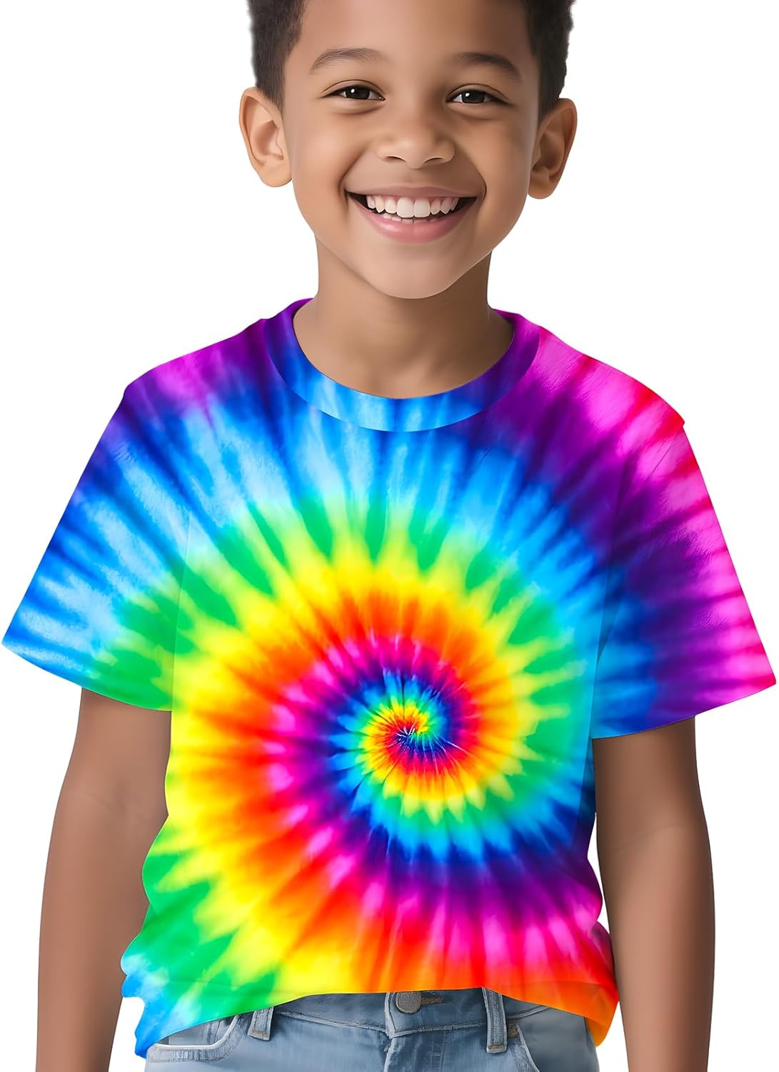 RPWZRCB Kids Tie Dye Shirts for Boys Girls Outfit Clothes Children Hippies Short Sleeve Tees Tie-Dye T Shirt 6-16 Years
