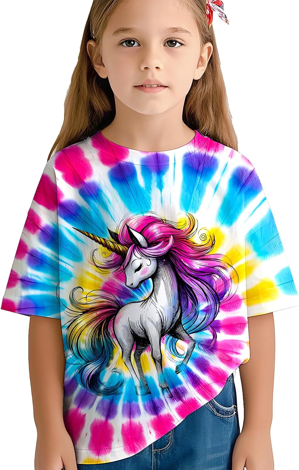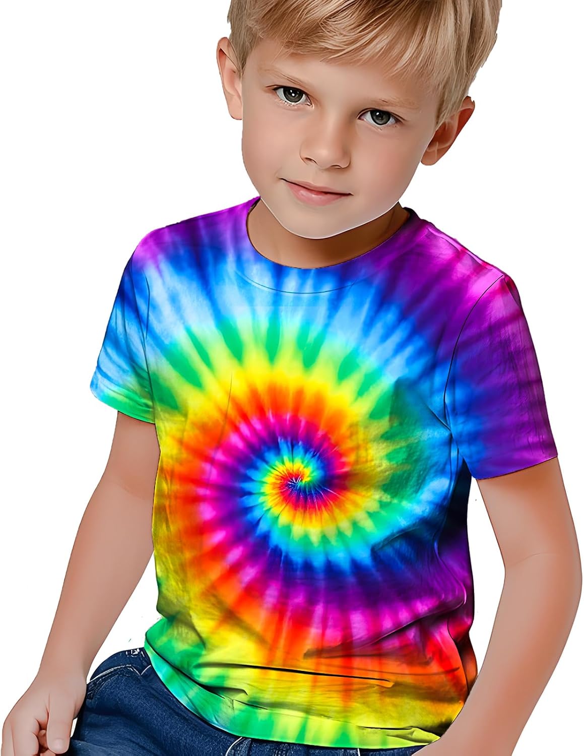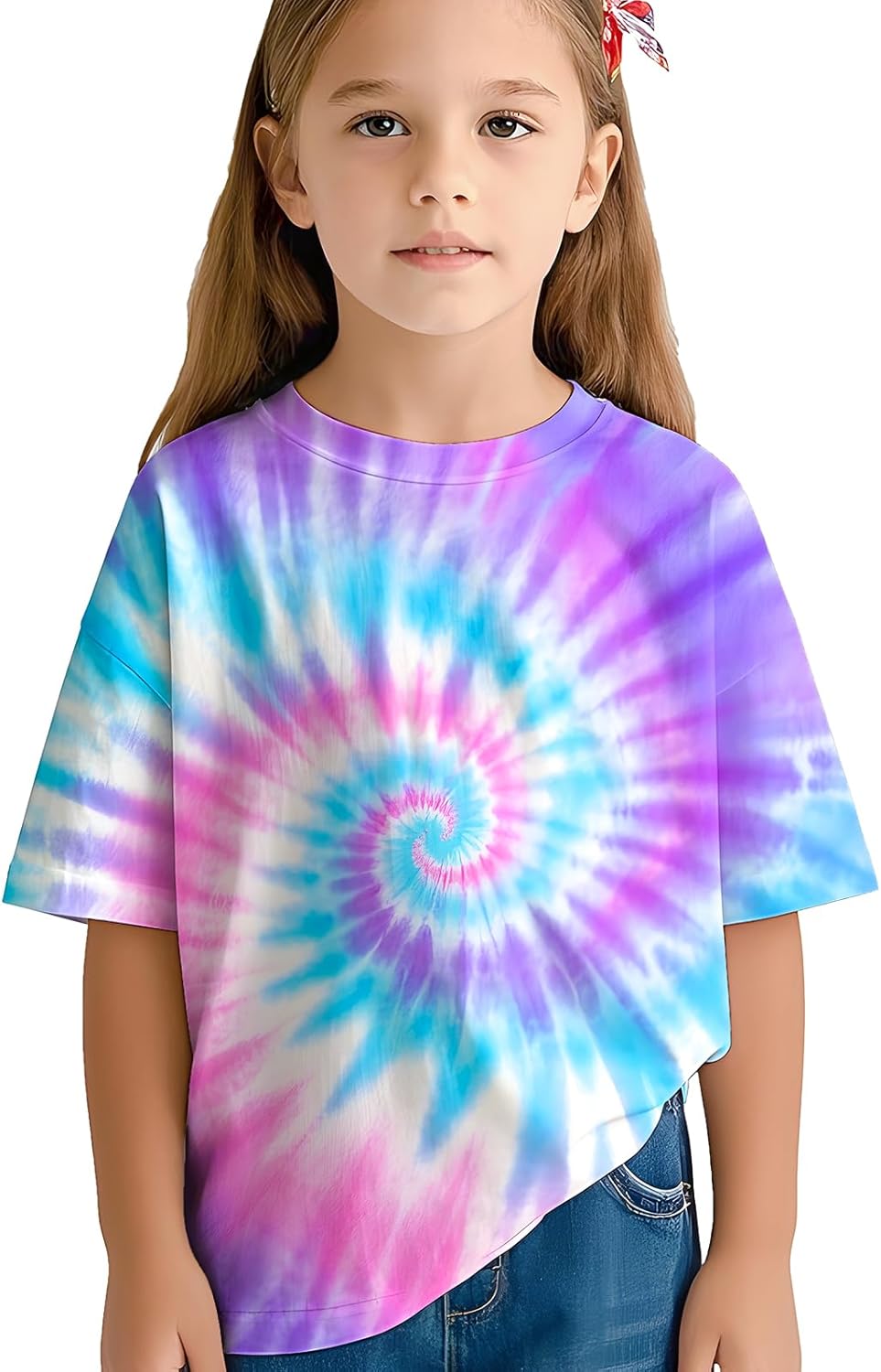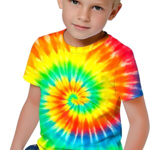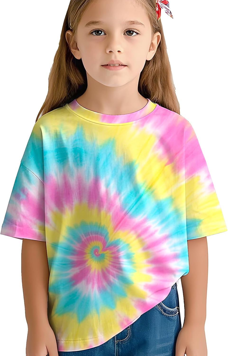 RPWZRCB Kids Tie Dye Shirts for Boys Girls Outfit Clothes Children Hippies Short Sleeve Tees Tie-Dye T Shirt 6-16 Years