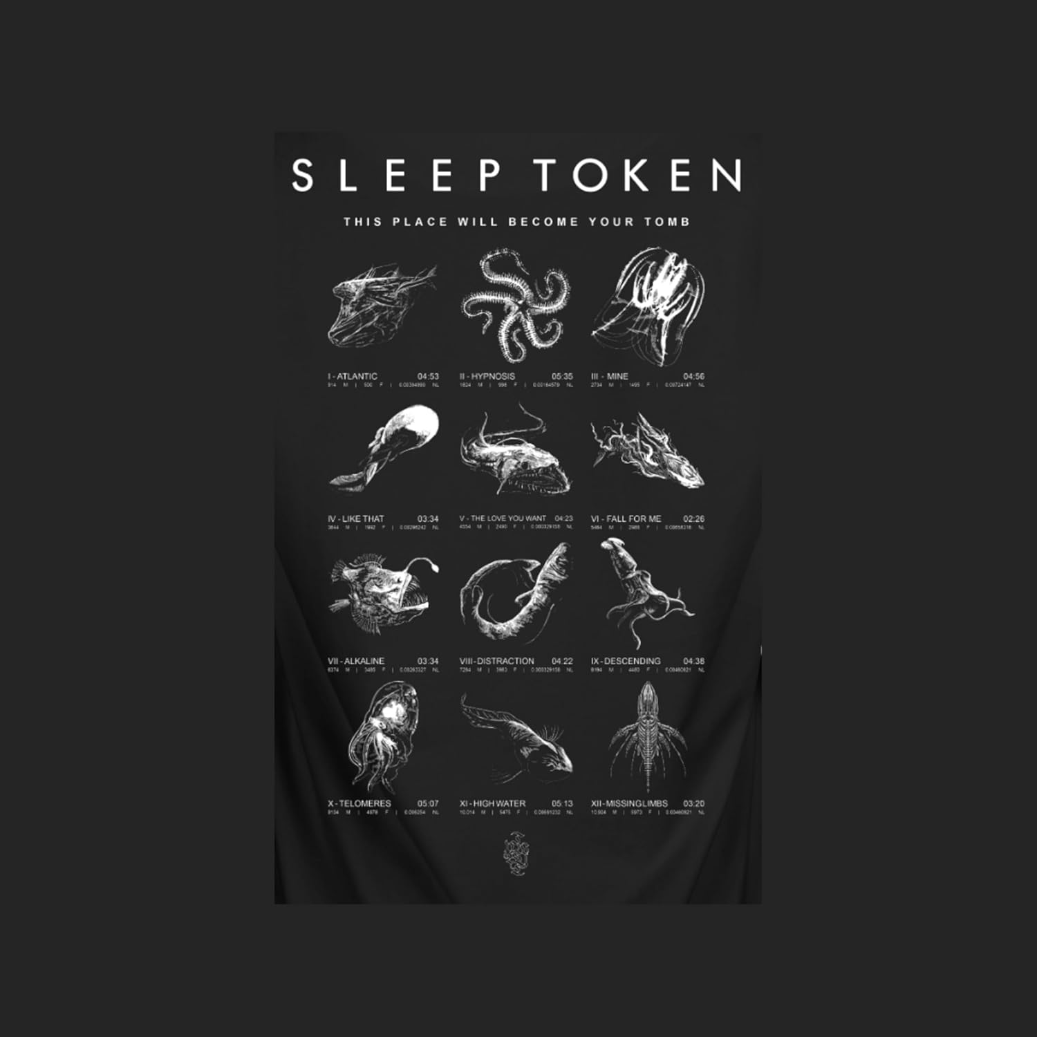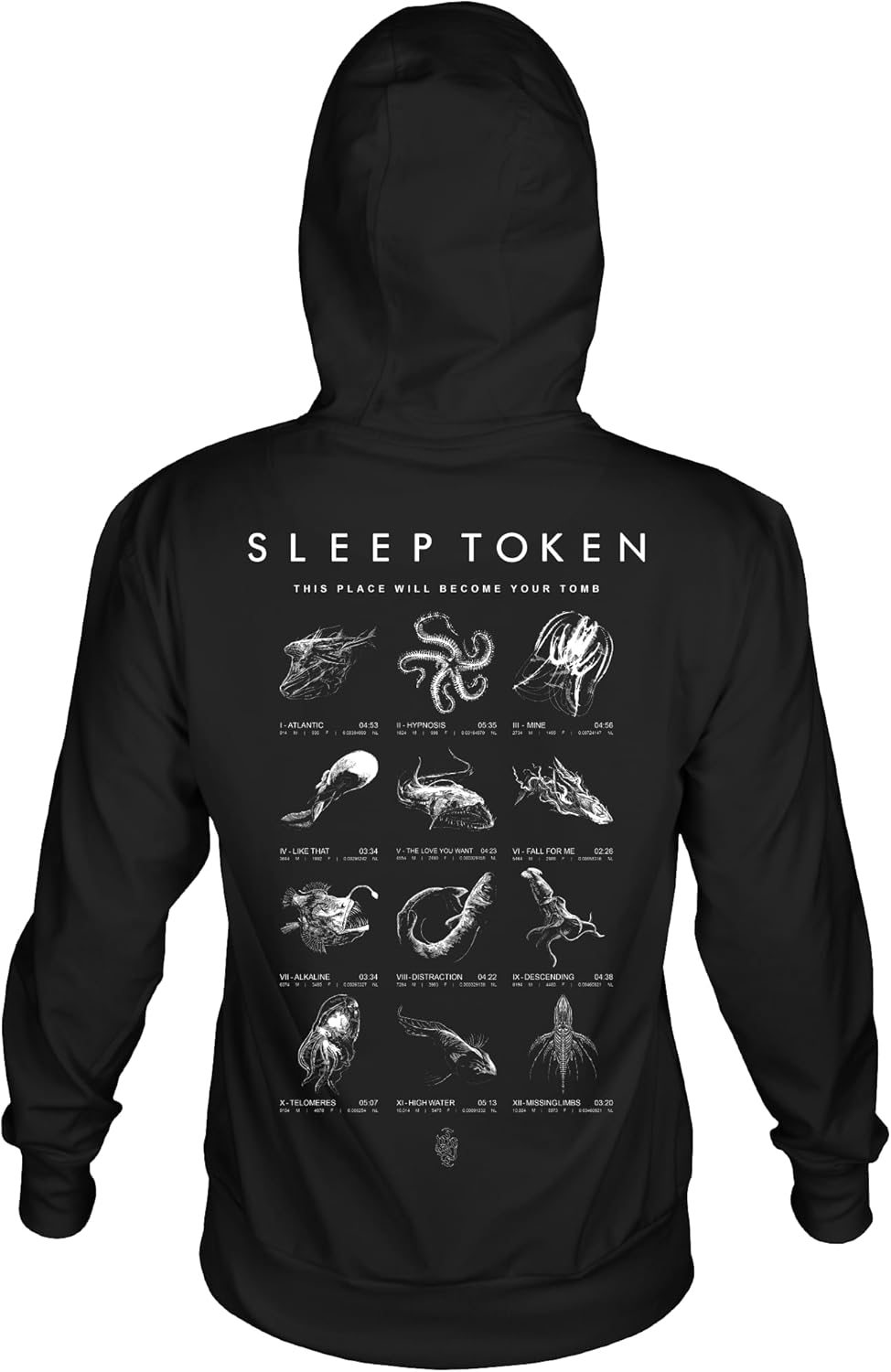 Sleep Token Hoodie Depth Chart Adult Front & Back Print Black Hooded Sweatshirt Metal Rock Band Apparel quantity
