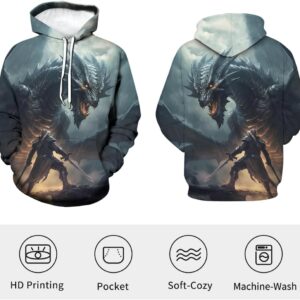 Srcnhim Men’s Animal Shirt Retro Dragon 3D Printing Graphic Hoodie Hoodies Hooded Sweatshirts