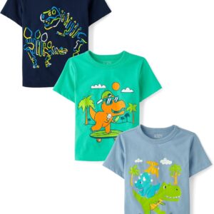 The Children’s Place Baby Boys’ and Toddler Dino Short Sleeve Graphic T-Shirts,multipacks