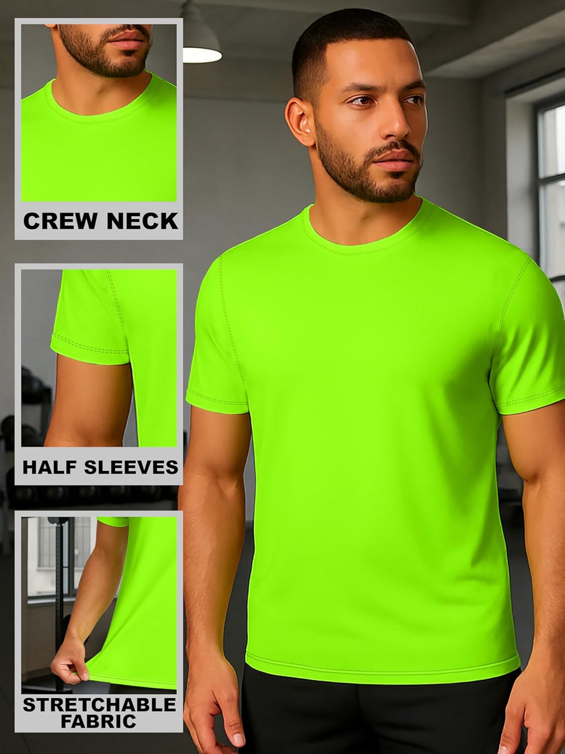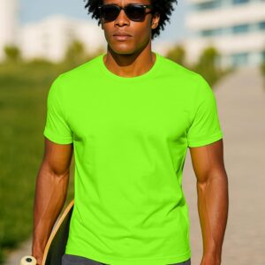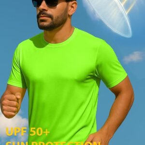 URBAN BUCK Neon High Visibility Lightweight Running Mens Shirt – Workout Swim UPF50+ Basic Short Sleeve Sun T-Shirt for Men