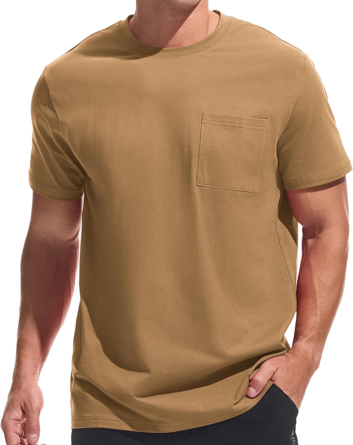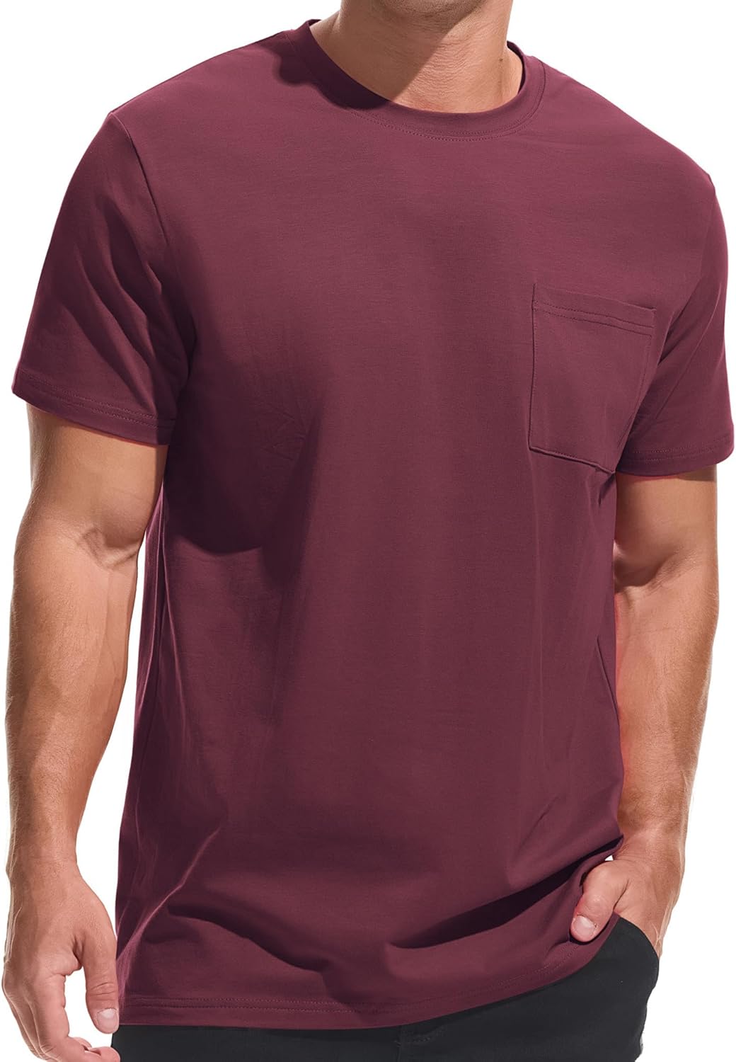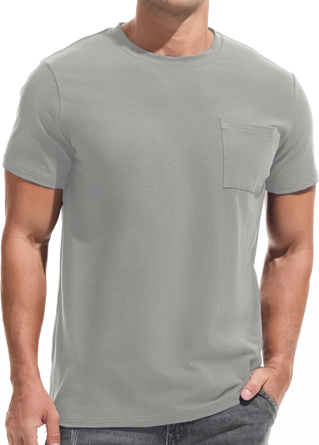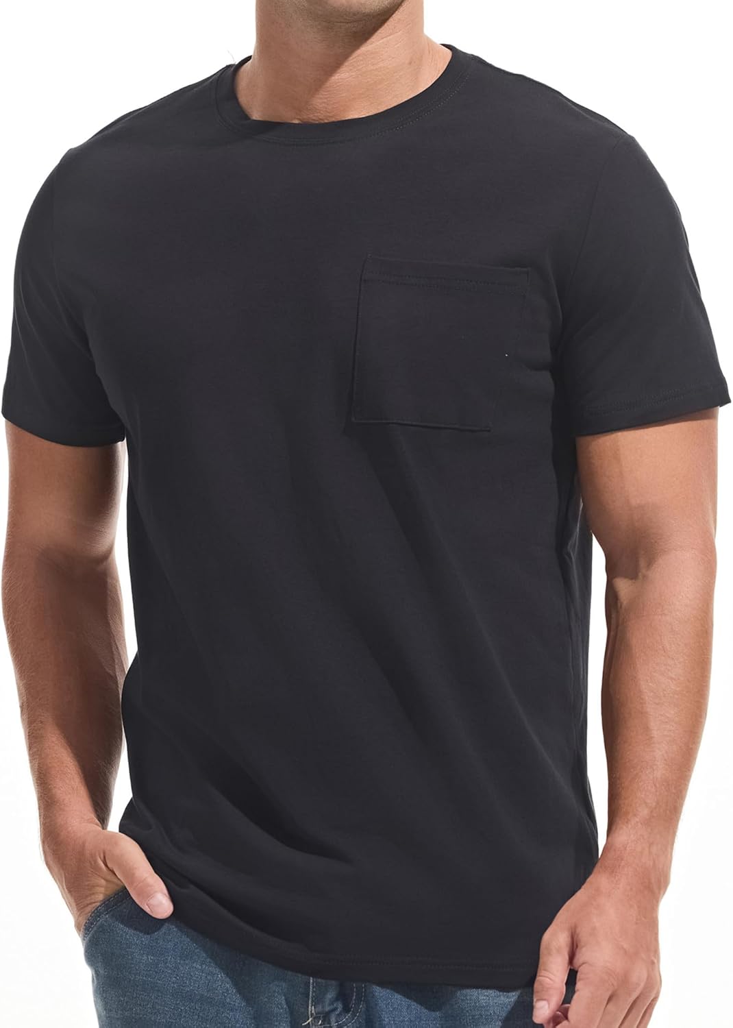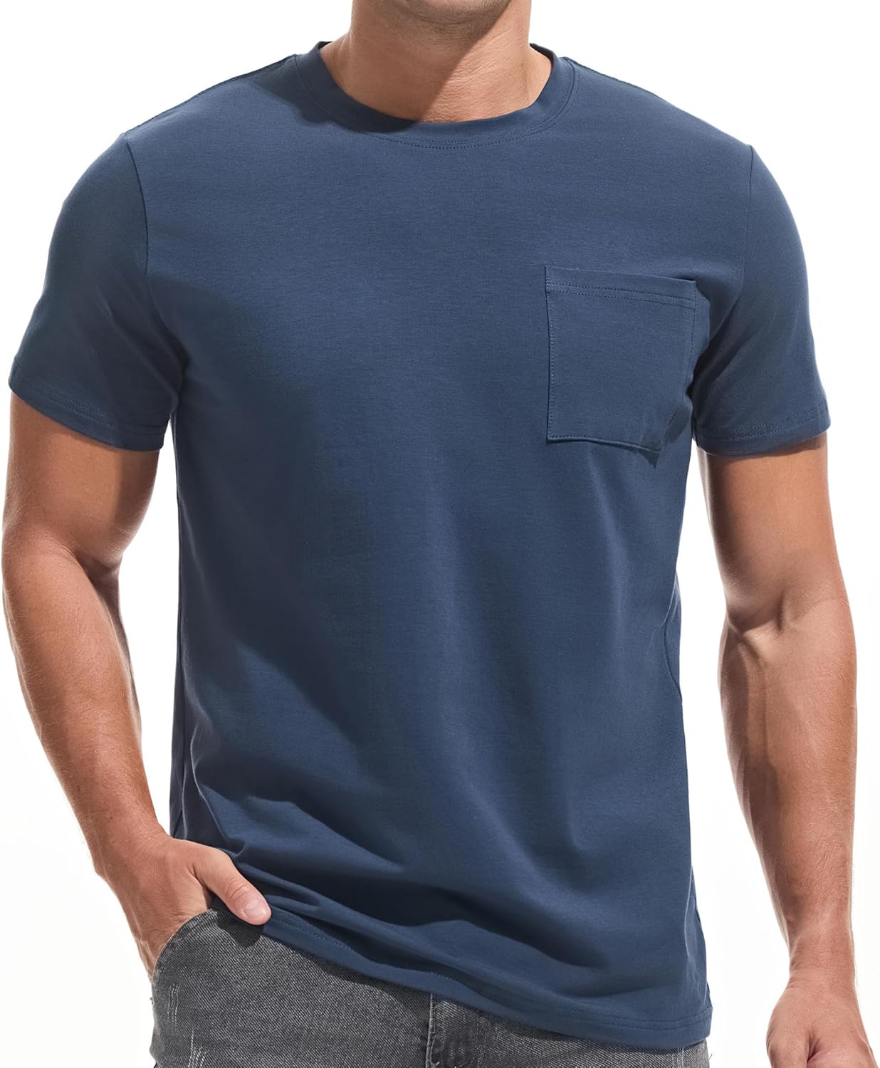 ![]() VEIISAR Men's Pocket T-Shirt – Mens Cotton Elastic Tees Soft Fitted Classic T…